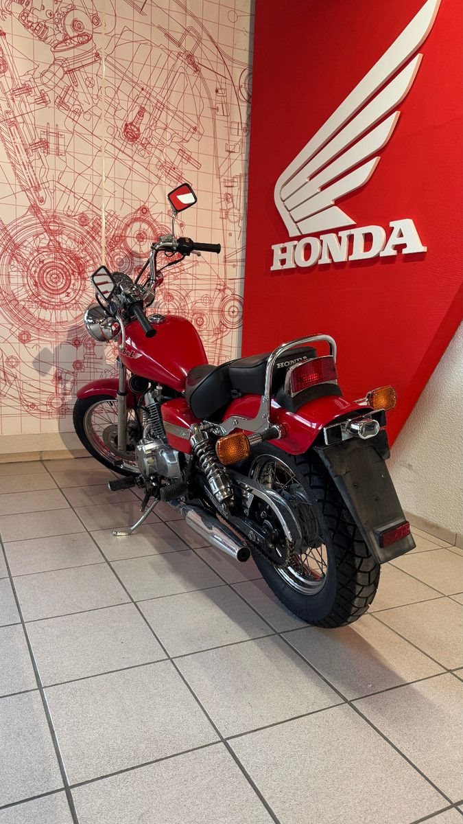 Honda Rebel 125 - Gebrauchtfahrzeug - Baujahr 1995 - TÜV & Inspektion neu Die Honda Rebel 125 (CA125) ist ein leichter, zuverlässiger Cruiser mit klassischem Look und extrem einfacher Bedienung. Ideal für Einsteiger, Stadtfahrer oder alle, die ein gemütliches, sparsames Motorrad mit Kultcharakter suchen. Dieses Modell aus 1995 befindet sich in gepflegtem Zustand und wurde bei uns technisch vollständig durchgecheckt. TÜV (HU) und Inspektion wurden frisch erneuert - sofort fahrbereit! Fahrzeugdetails:* Zustand: Gebrauchtfahrzeug * Baujahr: 1995 * Modell: Honda Rebel 125 (CA125) * Kilometerstand: wird nachgereicht * Motor: 124 cm, 2-Zylinder-Reihenmotor, luftgekühlt * Leistung: ca. 11 PS (8 kW) * Getriebe: 5-Gang-Schaltgetriebe * Farbe: Rot (falls abweichend, kann ich es anpassen) * Abgasnorm: nach damaligem Standard * Sitzhöhe: ca. 685 mm * Gewicht: ca. 140 kg fahrbereit Ausstattung & Highlights:* Klassisches Cruiser-Design im Mini-Chopper-Stil * Sehr niedrige Sitzhöhe - ideal für Einsteiger * Sparsam, zuverlässig und extrem leicht zu fahren * Wartungsfreundlicher Zweizylinder-Motor * Optimal für Stadtverkehr oder gemütliche Landstraßentouren Service & Zustand:* Inspektion NEU * TÜV / HU NEU * Technisch geprüft durch unsere Fachwerkstatt * Sofort fahrbereit * Guter Zustand für das Baujahr Sonstiges:* Inzahlungnahme möglich * Besichtigung und Probefahrt nach Terminvereinbarung