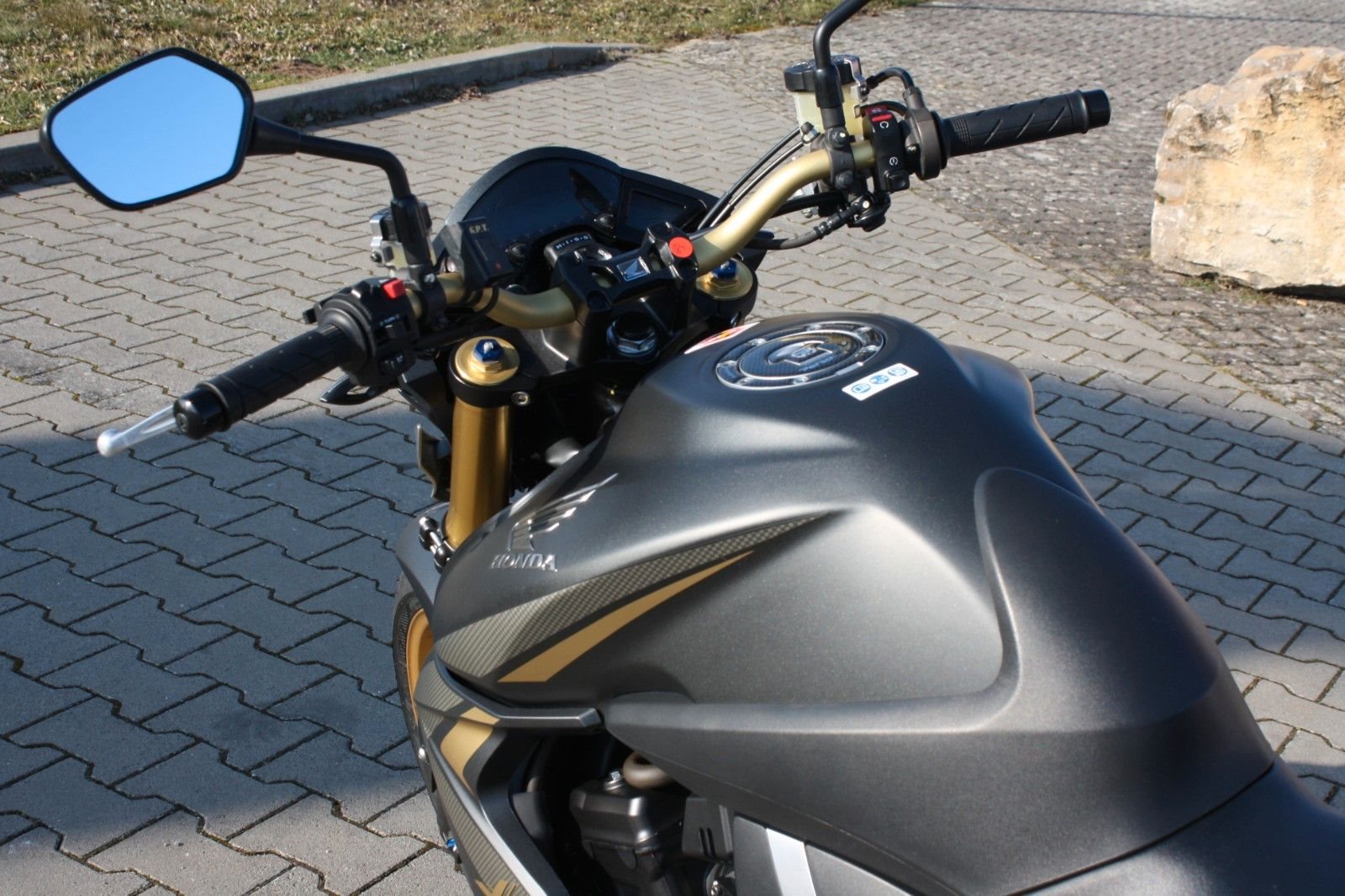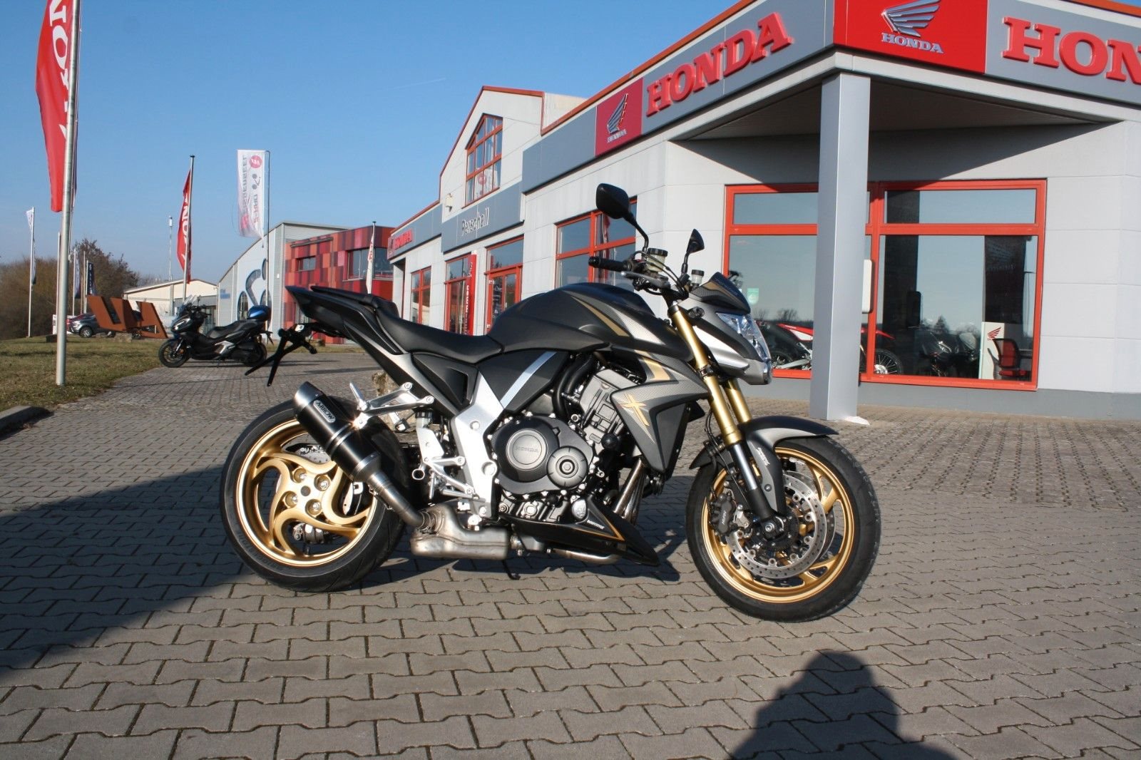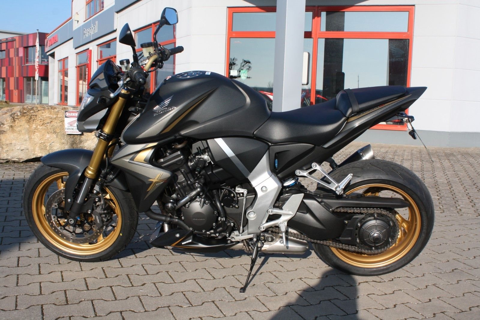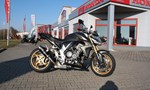 Sportlich-elegant präsentiert sich diese Honda CB 1000R SC60 in der Extreme Edition. Sie stammt aus erster Hand, wurde neu von uns ausgeliefert und seither regelmäßig in unserer Werkstatt gewartet. Die Laufleistung beträgt knapp 17.000 km, und der Jahreskundendienst ist frisch durchgeführt. Das Bike ist sehr umfangreich ausgestattet: Ganganzeige, Sturzpads, Bugspoiler, kurzer Kennzeichenträger, vier LED-Mini-Blinker sowie ein zugelassener Sportauspuff von Arrow. Beide Reifen sind neu. Mit ordentlich Drehmoment bietet die CB 1000R ein sportliches Fahrerlebnis und puren Fahrspaß. Willkommen bei Honda Perschall - Ihrem zuverlässigen Honda-Partner an der bezaubernden Mainschleife seit 1979! Entdecken Sie unsere ständig wechselnde Auswahl an gepflegten und werkstattgeprüften Gebrauchtmotorrädern. Bei uns ist eine Finanzierung möglich, und wir erstellen Ihnen gerne ein individuelles Angebot. Zudem nehmen wir gerne Ihr (japanisches) Gebrauchtmotorrad in Zahlung. Profitieren Sie auch von unserem Motorrad-Barankaufsservice sowie von einem bundesweiten Versand. Besuchen Sie uns online unter www.perschall.de oder folgen Sie uns auf Google, Facebook und Instagram (@motorradperschall), um mehr über uns zu erfahren. Unsere Öffnungszeiten im Sommer (März - September) sind von Montag bis Freitag von 9.00 bis 12.00 Uhr und von 13.00 bis 18.00 Uhr sowie Samstags von 9.00 bis 13.00 Uhr. Donnerstags bleibt unser Geschäft geschlossen. Im Winter (Oktober - Februar) begrüßen wir Sie von Montag bis Freitag von 9.00 bis 12.00 Uhr und von 13.00 bis 17.30 Uhr sowie Samstags von 10.00 bis 13.00 Uhr. Auch hier bleibt unser Geschäft donnerstags geschlossen. Wir freuen uns darauf, Sie persönlich zu beraten!