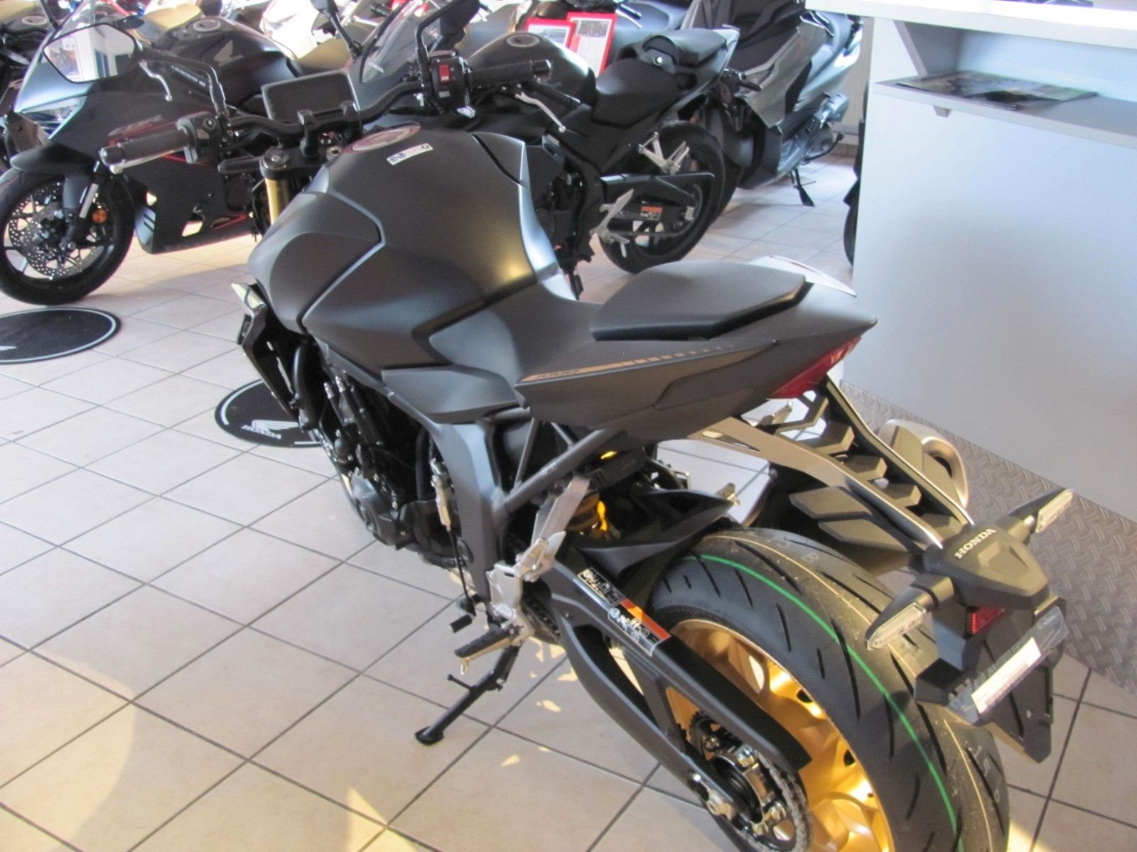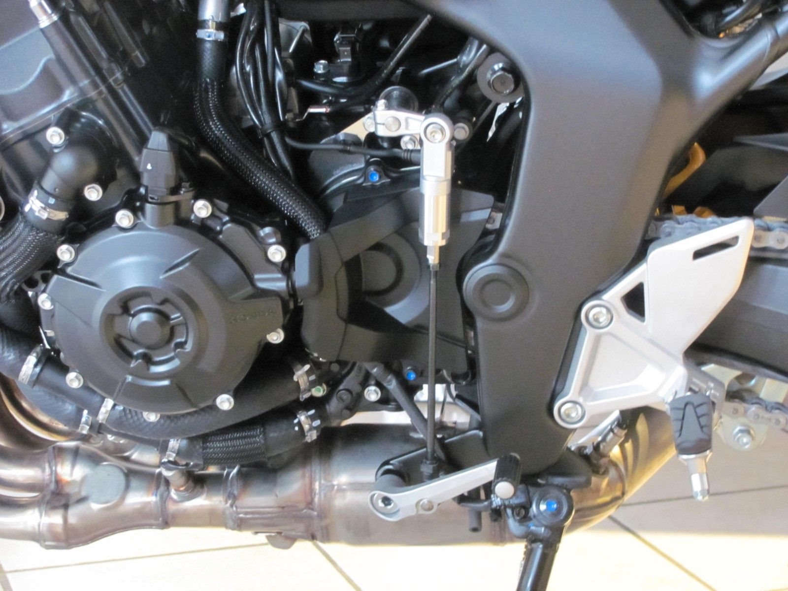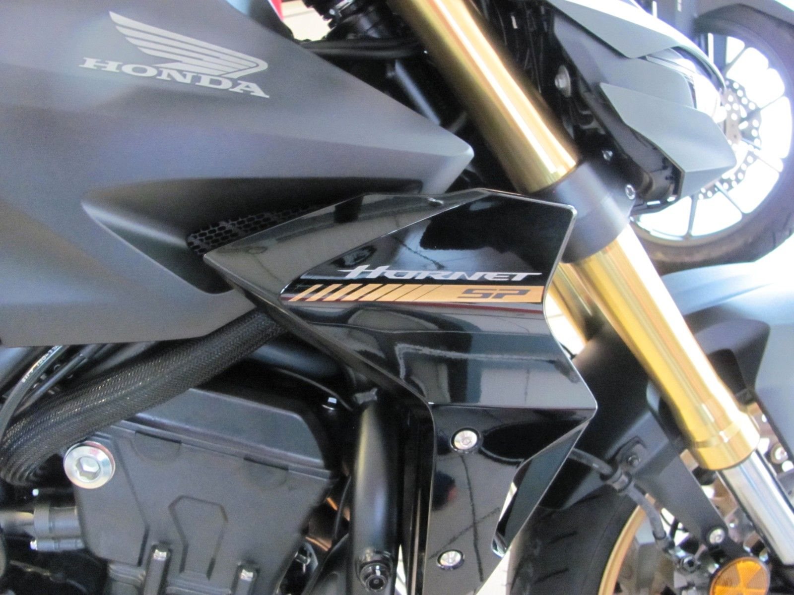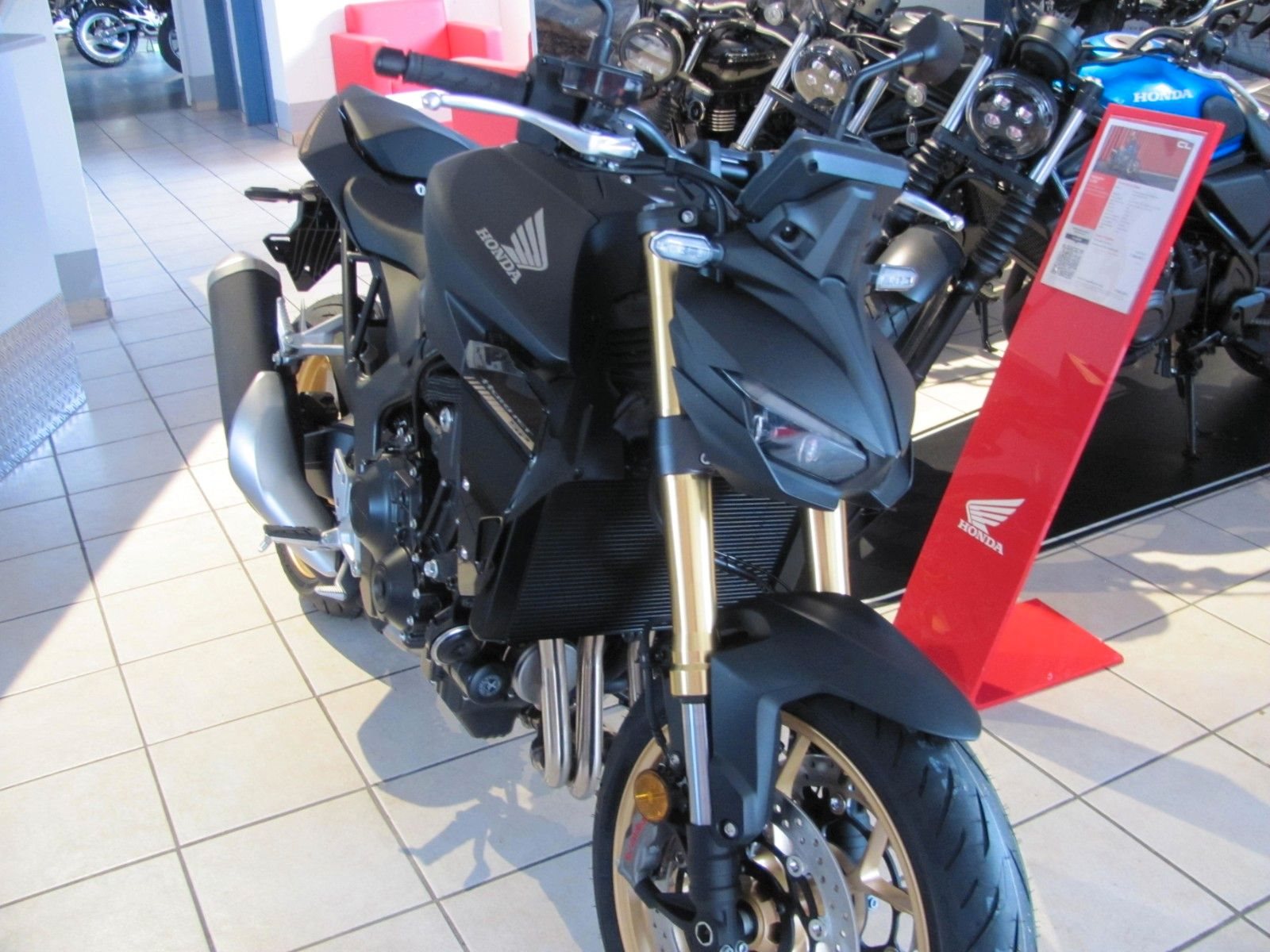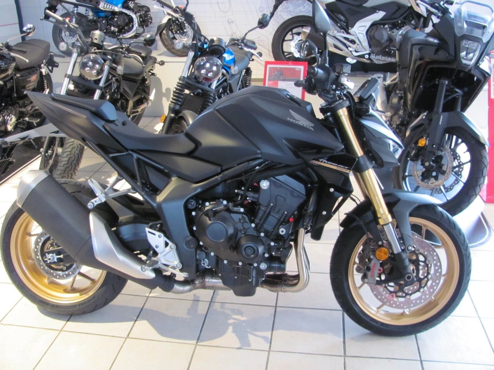 ** Vorführer **Die Hornet-Familie ist jetzt vollständig und unser Topmodell sticht heraus. Die neue CB1000 Hornet mit ihrem Vierzylindermotor ist ein erstklassiges Naked Bike, das den Asphalt zum Glühen bringt. Throttle By Wire sorgt für präzise Kontrolle, während das Fahrwerk mit der einstellbaren SHOWA 41mm SFF-BP Upside-Down-Gabel und dem Pro-Link-Federbein ausgestattet ist. Die unverfälschte, aggressive Streetfighter-Attitüde wird durch einen markanten LED-Doppelscheinwerfer unterstrichen. Das 5-Zoll TFT-Farbdisplay und die Honda RoadSync-Konnektivität sorgen für die nötigen Informationen. Kann es losgehen? Voll auf Leistung Hier ist alles echt. Das ist das Motorrad in seiner rohesten Form, straff definiert. Die kompromisslose Streetfighter-Attitüde der CB1000 Hornet wird durch den markanten, superkompakten LED-Doppelscheinwerfer unterstrichen, der passgenau in der diskreten Frontverkleidung sitzt. Der dezent geschwärzte Rahmen bringt ein starkes Element des geschmeidigen Designs mit sich und unterstreicht die Linienführung ebenso wie der hintere Hilfsrahmen im Spalierstil. Um ihr einen aggressiven Look zu verleihen, sind der Motor, die Räder und die Schwinge ebenfalls in Schwarz gehalten. Und der für die Hornet charakteristische, breitschultrige Kraftstofftank, der sich radikal nach hinten verjüngt, steht für pure Leistung.