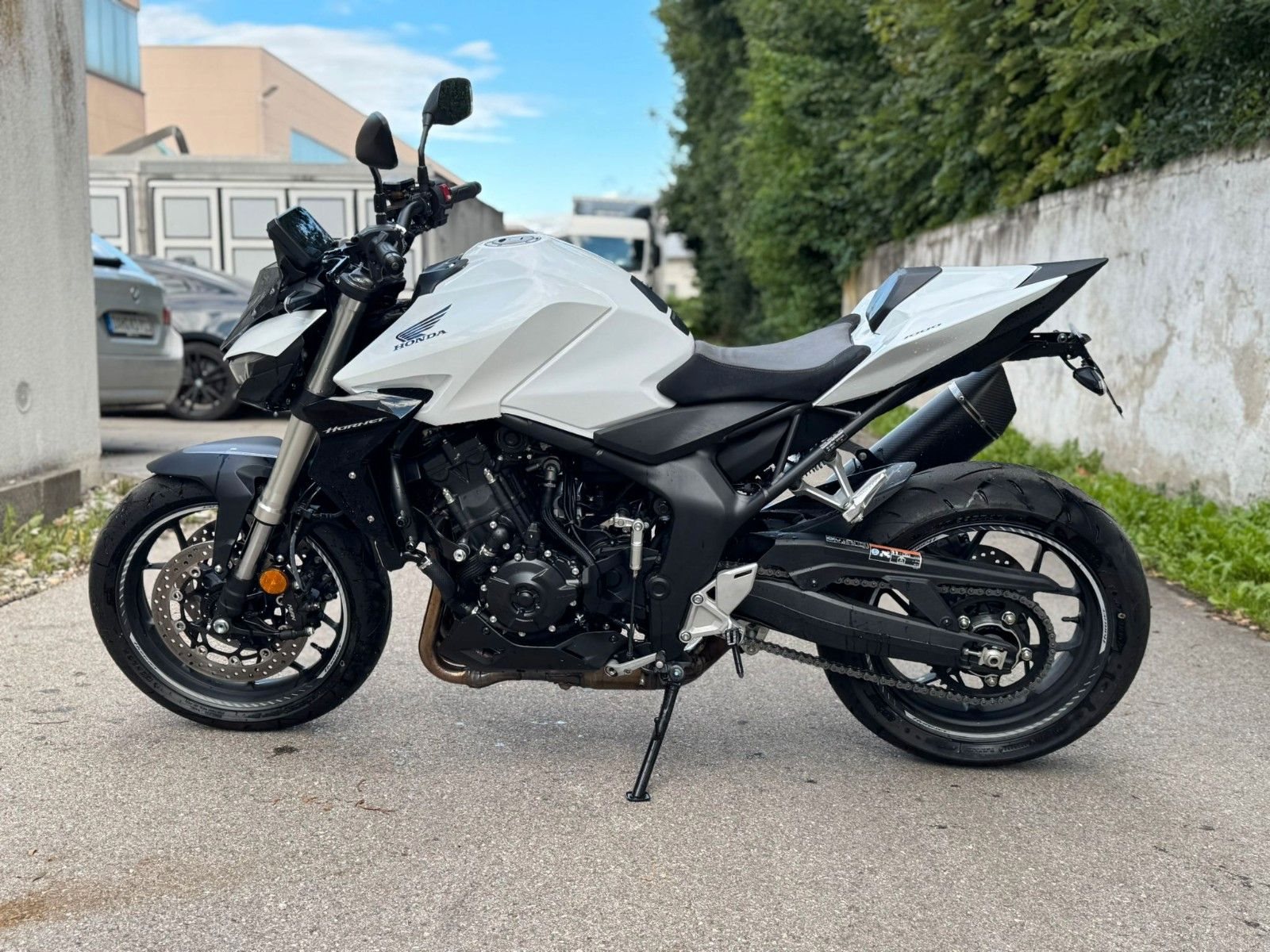 Honda CB1000 Hornet - Die Essenz der Dominanz. Die CB1000 Hornet vereint pure Power, präzise Technik und einzigartigen Stil. Ein Motorrad für Fahrer, die Kontrolle, Charakter und kompromisslose Performance suchen. Dieses Bike wurde mit viel Liebe zum Detail veredelt: . SC-Project Auspuff - satter Sound & weniger Gewicht . Kurzer Kennzeichenträger - sportlich-cleanes Heck . Pro Brake Hebel . Komfort-, Sport- & Style-Paket Fahrzeugdaten: EZ: 03/2025 Kilometerstand: 3.818 km* Hand | unfallfreiFarbe: Pearl Glare Whitesofort verfügbar Highlights: Ein echtes Statement auf der Straße - kraftvoll, markant und technisch auf höchstem Niveau. Erlebe die CB1000 Hornet live bei uns - und spür, was Dominanz wirklich bedeutet. Unser Verkaufsteam erreichen Sie unter 08131 / 12311 oder verkauf@motorrad-box.de. Besuchen Sie uns in der Motorrad Box Dachau - bei einer Tasse Kaffee besprechen wir alle Details. Seit über 30 Jahren Honda Vertragspartner. Ihr Honda-Motorrad-Box-Team!
