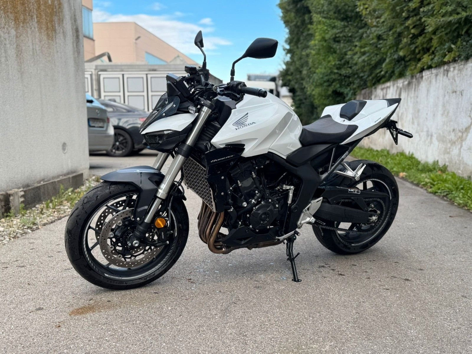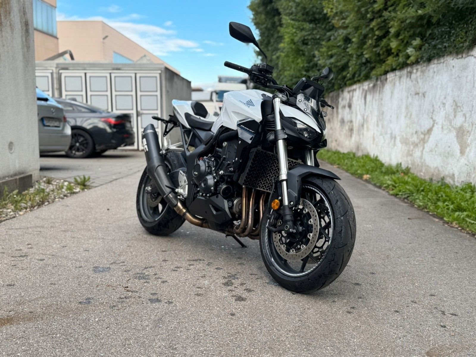Honda CB1000 Hornet - Die Essenz der Dominanz. Die CB1000 Hornet vereint pure Power, präzise Technik und einzigartigen Stil. Ein Motorrad für Fahrer, die Kontrolle, Charakter und kompromisslose Performance suchen. Dieses Bike wurde mit viel Liebe zum Detail veredelt: . SC-Project Auspuff - satter Sound & weniger Gewicht . Kurzer Kennzeichenträger - sportlich-cleanes Heck . Pro Brake Hebel . Komfort-, Sport- & Style-Paket Fahrzeugdaten: EZ: 03/2025 Kilometerstand: 3.818 km* Hand | unfallfreiFarbe: Pearl Glare Whitesofort verfügbar Highlights: Ein echtes Statement auf der Straße - kraftvoll, markant und technisch auf höchstem Niveau. Erlebe die CB1000 Hornet live bei uns - und spür, was Dominanz wirklich bedeutet. Unser Verkaufsteam erreichen Sie unter 08131 / 12311 oder verkauf@motorrad-box.de. Besuchen Sie uns in der Motorrad Box Dachau - bei einer Tasse Kaffee besprechen wir alle Details. Seit über 30 Jahren Honda Vertragspartner. Ihr Honda-Motorrad-Box-Team!