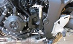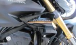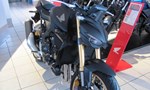 ** Vorführer **Die Hornet-Familie ist jetzt vollständig und unser Topmodell sticht heraus. Die neue CB1000 Hornet mit ihrem Vierzylindermotor ist ein erstklassiges Naked Bike, das den Asphalt zum Glühen bringt. Throttle By Wire sorgt für präzise Kontrolle, während das Fahrwerk mit der einstellbaren SHOWA 41mm SFF-BP Upside-Down-Gabel und dem Pro-Link-Federbein ausgestattet ist. Die unverfälschte, aggressive Streetfighter-Attitüde wird durch einen markanten LED-Doppelscheinwerfer unterstrichen. Das 5-Zoll TFT-Farbdisplay und die Honda RoadSync-Konnektivität sorgen für die nötigen Informationen. Kann es losgehen? Voll auf Leistung Hier ist alles echt. Das ist das Motorrad in seiner rohesten Form, straff definiert. Die kompromisslose Streetfighter-Attitüde der CB1000 Hornet wird durch den markanten, superkompakten LED-Doppelscheinwerfer unterstrichen, der passgenau in der diskreten Frontverkleidung sitzt. Der dezent geschwärzte Rahmen bringt ein starkes Element des geschmeidigen Designs mit sich und unterstreicht die Linienführung ebenso wie der hintere Hilfsrahmen im Spalierstil. Um ihr einen aggressiven Look zu verleihen, sind der Motor, die Räder und die Schwinge ebenfalls in Schwarz gehalten. Und der für die Hornet charakteristische, breitschultrige Kraftstofftank, der sich radikal nach hinten verjüngt, steht für pure Leistung.