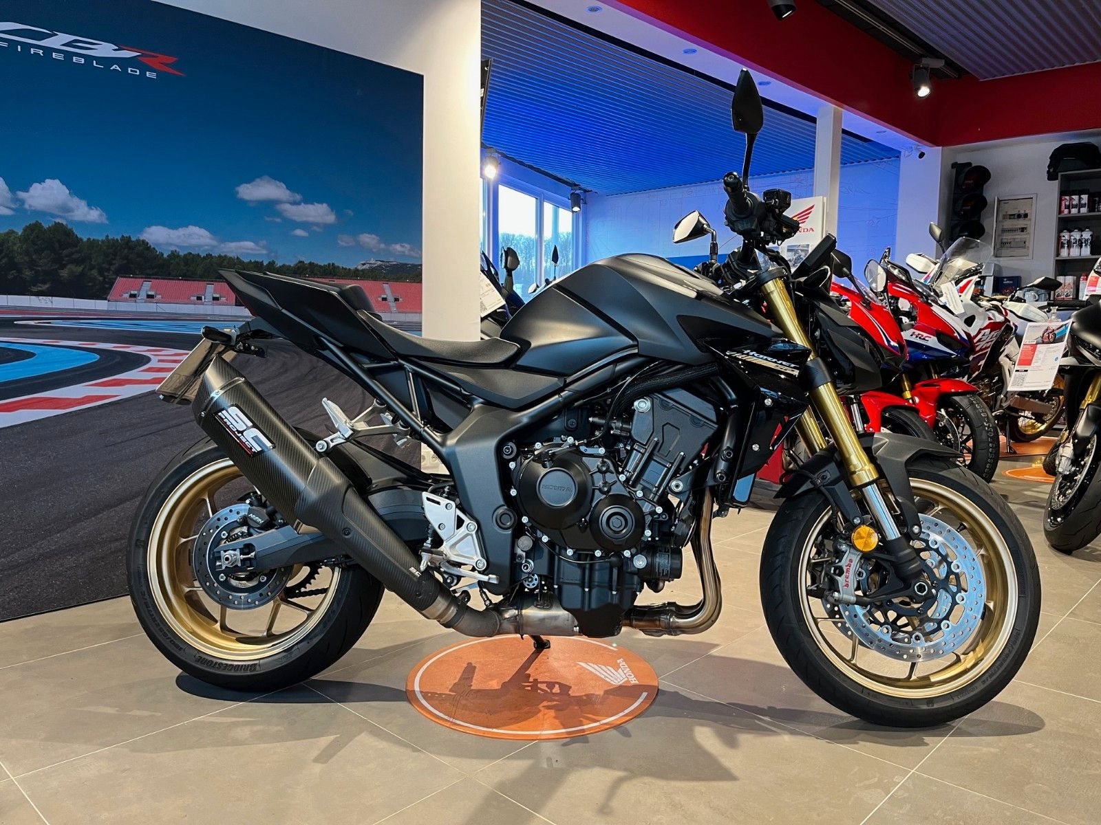 **Vorführfahrzeug vom Honda Vertragshändler** Die Vorführmaschine befindet sich in einem Neuwertigem Zustand. Wir legen großen Wert auf einen guten Umgang unserer Fahrzeuge, so das wir Vorführ- oder Mietfahrzeuge mit bestem Gewissen euch anbieten können. **Folgendes Zubehör ist am Fahrzeug verbaut:** * **SC-Project Endschalldämpfer** * **Raximo Kennzeichenhalter mit goldener Kennzeichenleuchte** * **Raximo BRems-/Kupplungshebel schwarz / gold** . Volle Herstellergarantie ab Erstzulassung . Garantieverlängerung bis zu 36 Monaten möglich . kein EU-Import . Flexible Finanzierungs- und Leasingangebot . Individuelle Ausstattungsmöglichkeiten und Umbauten . Sprecht uns gerne an 02324 - 202873 ****----**Wir sind ausgezeichnet! Beste Kundenzufriedenheit in 2022 & 2023! **Ausgezeichnet von Honda Deutschland ---- . Wir sind seit über 20 Jahren Vertragshändler für Suzuki-Automobile und Honda-Motorräder. . Alle Gebrauchtfahrzeuge sind durch unsere Meister-Werkstatt geprüft. . Für alle Gebrauchtfahrzeuge 12 Monate Gewährleistung. . Für Neufahrzeuge Garantie gem. Herstellerangaben. . Finanzierung und Inzahlungnahme für alle Fahrzeuge. . Zwischenverkauf / Schreibfehler sowie Irrtum vorbehalten. . Fahrzeuganlieferung innerhalb Deutschland schon ab 129 €