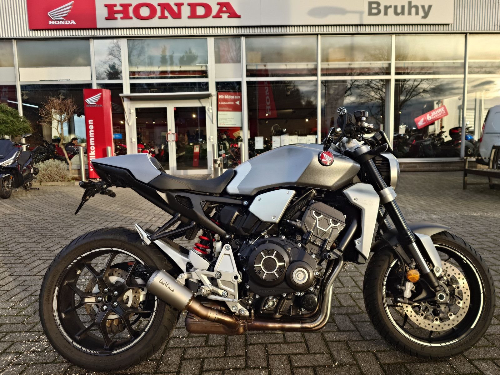 ** Sie können uns auch gerne unter 0163-2162926 über WhatsApp kontaktieren! bei Kontaktaufnahme per E-Mail bitte unbedingt Telefonnummer angeben!!**----* 2. Hand * neue HU zur Auslieferung * 12.000 km Inspektion zur Auslieferung * Traktionskontrolle * 4 Fahrmodi: Sport, Standard, Rain und einen frei konfigurierbaren User Modi * komplette LED-Lichttechnik * Raximo Kupplungs-/Bremshebel voll einstellbar * LeoVince Auspuff - original dabei * Lenkerendenspiegel **Plus Edition original Honda Zubehör:** * Quickshifter (hoch und runter) * Heizgriffe * Soziusabdeckung (Soziussitz mit dabei) * Alu-Fußrasten vorne * Alu-Soziusfußrasten * Hinterradabdeckung mit Alu-Verkleidung (Styling Kit) * Styling Kit - diverse Alu-Verkleidungsteile * Kühlerschutzgitter "CB1000R" * Windschild ----** Inzahlungnahme/Ankauf: Wir nehmen gerne Ihr gebrauchtes Fahrzeug in Zahlung. Der Preis ist ein Barzahlungspreis Finanzierung mit oder ohne Anzahlung möglich. Gerne unterbreiten wir Ihnen ein persönliches Angebot. Grundsätzlich keine Preisverhandlung ohne Besichtigung!!! Fahrzeuganlieferung: Wir organisieren gerne eine bundesweite Anlieferung per Spedition unsere Öffnungszeiten Mo.-Do. 9:00 - 18:00 Uhr; Fr. 09:00-17:00 Sa. 10:00 -13:00 Uhr Änderungen, Irrtümer und Zwischenverkauf vorbehalten Bitte vorher anrufen da die Fahrzeuge nicht immer vor Ort sind!!! Gewährleistung und Garantie unsere Fahrzeuge sind alle Werkstattgeprüft und haben selbstverständliche 12 Monate gesetzliche Gewährleistung. Wir empfehlen Ihnen den Abschluss einer Garantieversicherung ( bis Fahrzeugalter 10 Jahre möglich) Den Umfang und die Kosten teilen wir Ihnen gerne auf Anfrage mit. Sie sind jeweils 12 oder 24 Monate ohne Kilometerbegrenzung vor den finanziellen Folgen unerwarteter Reparaturen geschützt. Sie sind europaweit abgesichert. Die Garantie ist fahrzeuggebunden und unkompliziert übertragbar. Sie erhalten die Wertbeständigkeit Ihres Motorrads **