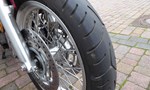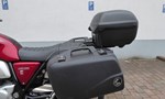 Als Zusatzausstattung verfügt die Maschine über Motorsxchutzbügel, Koffer und Topcase.