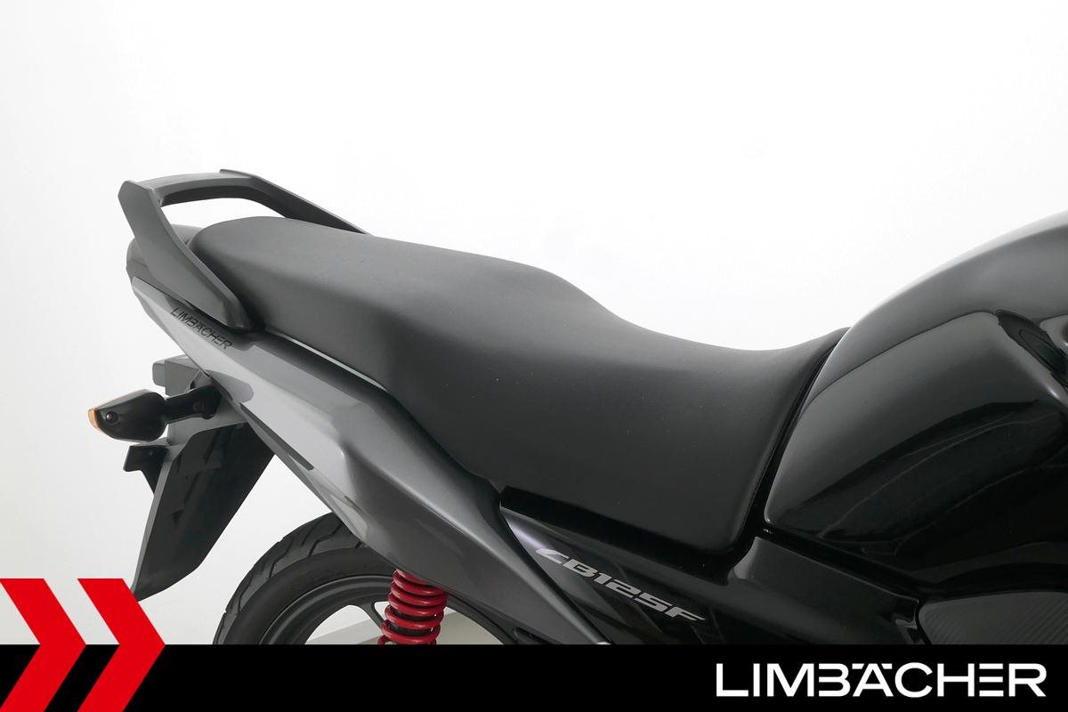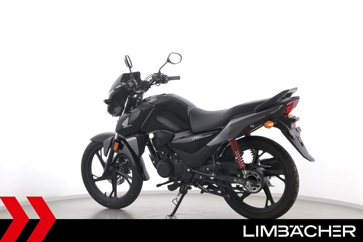** Das Fahrzeug:** Honda Stuttgart bietet hier eine **Honda CB 125 F** mit einer neuen 40-Punkte-Durchsicht. Alle unsere Fahrzeuge werden mit mindestens einem Jahr TÜV übergeben. ---- **Fahrzeugzustand & Beschreibung:** Eine Honda CB 125 F aus erster Hand in Topzustand u.a. mit Originalausstattung und Ganganzeige. ---- **Verschleißteile: ** **Bremsbeläge:** Vorne: 95% Hinten: 95% **Reifen:** Vorne: 95% Hinten: 95% ---- ** Ausstattung & Extras:** * Originalausstattung * Ganganzeige * Hauptständer * ABS ---- **Ansprechpartner:** Manuel Forschner 0711 93964378 homepage-limbaecher-honda@limbaecher.dealerdesk.de **GARANTIERT SORGLOS CRUISEN:** **Jetzt neu:** unsere Lebenslange Garantie kann jetzt für Fahrzeuge **schon ab Baujahr 2012 und bis 25.000 km** abgeschlossen werden! Sprich für eine umfassende Beratung einfach unser Verkaufsteam an. **DANKE!** LIMBÄCHER holt den Titel als **Motorradhändler des Jahrzehnts** - Danke an all unsere Kunden für das Vertrauen! **Limbächer und Limbächer - Deutschlands größte Motorradwelt!** Ihr kompetenter Partner am Stuttgarter Flughafen seit 1992. Vertragshändler für Aprilia, Ducati, GasGas, Honda, Husqvarna, Kawasaki, Moto Guzzi, MV Agusta, Piaggio, Stark, Suzuki, Vespa, Yamaha über **2000 Motorräder in der Ausstellung auf über 20 000 m** **Weitere Standorte:** **- Reutlingen:** Vertragshändler für Aprilia, Honda, Kawasaki, KTM, Moto Guzzi, MV Agusta, Piaggio, Suzuki, Vespa, Yamaha **- Rottweil:** Vertragshändler für Aprilia, Honda, Kawasaki, Moto Guzzi, Piaggio, Triumph, Vespa **- Schongau:** Vertragshändler für Honda, Kawasaki, Stark, Triumph, Yamaha * Sonderpreis!! Gilt nur auf Lager-/Ausstellungsfahrzeuge solange Vorrat reicht * Bike to go - kaufen und mit dem Motorrad gleich nach Hause fahren * Garantieverlängerung auf 4 Jahre oder lebenslange Garantie möglich * Lieferung frei Haus bundesweit ab 99.? Euro * Ausstellung und Bistro täglich (auch Sonntags) bis 18.00 Uhr geöffnet * Finanzierung mit und ohne Anzahlung möglich. * Barankauf aller Marken auch Exoten ? sofortige und unkomplizierte Abwicklung * Rückkaufgarantie für alle bei uns gekauften Motorräder * Meisterwerkstatt: 8 KFZ-Meister und 12 Mechaniker stehen Ihnen mit Rat und Tat mit modernsten Diagnosegeräten zur Seite * Große Auswahl an Motorradbekleidung auf über 400 m * Irrtümer und Zwischenverkauf vorbehalten