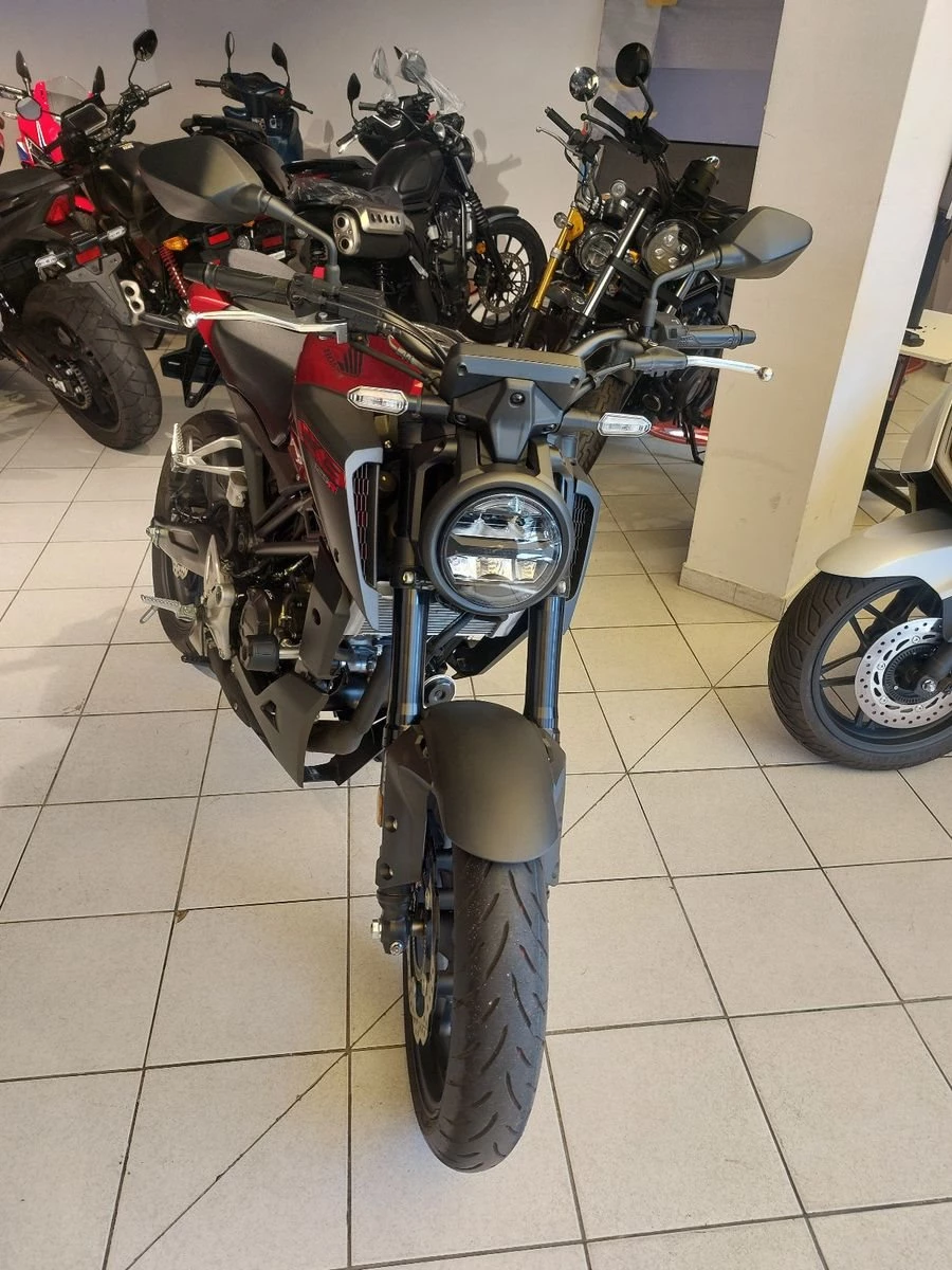 Honda CB125R, Gebrauchtfahrzeug, unfallfrei, geringe Laufleistung, GSG Moto Sturzpads, der DOHC-Einzylindermotor mit 4 Ventilen liefert volle 11KW (15PS), das Neo Sports Café Design begeistert Jung und Alt, Das markante Design mit dem Stahlrohrrahmen ist ein echtes Statement. Ein hochmodernes 5 Zoll TFT-Farb Display und LED-Komplettbeleuchtung sind Premium-Merkmale. Die präzise Abstimmung der neuen Showa SFF-Big Piston Upside Down-Gabel begeistert. Die CB125R setzt voll auf Minimalismus und bringt von Fahrt zu Fahrt mehr Fahrspaß. Dank der kompakten Größe ist das Bike leicht zu handhaben und die von den größeren Modellen übernommenen Merkmale sorgen für einen perfekten Einstieg in die Welt richtiger Motorräder. Gewicht vollgetankt 130 kg, 150/60R17 Hinterreifen, 6-Gang Getribe, Tankinhalt 10,1 Liter, CO2 g/km kombiniert (g/km) 50 g/km Benzinverbrauch (Liter pro 100 km (Honda Messwerte gem. WMTC)) 2,2 l/100km, Abgasnorm Euro 5+, Kfz-Steuer frei. Unsere Neufahrzeugangebote finden Sie auf unserer Internetseite www.zweiradgebhardt.de