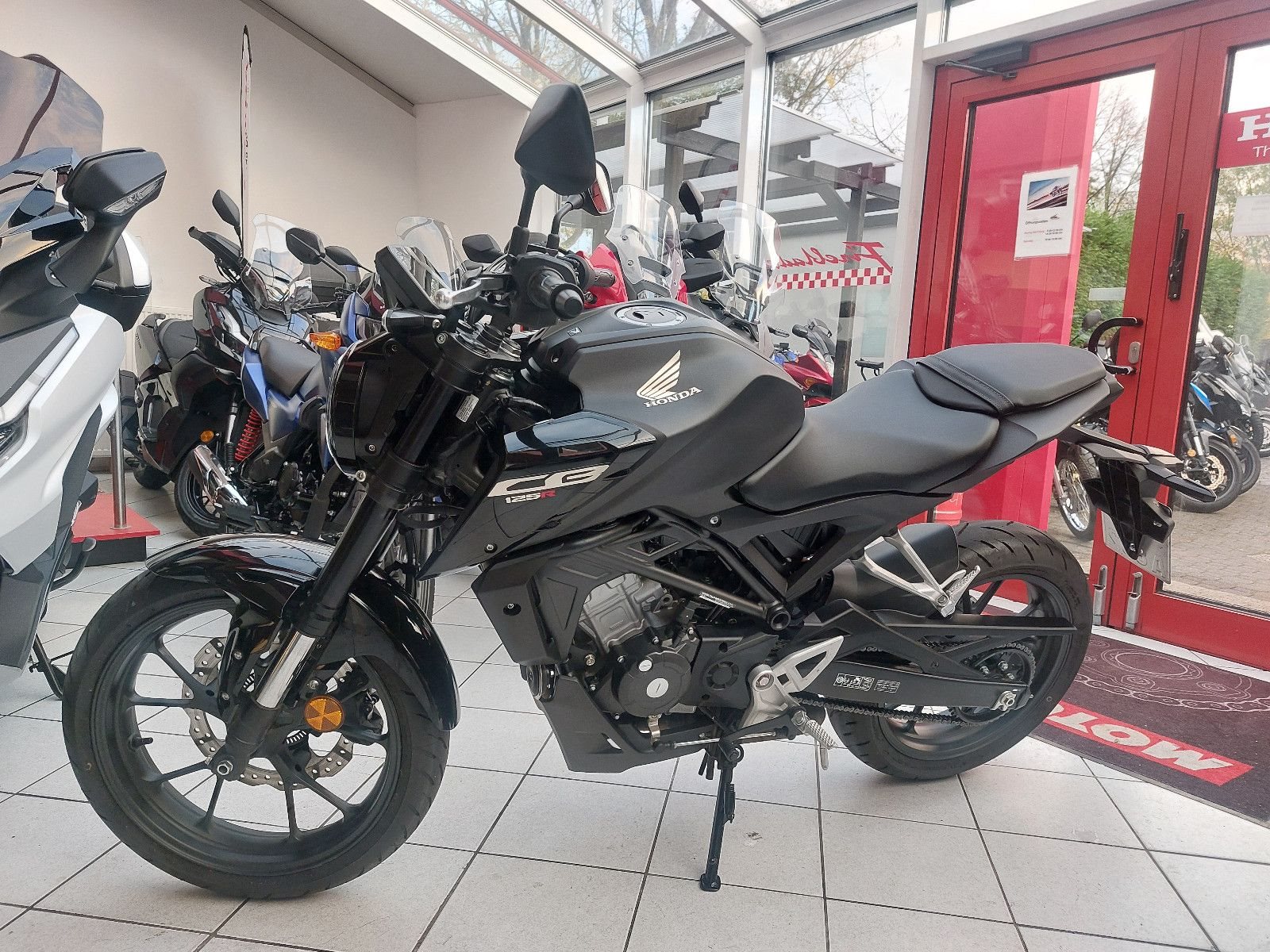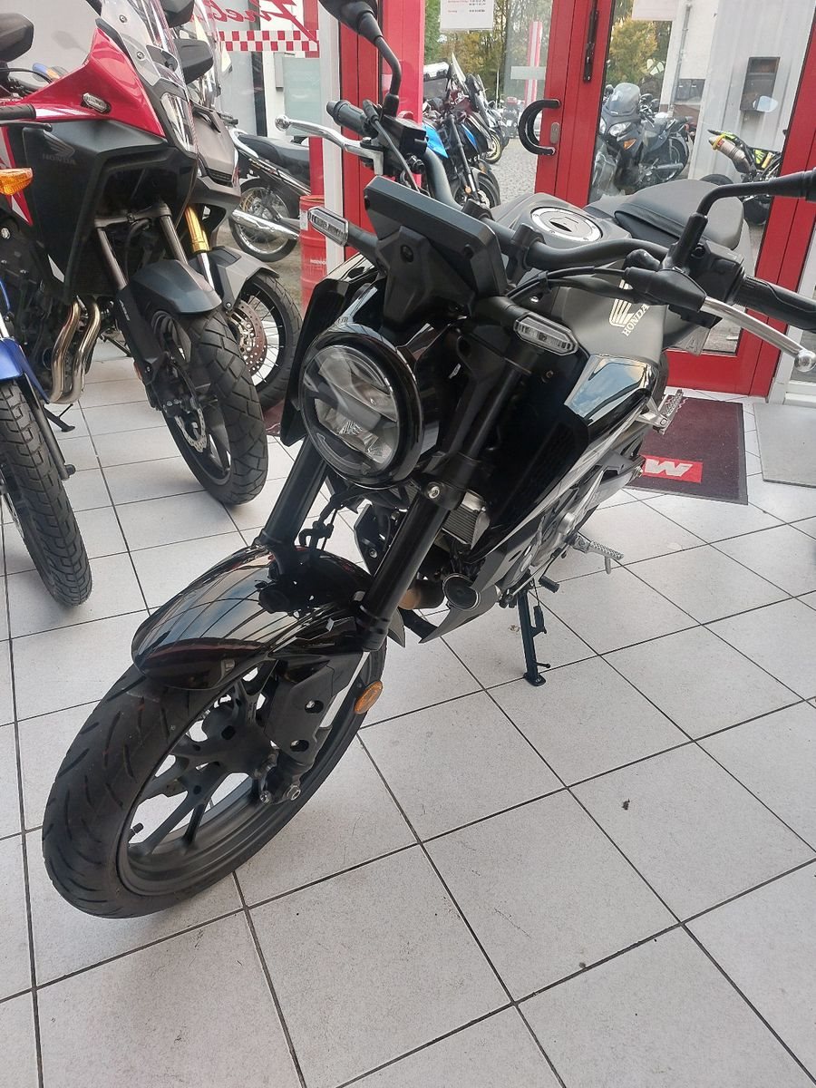 Honda CB125R, Gebrauchtfahrzeug, unfallfrei, geringe Laufleistung, 1000 Km - Inspektion inklusive, der DOHC-Einzylindermotor mit 4 Ventilen liefert volle 11KW (15PS), das Neo Sports Café Design begeistert Jung und Alt, Das markante Design mit dem Stahlrohrrahmen ist ein echtes Statement. Ein hochmodernes 5 Zoll TFT-Farb Display und LED-Komplettbeleuchtung sind Premium-Merkmale. Die präzise Abstimmung der neuen Showa SFF-Big Piston Upside Down-Gabel begeistert. Die CB125R setzt voll auf Minimalismus und bringt von Fahrt zu Fahrt mehr Fahrspaß. Dank der kompakten Größe ist das Bike leicht zu handhaben und die von den größeren Modellen übernommenen Merkmale sorgen für einen perfekten Einstieg in die Welt richtiger Motorräder. Gewicht vollgetankt 130 kg, 150/60R17 Hinterreifen, 6-Gang Getribe, Tankinhalt 10,1 Liter, CO2 g/km kombiniert (g/km) 50 g/km Benzinverbrauch (Liter pro 100 km (Honda Messwerte gem. WMTC)) 2,2 l/100km, Abgasnorm Euro 5+, Kfz-Steuer frei.