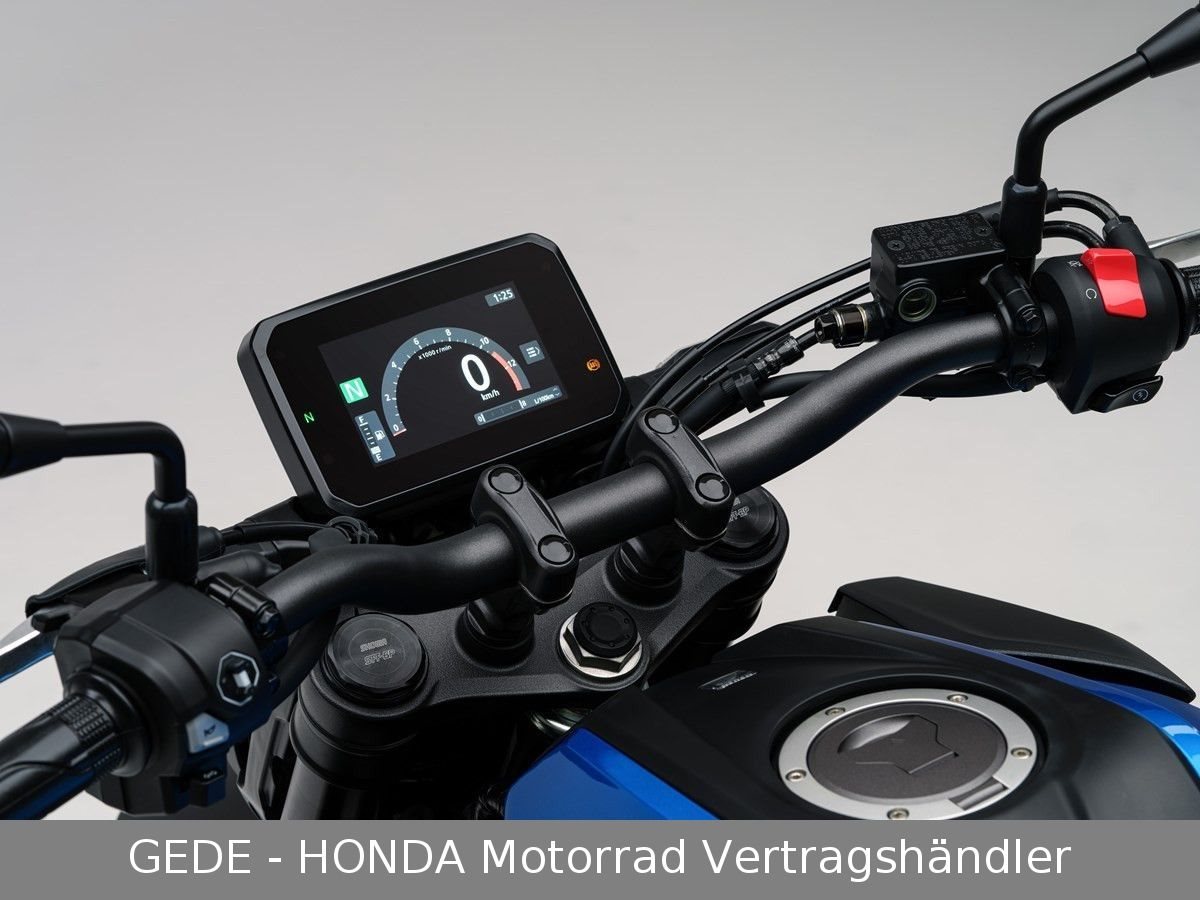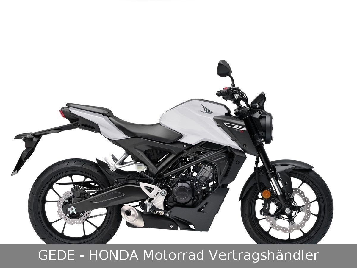 **Verfügbarkeit (To-GO! Kaufen, bezahlen, mitnehmen!) 1x Vorführfahrzeug **Honda CB 125 R in **Pearl Cool White **(NHA16) **inkl.** erledigter Einfahrinspektion, Erstzulassung vom 07.03.2025 und Garantie bis 06.03.2027 - für nur** 4.590,00 € UVP** des Herstellers (**NEU** inkl. Überführungskosten): **5.629,- €**----**Honda CB 125 R** Als Teil der Neo Sports Café-Produktreihe setzt die kleine Schwester der CB650R ein klares Zeichen. Die aktualisierte CB125R zeichnet sich durch ein kühnes Design mit modernen Merkmalen aus. Der Stahlrohrrahmen und der runde Scheinwerfer mit der markanten Einfassung vervollständigen ein unverwechselbares Profil. Gemeinsam mit der LED-Beleuchtung und dem 5-Zoll TFT-Farbdisplay verleiht dies der CB125R eine gewisse Raffinesse. Was aber wirklich auffällt, ist die geballte Leistung des 125er DOHC-Motors. Die Präzision der Showa SFF-BP USD-Federgabeln sorgt für ein sanfteres Fahrverhalten und ein angenehmeres Fahrgefühl, selbst auf holprigen Straßen. ----** Ausstattungsmerkmale ** ** MOTOR ** Stärkerer, flüssigkeitsgekühlter DOHC-Einzylindermotor mit 4 Ventilen: Für pures Fahrvergnügen sorgen 11 kW Spitzenleistung und ein maximales Drehmoment von 11,6 Nm. Die Höchstgeschwindigkeit steigt auf 105 km/h bei dank der PGM-FI-Kraftstoffeinspritzung perfekter Gasannahme im gesamten Drehzahlbereich. ** FAHRWERK ** Showa Separate Function Front Fork Big Piston (SFF-BP) mit 41 mm Durchmesser: Ein Fahrwerk der Spitzenklasse, erstmals bei einer 125er. Ein Dämpfer mit Drucktrennung in einem Gabelholm und ein Federmechanismus im anderen sorgen für eine hohe Dämpfungsleistung bei gleichzeitiger Gewichtsersparnis. Gemeinsam mit dem größeren Kolben ergibt sich ein angenehmeres Fahrgefühl mit besserer Stoßdämpfung und Kontrolle. Die Bereifung umfasst 17-Zoll Räder mit vorne 110/70R17 und hinten 150/60R17 eine sehr stattliche Größe für die 125er Klasse, und somit erstaunliche Sicherheit. ** TECHNOLOGIE ** Helle LED-Beleuchtung: Neo Sports Café steht für auffälliges Design. Vorn zeigt sich das an dem markanten runden Scheinwerfer mit Metallblende und Tagfahrlicht, dank dem du für andere Verkehrsteilnehmer besser sichtbar bist. Auch die Blinker sind mit LEDs ausgestattet. Der 5-Zoll TFT-Farbdisplay bietet dem Fahrer gestochen scharfe Bilder und klare Details. Angezeigt werden Geschwindigkeit, Tankfüllstand/Krafftstoffverbrauch und der eingelegte Gang. Die Honda Road Sync App kommuniziert mit deinem Display und gibt die alle wichtigen Details. Mit dem 10,1 Liter Tank ist eine Reichweite von bis zu 455 km machbar. ** BREMSEN ** Intelligente Bremsen: Die Vorderradbremse besteht aus einer radial montierten Doppelkolbenzange und einer schwimmend gelagerten 296-mm-Scheibe. Die Hinterradbremse besteht aus einem Einkolbenzange und einer 220-mm-Scheibe. Eine Verzögerungs-Messeinheit steuert das 2-Kanal-ABS, das bei allen Straßenverhältnissen für fein ausbalancierte Kontrolle sorgt. ----** Technische Daten ** Motor: Flüssigkeitsgekühlter Einzylinder-Viertaktmotor Max. Leistung: 11 kW(15 PS) / 10.000 u/min Max. Drehmoment: 11,6 Nm/8.000 u/min Getriebe: 6 Gang Schaltgetriebe Antrieb: Kette Tankinhalt: 10.1 Liter Gewichte: 130 kg vollgetankt Sitzhöhe: 816 mm Verbrauch gem WMTC: 2,2 l/100km CO2-Emissionen: 50g/km Abgasnorm: Euro 5+----**Aktionen** ** Finanzierungsmöglichkeiten: 50/50 Finanzierung, **Ratenfinanzierungen mit oder ohne Anzahlung/Schlussrate, 12-60 Monate Laufzeit, 4,99% eff. Zins über Honda Bank GmbH. Sprechen Sie uns gerne an! ----**Ansprechpartner** Nick Druckenmüller----**GEDE Techn. Handel GmbH - HONDA Motorrad-Vertragshändler **Wir sind ein seit 1981 familiengeführter Honda-Vertragshändler. Gerne bieten wir Ihnen faire Inzahlungnahme-Preise für Ihr Fahrzeug an und erstellen Ihnen ein individuelles Finanzierungsangebot der HONDA Bank zu Topkonditionen. Ebenso kümmert sich unsere Vertragswerkstatt um Ihre Inspektionen und Reparaturen. Unsere Preise sind Endpreise inkl. aller Nebenkosten. Zwischenverkauf und Irrtümer für dieses Angebot sind ausdrücklich vorbehalten. Die Fahrzeugbeschreibung dient lediglich der allgemeinen Identifizierung des Fahrzeuges und stellt keine Gewährleistung im kaufrechtlichen Sinne dar. Ausschlaggebend sind einzig und allein die Vereinbarungen im Kaufvertrag oder in der Auftragsbestätigung. Abbildungen können vom Original abweichen. ** www.honda-gede.de**