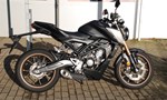 Unfall frei und Umfall frei laut Vorbesitzer. Honda CB125RA Die CB125R sieht nicht nur gut aus, sondern fährt dank ihrer geballten Leistung auch so gut. Das schlanke und minimalistische Design sorgt für einen unverwechselbaren Look, der das Bike von der Masse abhebt. Die einfache Handhabung und die ausgefeilte Technik sorgen für eine präzise Steuerung, die perfekt für neue A1- oder B196-Führerscheininhaber ist. Markantes Styling und eine Menge Power Als Teil der Neo Sports Café-Produktreihe setzt die kleine Schwester der CB1000R ein klares Zeichen. Die aktualisierte CB125R zeichnet sich durch ein kühnes Design mit modernen Merkmalen aus. Der Stahlrohrrahmen und der runde Scheinwerfer mit der markanten Einfassung vervollständigen ein unverwechselbares Profil. Gemeinsam mit der LED-Beleuchtung und dem 5-Zoll TFT-Farbdisplay verleiht dies der CB125R eine gewisse Raffinesse. Was aber wirklich auffällt, ist die geballte Leistung des 125er DOHC-Motors. Die Präzision der Showa SFF-BP USD-Federgabeln sorgt für ein sanfteres Fahrverhalten und ein angenehmeres Fahrgefühl, selbst auf holprigen Straßen. Die Essenz des Neo Sports Café: Die perfekte Verbindung von Fahrer und Motorrad Die Neo Sports Café-Familie überzeugt durch den eleganten Minimalismus der Technik, markant und brutal gutaussehend. Jedes Modell verfügt über eine erstklassige Ausstattung, wobei der Schwerpunkt auf hochwertiger Hardware liegt. Weniger ist mehr, wenn es um die aktualisierte CB125R geht. Ein 125er-Straßenmotorrad mit klaren Linien, auffälliger LED-Beleuchtung und markanten Kurven: Das ist Retro-Minimalismus, der sofort auffällt.
