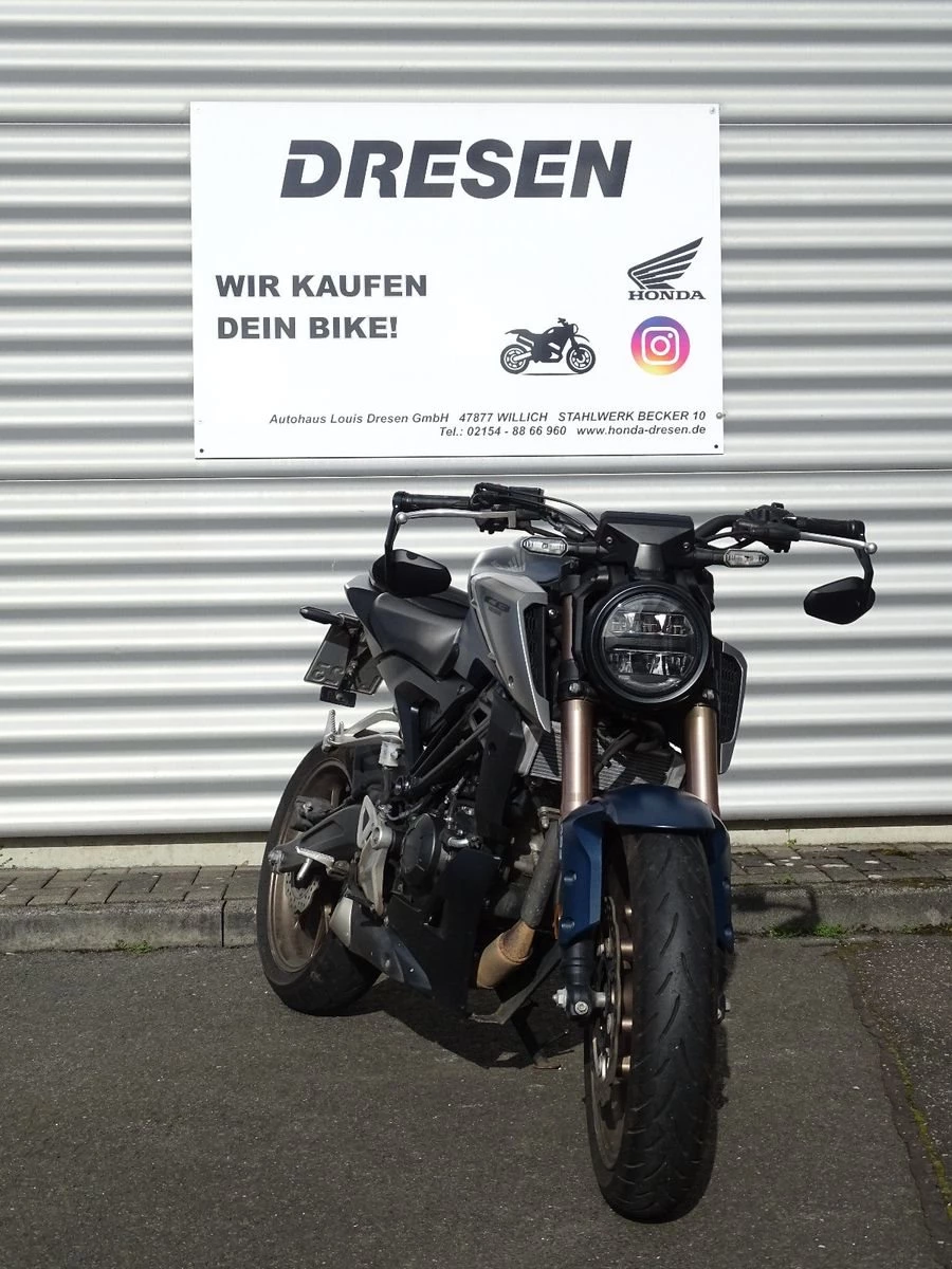**Willkommen bei Honda Dresen in Willich **Als erfahrener Honda Motorrad Vertragspartner bieten wir Ihnen in Willich auf über **800 m Ausstellungsfläche** eine große Auswahl aktueller Honda Modelle. Mit über** 900 verkauften Motorrädern pro Jahr** stehen wir für Kompetenz, Erfahrung und Leidenschaft rund um das Thema Zweirad. ** Ihre Ansprechpartner: **Adrian Dünnweller - 02154 / 8866910 Jannis Weidemann - 02154 / 8866913 Sven Roßkamp - 02154 / 8866960----**NEUFAHRZEUGE:** Auf Wunsch beraten wir Sie zu weiteren sofort bzw. kurzfristig verfügbaren Neufahrzeugen (Farben/Ausstattungen) bei uns im Haus. **KONTAKT:** Gerne erstellen wir Ihnen Ihr persönliches Angebot - Tel. 02154 88 669 -0 **WEBSITE:** Alle Angebote finden Sie unter www.honda-dresen.de----**Honda CB 125 R ABS - Gepflegtes Fahrzeug in gutem Zustand ** **Ausstattung & Zubehör:*** Lenkerendenspiegel * Kurzes Heck **Zustand:*** Technisch einwandfrei und gepflegt * Optisch in gutem Zustand **Service & Lieferung:*** Übergabeinspektion vor der Auslieferung * Bundesweiter Versand per Motorradspedition - gerne informieren wir Sie über die aktuellen Konditionen **Finanzierung & Inzahlungnahme:*** Flexible Finanzierung bis zu 84 Monate, auch ohne Anzahlung * Gerne erstellen wir Ihnen ein individuelles Angebot Alle Angaben ohne Gewähr. Änderungen, Irrtum und Zwischenverkauf vorbehalten.