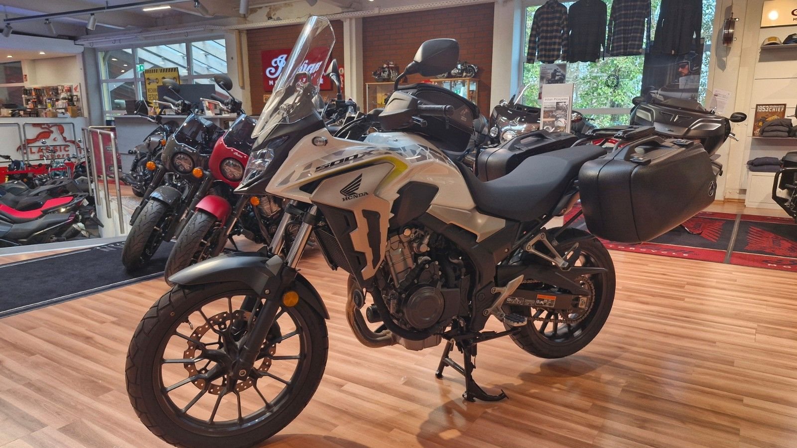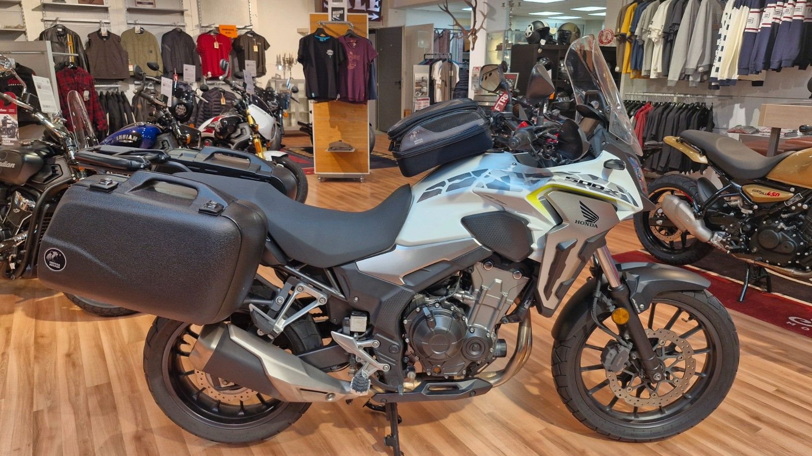 **Herzlich Willkommen beim Bikestore in Karlsruhe-Grötzingen Seit über 20 Jahren stehen wir als Honda-Vertragshändler für Leidenschaft auf zwei Rädern. Neben Honda haben wir auch Indian Motorcycle sowie Royal Enfield im Programm. Für diese Marken stehen wir für guten Service und ehrliche Schrauber-Kultur - weil Vielfalt einfach Spaß macht. Wir bieten Euch hier eine Honda CB500X mit sehr viel Zubehör an. **Das Fahrzeug ist Scheckheftgepflegt, ist in einem sehr guten Zustand und hat einen Vorbesitzer. Folgendes Zubehör wurde verbaut: Hepco & Becker Seiten Träger mit Hepco & Becker Koffer, Hepco & Becker Top-Case Träger, Hepco & Becker Tankruchsack abnehmbar, Puig Cross Fußrasten, Puig verstellbare Handhebel, CLS Kettenöler, Honda-Comfort Paket- Honda Handprotektoren, Honda Heizgriffe, Honda Hauptständer, Honda Windabweiser Set, Honda 12V Steckdose. **Abwicklung: **Natürlich ist eine Finanzierung für Dein neues Bike bei uns möglich. Eine Inzahlungnahme Deines Motorrades oder eine Anlieferung durch eine Spedition, sind bei uns ganz unkompliziert! Schau doch gerne bei uns vorbei. Sicherlich haben wir das richtige Motorrad für Dich vor Ort. Du kannst gerne vorab bei uns einen Probefahrt-Termin vereinbaren. Sprich uns einfach an.** Du kannst uns erreichen unter: ** **Tel.** 0721 - 790 77 10 /** Email:** info@bikestore-ka.de / **Internet:** www.bikestore-ka.de** Hier noch einige grundsätzliche Dinge zu unseren Angeboten: ** Die Laufleistungen können sich bei Gebraucht- oder Vorführfahrzeugen durch Probefahrten verändern. Alle unsere Fahrzeuge werden vor Übergabe einer sorgfältigen Auslieferungsinspektion unterzogen, um sicherzustellen, dass sie sich in einem technisch einwandfreien Zustand befinden. Trotz größtmöglicher Sorgfalt bei der Erstellung unserer Inserate, können Fehler oder Irrtümer nicht vollständig ausgeschlossen werden. Änderungen, Zwischenverkauf bleiben vorbehalten.** Wir sind für Dich da: **Montag bis Freitag 9:00 - 13:00 Uhr & 14:00 bis 18:00 Uhr Samstag 09:00 Uhr bis 13:00 Uhr** Von Anfang November bis Ende Februar haben wir montags geschlossen. BikeStore-KA GmbH Eisenbahnstr.42 76229 Karlsruhe Tel.: 0721-7907710 Mail: info@bikestore-ka.de Internet: www.bikestore-ka.de**