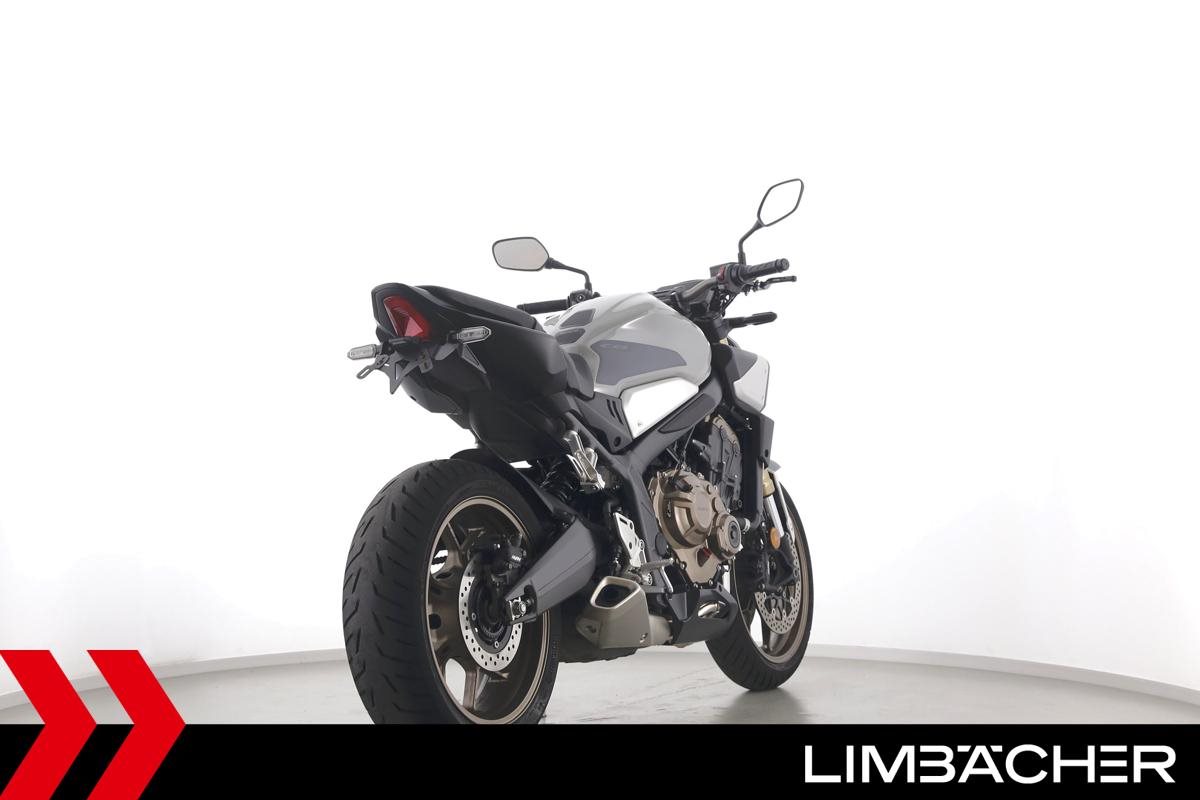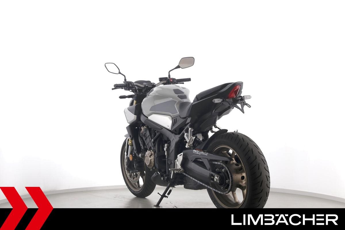 ** Das Fahrzeug:** Honda Stuttgart bietet hier eine **Honda CB 650 R** mit einer neuen Jahresinspektion inklusive 40-Punkte-Durchsicht. Alle unsere Fahrzeuge werden mit mindestens einem Jahr TÜV übergeben. ---- **Fahrzeugzustand & Beschreibung:** Eine scheckheftgepflegte Honda CB 650 R aus erster Hand in sehr gepflegtem Zustand u.a. mit kurzem Kennzeichenhalter und Windschild/ Flyscreen. ---- **Verschleißteile: ** **Bremsbeläge:** Vorne: 70% Hinten: 80% **Reifen:** Vorne: 70% Hinten: 70% ---- ** Ausstattung & Extras:** * kurzer Kennzeichenhalter * Windschild/ Flyscreen * Bugspoiler * Gabelschutz aus Aluminium * Seitenabdeckung aus Aluminium * Öleinfüllkappe aus Aluminium * Tankpad mit CB-Logo * Tankschutzfolie seitlich * Quickshifter * Bremsflüssigkeit neu ---- **Ansprechpartner:** Manuel Forschner 0711 93964378 homepage-limbaecher-honda@limbaecher.dealerdesk.de **KOSTENLOSE LIEFERUNG IM NOVEMBER!** **Im Dezember schenken wir allen die Transportkosten.** Bei der Bestellung eines unserer Fahrzeuge zum ausgezeichneten Preis bis einschließlich 30.11.2025 **übernehmen wir die Transport-/Frachtkosten** für dich und liefern dein Wunsch-Motorrad innerhalb von Deutschland **kostenlos bis vor die Haustür.** **KOSTENLOSE ÜBERWINTERUNG?** **Park&Sell bei Limbächer:** Du parkst dein Bike bei uns in der Ausstellung ? und wir verkaufen es für dich! **Abholung, Aufbereitung, Check-up und Überwinterung kostenlos!** Der Rest geschieht quasi im Winterschlaf. Sollte es nicht verkauft werden, bringen wir es wohlbehalten zurück. Alle Infos zu Park & Sell findest du auf unserer Website. **WERKSTATT-WINTERAKTION:** Vom 3.11.2025 bis 28.2.2026 bieten wir einen bequemen und kostenlosen Hol- und Bringservice im Umkreis von 50 km an (Größere Entfernungen auf Anfrage. Der Rechnungsbetrag muss einen Werkstattlohn von mindestens 250,? ? beinhalten.) **GARANTIERT SORGLOS CRUISEN:** **Jetzt neu:** unsere Lebenslange Garantie kann jetzt für Fahrzeuge **schon ab Baujahr 2012 und bis 25.000 km** abgeschlossen werden! Sprich für eine umfassende Beratung einfach unser Verkaufsteam an. **DANKE!** LIMBÄCHER holt den Titel als **Motorradhändler des Jahrzehnts** - Danke an all unsere Kunden für das Vertrauen! **Limbächer und Limbächer - Deutschlands größte Motorradwelt!** Ihr kompetenter Partner am Stuttgarter Flughafen seit 1992. Vertragshändler für Ducati, Honda, Kawasaki, Yamaha, Moto Guzzi und Husqvarna über **2000 Motorräder in der Ausstellung auf über 20 000 m** **Weitere Standorte:** **- Reutlingen:** Vertragshändler für KTM, Honda, Kawasaki, Yamaha, Suzuki, Aprilia, Piaggio, Vespa und MV Agusta **- Rottweil:** Vertragshändler für Triumph, Kawasaki, Aprilia, Piaggio und Vespa **- Schongau:** Vertragshändler für Triumph, Kawasaki, Yamaha und Honda * Barankauf und Inzahlungnahme von Motorrädern aller Marken! * bei Gebrauchtfahrzeugen 14 Tage kostenloses Umtauschrecht ab Anmeldung auf den Käufer * mit 40 Punkte Technik-Check in unserer modernen Meisterwerkstatt * Lieferung frei Haus bundesweit ab 99.? Euro * Ausstellung und Bistro täglich (auch Sonntags) bis 18.00 Uhr geöffnet * Finanzierung mit und ohne Anzahlung möglich. * Barankauf aller Marken auch Exoten ? sofortige und unkomplizierte Abwicklung * Rückkaufgarantie für alle bei uns gekauften Motorräder * Meisterwerkstatt: 8 KFZ-Meister und 12 Mechaniker stehen Ihnen mit Rat und Tat mit modernsten Diagnosegeräten zur Seite * Große Auswahl an Motorradbekleidung auf über 400 m * Irrtümer und Zwischenverkauf vorbehalten