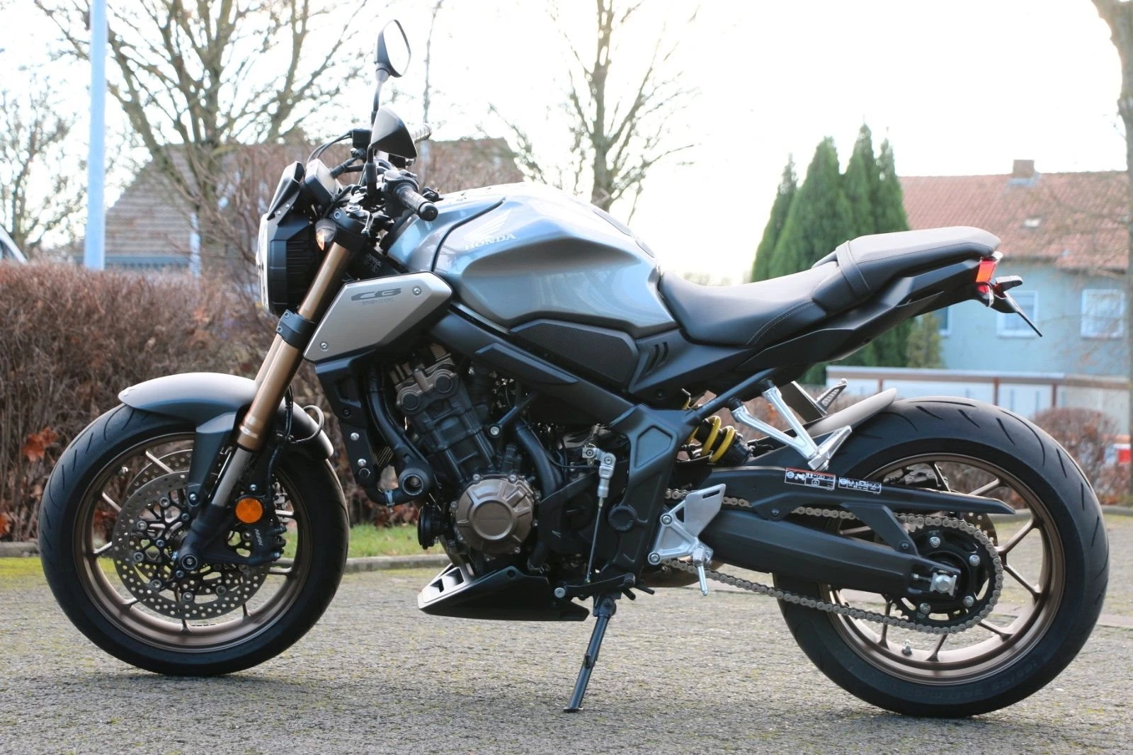**Gepflegte CB650R im guten Zustand!** Motor wurde vom HONDA Vertragshändler ausgetauscht, Laufleistung des Motors ca. 24.000km Inspektion nach Herstellervorgaben wurde durchgeführt, inkl. Ventilspielkontrolle! **Ausstattung:** - MIVV Komplettanlage - verstellbares Hebelset von Gilles - kleines Windschild / Tachoverkleidung - Quickshifter - Bugspoiler **Zubehör & Extras:** Weiteres Zubehör auf Anfrage, Sonderkonditionen in Verbindung mit Fahrzeugkauf, gerne beraten wir Euch! **Finanzierung:** Flexible Finanzierung auch ohne Anzahlung. Gerne unterbreiten wir Dir ein persönliches Angebot. **Inzahlungnahme:** Gerne bewerten wir Deine Gebrauchte, Inzahlungnahme fast aller Fahrzeugtypen möglich. **Neufahrzeug Garantie:** Die neue Honda Garantie bietet Dir jetzt bis zu 6 Jahre Rundumschutz und sorgt so für unbeschwertes Fahrvergnügen. **Gebrauchtfahrzeug Garantie:** Alle gebrauchten Fahrzeuge wurden sorgfältig geprüft und aufbereitet. Auf unsere gebrauchten Fahrzeuge geben wir 12 Monate Händler-Garantie! **Anlieferung:** Bundesweite Anlieferung gegen Aufpreis möglich. Anlieferung erfolgt über Spedition, die auf Motorradtransporte spezialisiert ist. **Überzeuge dich selbst bei einer Probefahrt vor Ort!** **Zwischenverkauf und Irrtümer vorbehalten. Die Fahrzeugbeschreibung dient ausschließlich der allgemeinen Identifikation des Fahrzeugs und stellt keine rechtsverbindliche Gewährleistung dar. Verbindlich sind nur die Vereinbarungen im Kaufvertrag und der Auftragsbestätigung.**----**Ihre Ansprechpartner:** **Justin Rolle** Telefon: 02922/7075 E-Mail: rolle@honda-schomaker.de **Thorsten Ziegert** Telefon: 02922/7075 E-Mail: ziegert@honda-schomaker.de