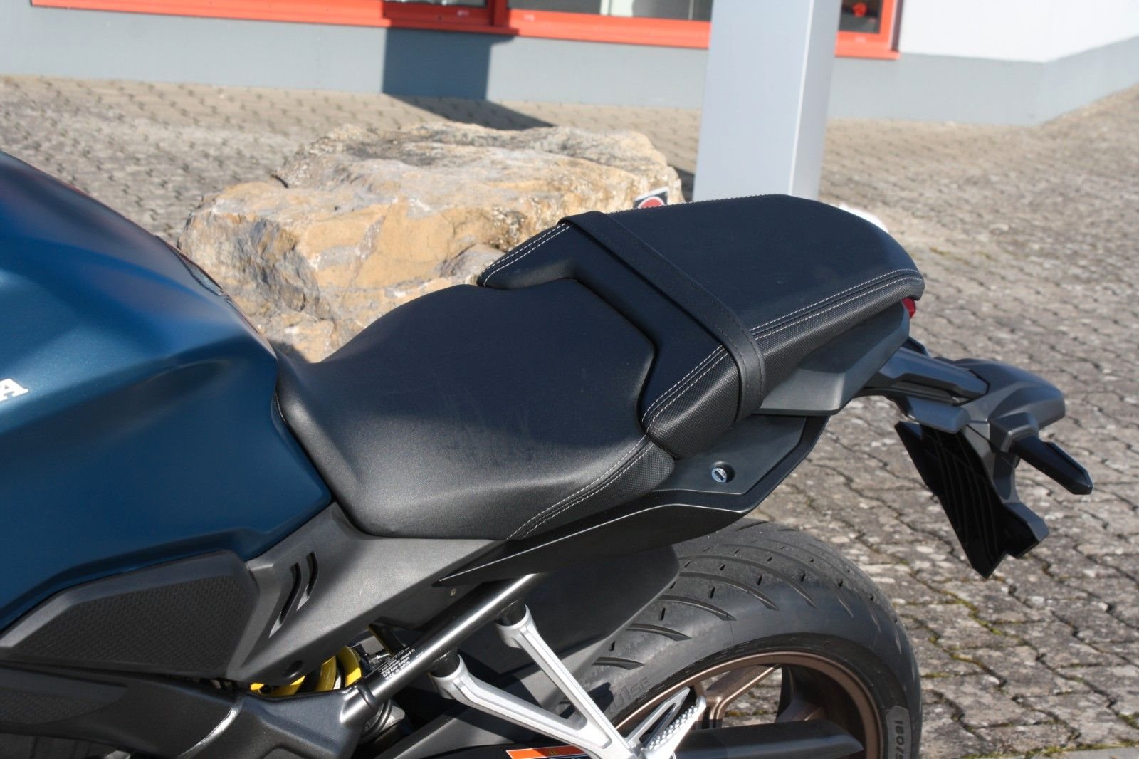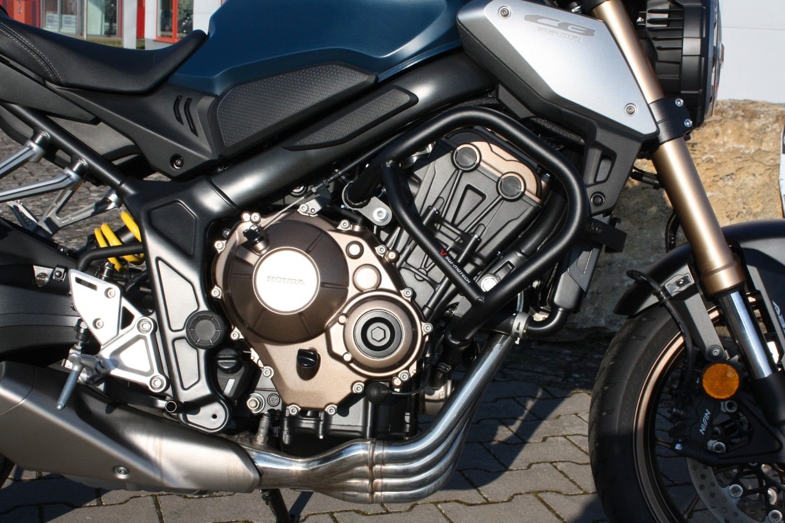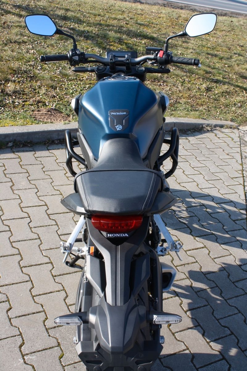 Elegantes Naked Bike in Matt Jeans Blue Metallic - die Honda CB650R aus erster Hand. Das Motorrad wurde von Beginn an in unserer Werkstatt scheckheftgepflegt und stammt direkt aus unserer Neuauslieferung an den Vorbesitzer, sodass wir es praktisch von Anfang an kennen. Ausstattungstechnisch verfügt die CB650R über einen Motorschutzbügel, einen Quickshifter (Schaltassistent) und einen Kühlerschutz. Alle Verschleißteile sind in tadellosem Zustand, und der Jahreskundendienst wurde frisch durchgeführt. Bei Bedarf können wir die Leistung auf einsteigertaugliche 35?kW für den A2-Führerschein reduzieren. Ein zuverlässiges, gepflegtes und bestens gewartetes Motorrad für Einsteiger und erfahrene Fahrer gleichermaßen. Willkommen bei Honda Perschall - Ihrem zuverlässigen Honda-Partner an der bezaubernden Mainschleife seit 1979! Entdecken Sie unsere ständig wechselnde Auswahl an gepflegten und werkstattgeprüften Gebrauchtmotorrädern. Bei uns ist eine Finanzierung möglich, und wir erstellen Ihnen gerne ein individuelles Angebot. Zudem nehmen wir gerne Ihr (japanisches) Gebrauchtmotorrad in Zahlung. Profitieren Sie auch von unserem Motorrad-Barankaufsservice sowie von einem bundesweiten Versand. Besuchen Sie uns online unter www.perschall.de oder folgen Sie uns auf Google, Facebook und Instagram (@motorradperschall), um mehr über uns zu erfahren. Unsere Öffnungszeiten im Sommer (März - September) sind von Montag bis Freitag von 9.00 bis 12.00 Uhr und von 13.00 bis 18.00 Uhr sowie Samstags von 9.00 bis 13.00 Uhr. Donnerstags bleibt unser Geschäft geschlossen. Im Winter (Oktober - Februar) begrüßen wir Sie von Montag bis Freitag von 9.00 bis 12.00 Uhr und von 13.00 bis 17.30 Uhr sowie Samstags von 10.00 bis 13.00 Uhr. Auch hier bleibt unser Geschäft donnerstags geschlossen. Wir freuen uns darauf, Sie persönlich zu beraten!