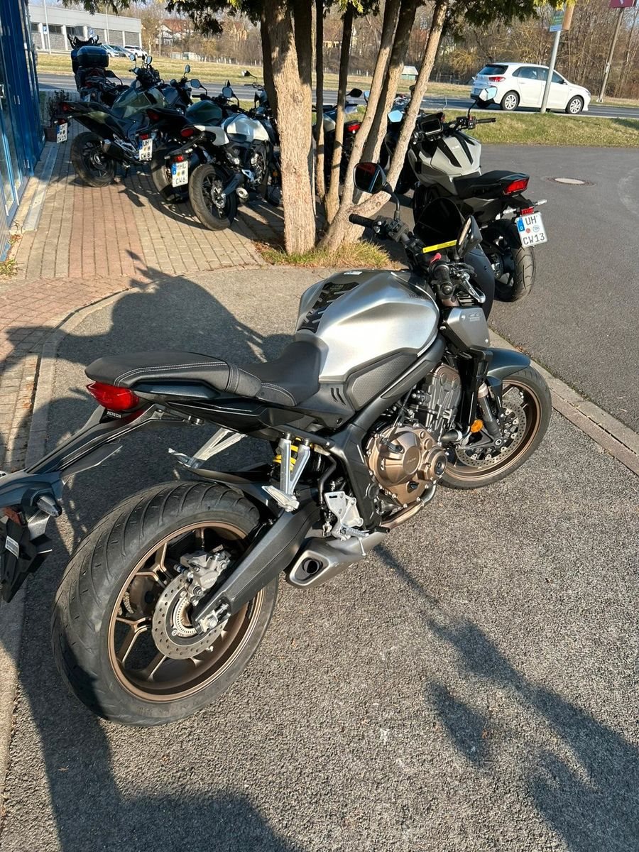 * **!!HONDA-NEUMOTORRÄDER finden sie auf unserer HP cycle-world.de !! Wir sind Honda - Motorrad - Vertragshändler! Ab Januar 2026 finden sie unsere Angebote für Neumotorräder nur noch auf unserer Homepage unter www. cycle-world.deODER SCHREIBEN SIE UNS GERN EINE ANFRAGEMAIL über das Mobile-Kontaktformular in dieser Anzeigeihr erreicht uns von 10-18Uhr (Sa 10-13Uhr) unter 03601-442307.** * ---- * **Das angebotene Gebrauchtfahrzeug CB650RA ist in einem guten Zustand ** ---- * **Jeden Tag ein neues Abenteuer. Starten Sie in Ihres - mit der neuen CB650R. Die CB650R mit der markanten Leistung eines Streetfighters in Nakedbike-Optik und dem minimalistischen Styling der Neo Sports Café verspricht unvergessliche Abenteuer.** Unser Angebot: ** ** individuelle Finanzierungsvarianten mit und ohne Anzahlung sind möglich **! Fahrzeugpreis zzgl. Nebenkosten (z.B. KFZ Zulassung oder Anlieferung)**