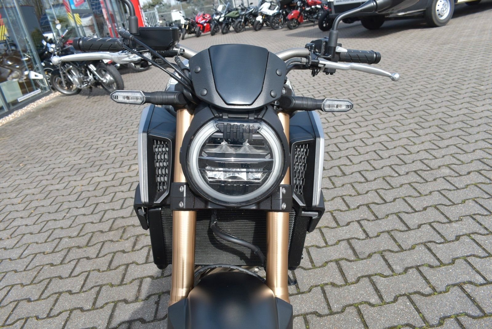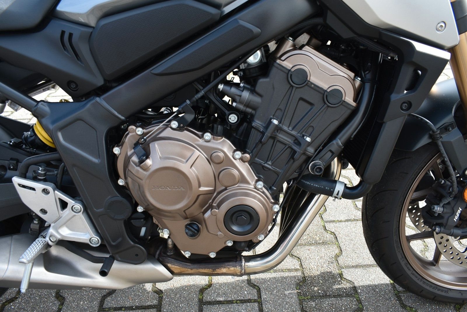 Vierzylindermagie pur. Die aufs Wesentliche reduzierte CB650R überzeugt im Stadtverkehr und auf der Landstraße durch herausragende Beschleunigung, agile Leichtigkeit und das unverwechselbare, von der CB1000R inspirierte Neo Sports Café-Design. Ausstattung: - kurzer Kennzeichenhalter - ABS - Traktionskontrolle - Scheinwerfer Verkleidung - Inspektion bei Kauf frisch - HU bei Kauf Neu - 1 Jahr Garantie Günstige Finanzierung & Inzahlungnahme möglich! **Besichtigung: Da sich unser Fahrzeugangebot täglich ändert, empfehlen wir vor der Besichtigung / Probefahrt eine Terminabsprache per Telefon** **Die Fahrzeugbeschreibung dient lediglich der allgemeinen Identifizierung des Fahrzeuges und stellt keine Gewährleistung im kaufrechtlichen Sinne dar. Die Angaben erheben nicht den Anspruch auf Vollständigkeit. Die gemachten Angaben und Beschreibungen sowie Bilder sind unverbindlich und dienen nicht als zugesicherte Eigenschaften. Der Verkäufer übernimmt keine Haftung bzw. Gewährleistung für Schreib- oder Datenübermittlungsfehler. Ausstattungen sind ggf. gesondert zu prüfen. Änderungen und Zwischenverkauf vorbehalten.**