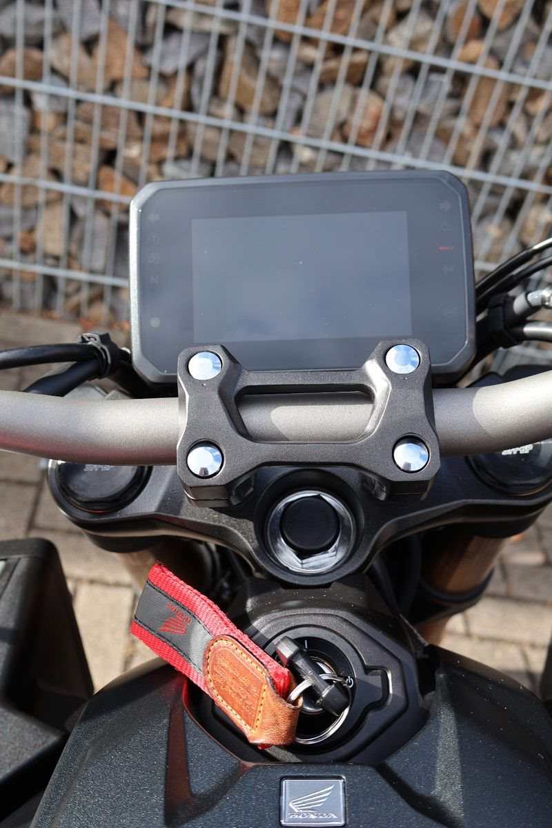 Neu und Gebrauchtfahrzeuge vom KTM - Honda - Vertragshändler, das Fahrzeug ist ein Vorführfahrzeug mit Sturzschaden ( siehe Bilder ). Vierzylindermagie pur. Die aufs Wesentliche reduzierte CB650R überzeugt im Stadtverkehr und auf der Landstraße durch herausragende Beschleunigung, agile Leichtigkeit und das unverwechselbare, von der CB1000R inspirierte Neo Sports Café-Design. Hinzu kommen erstklassige Technik und das herausragende als Sonderausstattung erhältliche neue Honda E-Clutch. Du hast es in der Hand. Der DOHC-Vierzylinder-Reihenmotor leistet in der Spitze 70 kW (95,2 PS) - der rote Bereich beginnt bei 12.000 U/min - und bietet ein Drehmoment von 63 Nm. Honda Händler können das Bike für alle mit A2-Führerschein auf 35 kW drosseln und die Drosselung entfernen, sobald ein A-Führerschein vorgelegt werden kann. Da Leistung Kontrolle braucht, verhindert die Anti-Hopping-Kupplung das Blockieren des Hinterrads bei starkem Bremsen und Herunterschalten. Das Notbremssignal (ESS) wird bei Vollbremsungen aktiviert und sorgt so für bessere Sichtbarkeit auf der Straße. Dieses Motorrad hat alles, was du brauchst. Das brandneue 5-Zoll TFT-Farbdisplay mit hintergrundbeleuchteter Steuerung bei natürlicher Handhaltung am Lenker lässt sich unter allen Bedingungen klar ablesen. Bei beiden Komponenten wurde höchster Wert auf Bedienkomfort gelegt und das Display verfügt über eine Anti-Blende-Beschichtung. Außerdem ist für umfassende Konnektivität über die Honda RoadSync App gesorgt. Du erhältst per Android- und iOS-Smartphones Zugriff auf Turn-by-Turn-Bildschirmnavigation. Außerdem kannst du Anrufe tätigen und entgegennehmen oder Musik hören. Nur bei Honda: einzigartiger Fahrspaß dank Honda E-Clutch. Du hast die Wahl. Du kannst die Kupplung wie gewohnt verwenden oder den Hebel ignorieren und der Honda E-Clutch die Arbeit überlassen. Das ist schon alles. Beim Anfahren aus dem Stand, beim Hoch- und Runterschalten und beim Anhalten brauchst du nur den Schalthebel zu betätigen. Die Honda E-Clutch erledigt den Rest - reibungslos und verzögerungsfrei wie ein routinierter Rennfahrer. Damit hast du wesentlich mehr Kontrolle auf kurvenreichen Strecken und im Stadtverkehr. Du möchtest die Kupplung aus irgendeinem Grund verwenden? Kein Problem. Das geht jederzeit. Folgende Dienstleistungen bieten wir auch an; - Lieferung gegen Aufpreis Deutschlandweit - passendes Zubehör - Finanzierung mit oder ohne Anzahlung, von 12 - 96 Monaten - Inzahlungnahme Ihrem Fahrzeug Bei Fragen und/oder einen Probefahrttermin Rufen Sie uns bitte unter 037421/24901 an ! Das Team Keßler freut sich auf Ihren Besuch.