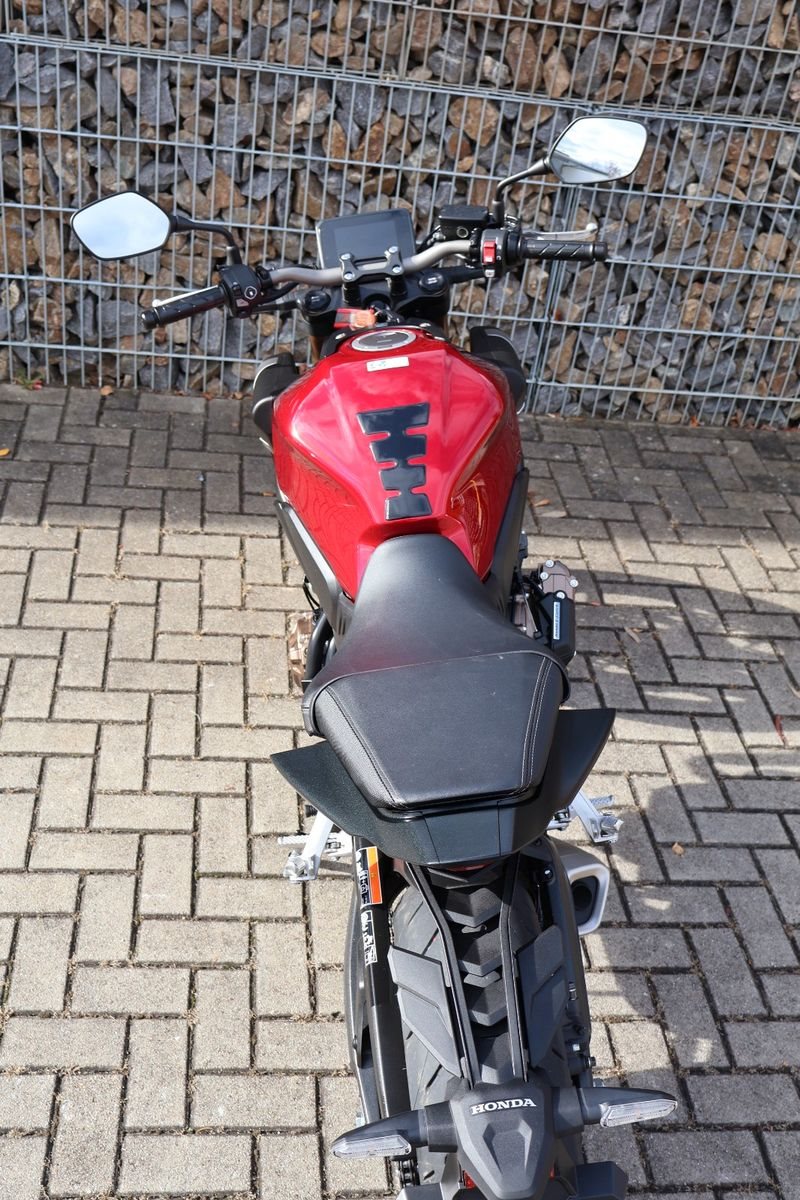 Neu und Gebrauchtfahrzeuge vom KTM - Honda - Vertragshändler, das Fahrzeug ist ein Vorführfahrzeug mit Sturzschaden ( siehe Bilder ). Vierzylindermagie pur. Die aufs Wesentliche reduzierte CB650R überzeugt im Stadtverkehr und auf der Landstraße durch herausragende Beschleunigung, agile Leichtigkeit und das unverwechselbare, von der CB1000R inspirierte Neo Sports Café-Design. Hinzu kommen erstklassige Technik und das herausragende als Sonderausstattung erhältliche neue Honda E-Clutch. Du hast es in der Hand. Der DOHC-Vierzylinder-Reihenmotor leistet in der Spitze 70 kW (95,2 PS) - der rote Bereich beginnt bei 12.000 U/min - und bietet ein Drehmoment von 63 Nm. Honda Händler können das Bike für alle mit A2-Führerschein auf 35 kW drosseln und die Drosselung entfernen, sobald ein A-Führerschein vorgelegt werden kann. Da Leistung Kontrolle braucht, verhindert die Anti-Hopping-Kupplung das Blockieren des Hinterrads bei starkem Bremsen und Herunterschalten. Das Notbremssignal (ESS) wird bei Vollbremsungen aktiviert und sorgt so für bessere Sichtbarkeit auf der Straße. Dieses Motorrad hat alles, was du brauchst. Das brandneue 5-Zoll TFT-Farbdisplay mit hintergrundbeleuchteter Steuerung bei natürlicher Handhaltung am Lenker lässt sich unter allen Bedingungen klar ablesen. Bei beiden Komponenten wurde höchster Wert auf Bedienkomfort gelegt und das Display verfügt über eine Anti-Blende-Beschichtung. Außerdem ist für umfassende Konnektivität über die Honda RoadSync App gesorgt. Du erhältst per Android- und iOS-Smartphones Zugriff auf Turn-by-Turn-Bildschirmnavigation. Außerdem kannst du Anrufe tätigen und entgegennehmen oder Musik hören. Nur bei Honda: einzigartiger Fahrspaß dank Honda E-Clutch. Du hast die Wahl. Du kannst die Kupplung wie gewohnt verwenden oder den Hebel ignorieren und der Honda E-Clutch die Arbeit überlassen. Das ist schon alles. Beim Anfahren aus dem Stand, beim Hoch- und Runterschalten und beim Anhalten brauchst du nur den Schalthebel zu betätigen. Die Honda E-Clutch erledigt den Rest - reibungslos und verzögerungsfrei wie ein routinierter Rennfahrer. Damit hast du wesentlich mehr Kontrolle auf kurvenreichen Strecken und im Stadtverkehr. Du möchtest die Kupplung aus irgendeinem Grund verwenden? Kein Problem. Das geht jederzeit. Folgende Dienstleistungen bieten wir auch an; - Lieferung gegen Aufpreis Deutschlandweit - passendes Zubehör - Finanzierung mit oder ohne Anzahlung, von 12 - 96 Monaten - Inzahlungnahme Ihrem Fahrzeug Bei Fragen und/oder einen Probefahrttermin Rufen Sie uns bitte unter 037421/24901 an ! Das Team Keßler freut sich auf Ihren Besuch.