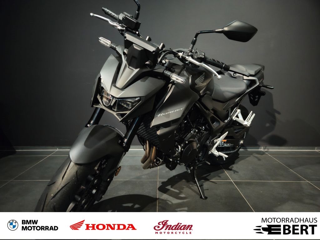 Die Honda CB750 Hornet steht für pure Leistung, modernes Design und beeindruckende Vielseitigkeit - perfekt für Stadt, Landstraße und sportliche Touren. Der leistungsstarke Zweizylindermotor liefert kräftigen Durchzug bei gleichzeitig effizientem Verbrauch und sorgt für ein dynamisches, präzises Fahrverhalten in jeder Situation. Mit agilem Handling, komfortabler Sitzposition, mehrstufiger Traktionskontrolle und ABS bietet die Hornet ein sicheres und mitreißendes Fahrerlebnis - ideal für alle, die sportlichen Fahrspaß mit Alltagstauglichkeit verbinden möchten. Dank der bewährten Honda-Qualität, hochwertigen Verarbeitung und modernen Technik ist die CB750 Hornet sowohl für den täglichen Einsatz als auch für längere Touren bestens geeignet. Auf Wunsch kann das Fahrzeug mit individueller Ausstattung und Zubehör genau nach Ihren Vorstellungen konfiguriert werden. Außerdem kann die Maschine auf 48 PS gedrosselt werden und ist damit für die Führerscheinklasse A2 geeignet. Das aggressive Design, der kraftvolle Auftritt und das ausgeglichene Gesamtpaket machen die CB750 Hornet zu einem sportlichen, zuverlässigen und vielseitigen Naked Bike für jede Straße und jedes Wetter. Deine &&Marketyp&& - Bequem nach Hause geliefert! Wir liefern dein Wunschmotorrad sicher und zuverlässig per Motorradspedition direkt zu dir nach Hause. Kontaktiere uns für die aktuellen Versandkonditionen! -> Sofort lieferbar. -> Inzahlungnahme möglich - Wir nehmen dein altes Fahrzeug gerne in Zahlung. -> Flexible Finanzierung - Auch ohne Anzahlung mit Laufzeiten bis zu 60 Monaten. Alle Angaben ohne Gewähr. Änderungen, Irrtümer und Zwischenverkauf vorbehalten. Wenn du dich für die &&Marketyp&& interessierst, freuen wir uns über deine Anfrage. Bitte teile uns die Fahrzeugnummer &&KFZintNr&& mit, damit wir dir schnell und gezielt weiterhelfen können.