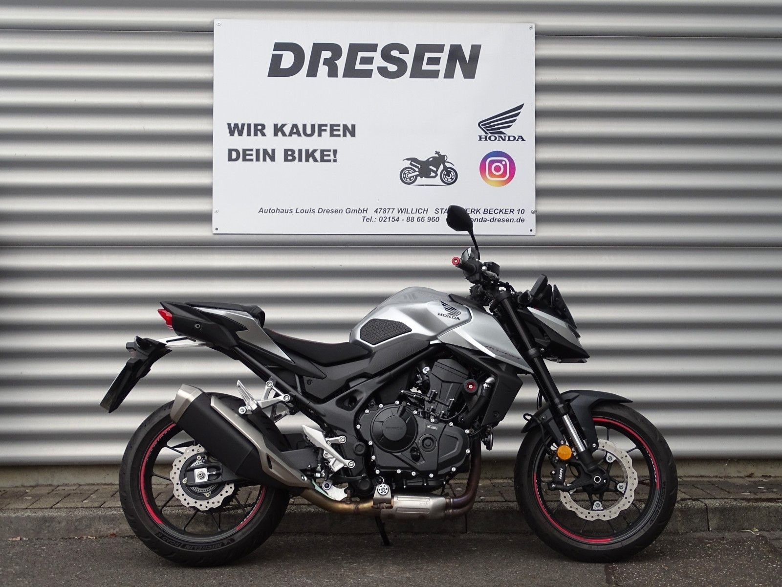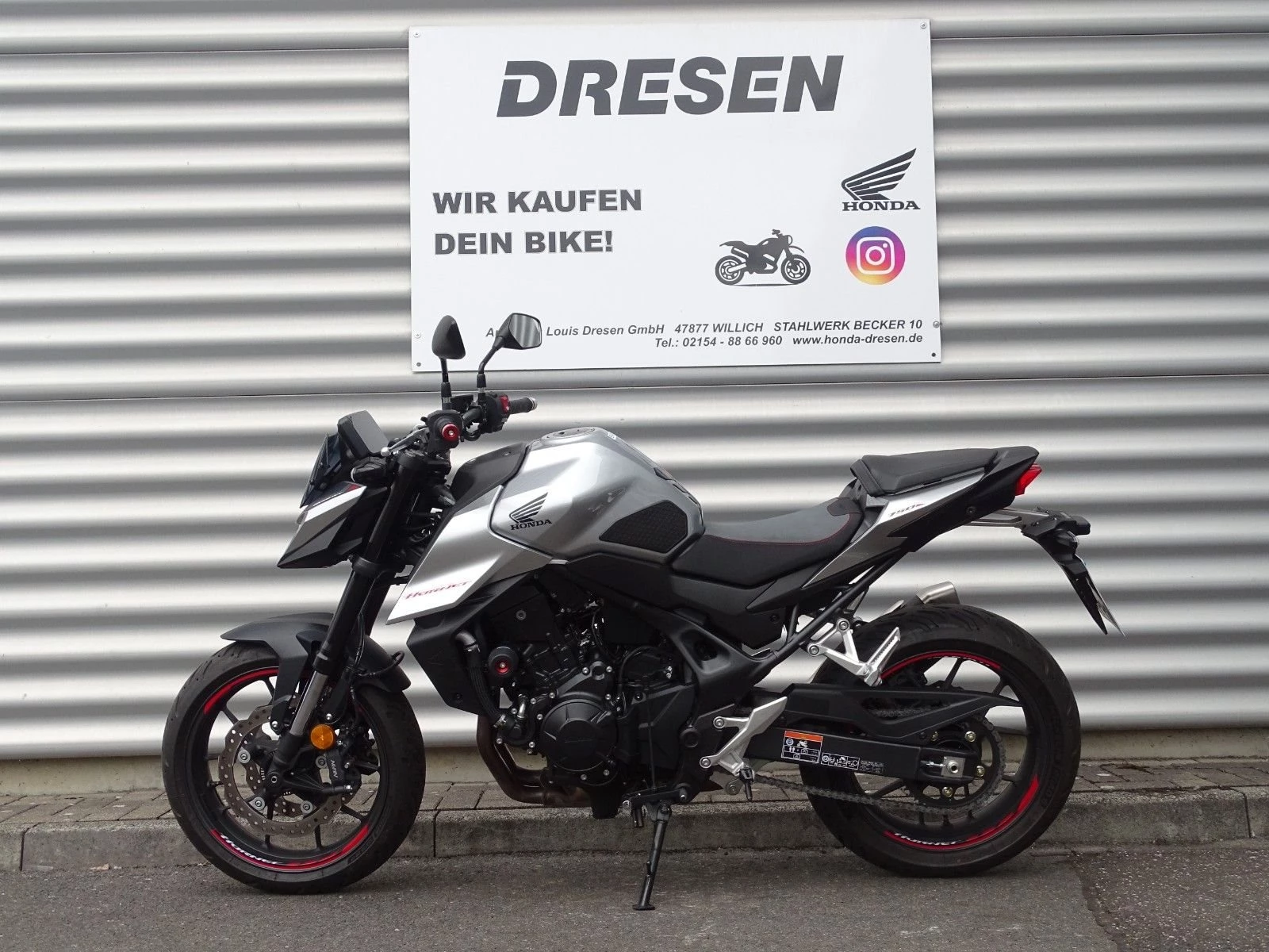 **Willkommen bei Honda Dresen in Willich! **Als einer der größten Honda Motorrad Vertragspartner Deutschlands bieten wir Ihnen auf über 800m Ausstellungsfläche eine große Auswahl an Zweirädern - hier finden auch Sie Ihr perfektes Bike. Besuchen Sie uns und lassen Sie sich beraten! ** Ihre Ansprechpartner: **Adrian Dünnweller - 02154 / 8866910 Jannis Weidemann - 02154 / 8866913 Sven Roßkamp - 02154 / 8866960 ---- **Honda CB 750 Hornet Modelljahr 2025 - Gepflegtes Fahrzeug in gutem Zustand** **Ausstattung & Zubehör Honda:** * **Sturzpads** * **Fahrer Komfortsitz** * **Kühlerschutz** * **Komfort Fußrasten** * **Felgendekor** **Zustand:*** Technisch einwandfrei und gepflegt * Optisch dem Alter entsprechend in gutem Zustand **Service & Lieferung:*** Übergabeinspektion vor der Auslieferung * Bundesweiter Versand per Motorradspedition - gerne informieren wir Sie über die aktuellen Konditionen **Finanzierung & Inzahlungnahme:*** Flexible Finanzierung bis zu 84 Monate, auch ohne Anzahlung * Gerne erstellen wir Ihnen ein individuelles Angebot Alle Angaben ohne Gewähr. Änderungen, Irrtum und Zwischenverkauf vorbehalten.