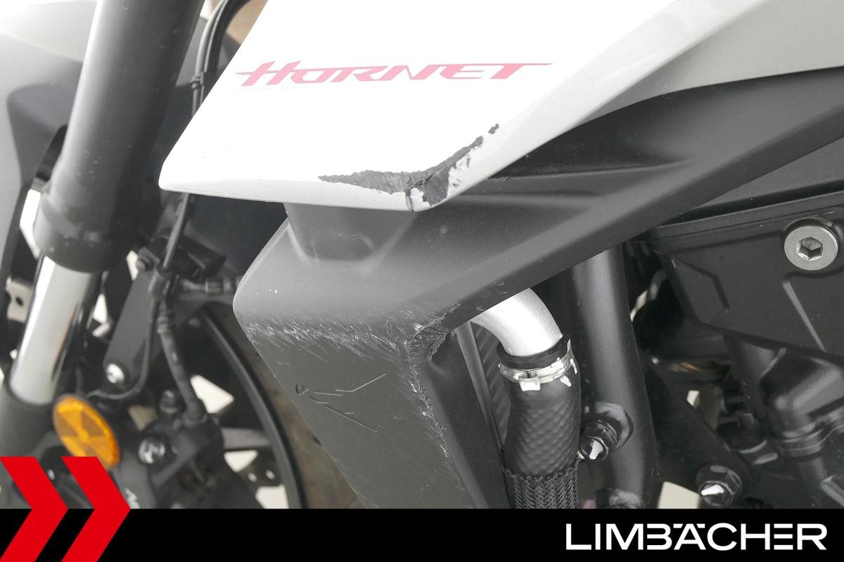** Das Fahrzeug:** Honda Stuttgart bietet hier eine **Honda CB 750 Hornet**. ---- **Fahrzeugzustand & Beschreibung:** **Hinweis: Dieses Fahrzeug ist als B-Ware eingestuft und richtet sich ausschließlich an Händler oder Gewerbetreibende. Es hat Instandhaltungs- und/oder Reparaturbedarf und ist daher nicht für den Verkauf an Privatkunden vorgesehen.** Auf B-Ware gewähren wir ein 14-tägiges Rückgaberecht. Bitte vereinbaren Sie vor Besichtigung einen Termin, da dieses Fahrzeug nicht in unseren frei zugänglichen Ausstellungshallen zu besichtigen ist. ---- ** Ausstattung & Extras:** * Shark-Endschalldämpfer mit e-Nr * protech-Brems- und -Kupplungs-Hebel * Gazzini-Spiegel * LED-Blinker und -Rücklicht * ABS ---- **Ansprechpartner:** Manuel Forschner 0711 93964378 homepage-limbaecher-honda@limbaecher.dealerdesk.de **ANKAUFAKTION "FAHREN STATT WARTEN"** Vorbeischauen, Fahrzeug bewerten lassen **und gleichzeitig eine Probefahrt machen**. Wir prüfen und rechnen ? Du fährst und **genießt, statt zu warten!** Über 100 aktuelle Modelle stehen zur Verfügung, unkomplizierte Übergabe der Fahrzeuge, und der Knaller ? wer sich spontan entscheidet, kann **das neue Fahrzeug gleich mitnehmen!** **GARANTIERT SORGLOS CRUISEN:** **Jetzt neu:** unsere Lebenslange Garantie kann jetzt für Fahrzeuge **schon ab Baujahr 2012 und bis 25.000 km** abgeschlossen werden! Sprich für eine umfassende Beratung einfach unser Verkaufsteam an. **DANKE!** LIMBÄCHER holt den Titel als **Motorradhändler des Jahrzehnts** - Danke an all unsere Kunden für das Vertrauen! **Limbächer und Limbächer - Deutschlands größte Motorradwelt!** Ihr kompetenter Partner am Stuttgarter Flughafen seit 1992. Vertragshändler für Ducati, Honda, Kawasaki, Yamaha, Moto Guzzi und Husqvarna über **2000 Motorräder in der Ausstellung auf über 20 000 m** **Weitere Standorte:** **- Reutlingen:** Vertragshändler für KTM, Honda, Kawasaki, Yamaha, Suzuki, Aprilia, Piaggio, Vespa und MV Agusta **- Rottweil:** Vertragshändler für Triumph, Kawasaki, Aprilia, Piaggio und Vespa **- Schongau:** Vertragshändler für Triumph, Kawasaki, Yamaha und Honda * Barankauf und Inzahlungnahme von Motorrädern aller Marken! * bei Gebrauchtfahrzeugen 14 Tage kostenloses Umtauschrecht ab Anmeldung auf den Käufer * mit 40 Punkte Technik-Check in unserer modernen Meisterwerkstatt * Lieferung frei Haus bundesweit ab 99.? Euro * Ausstellung und Bistro täglich (auch Sonntags) bis 18.00 Uhr geöffnet * Finanzierung mit und ohne Anzahlung möglich. * Barankauf aller Marken auch Exoten ? sofortige und unkomplizierte Abwicklung * Rückkaufgarantie für alle bei uns gekauften Motorräder * Meisterwerkstatt: 8 KFZ-Meister und 12 Mechaniker stehen Ihnen mit Rat und Tat mit modernsten Diagnosegeräten zur Seite * Große Auswahl an Motorradbekleidung auf über 400 m * Irrtümer und Zwischenverkauf vorbehalten