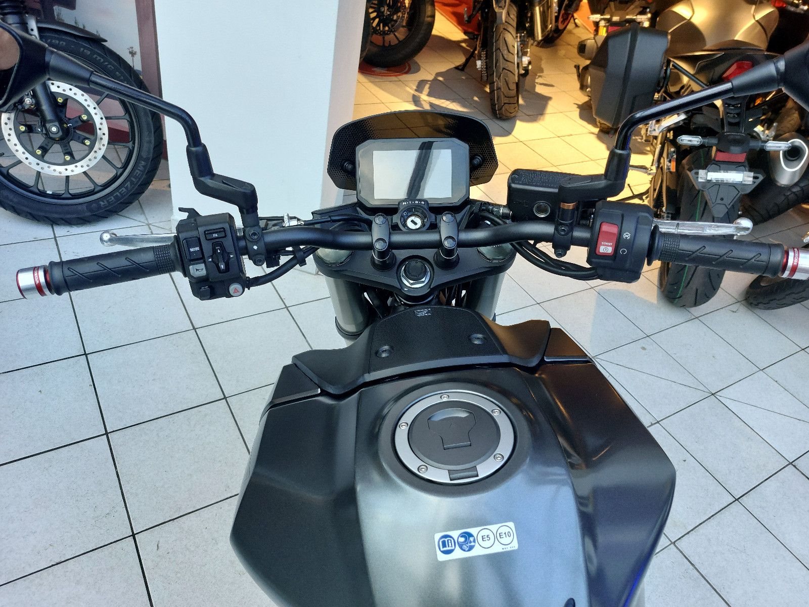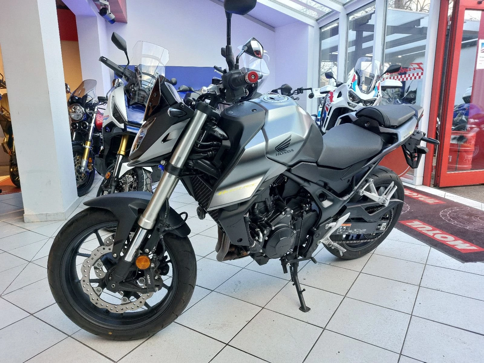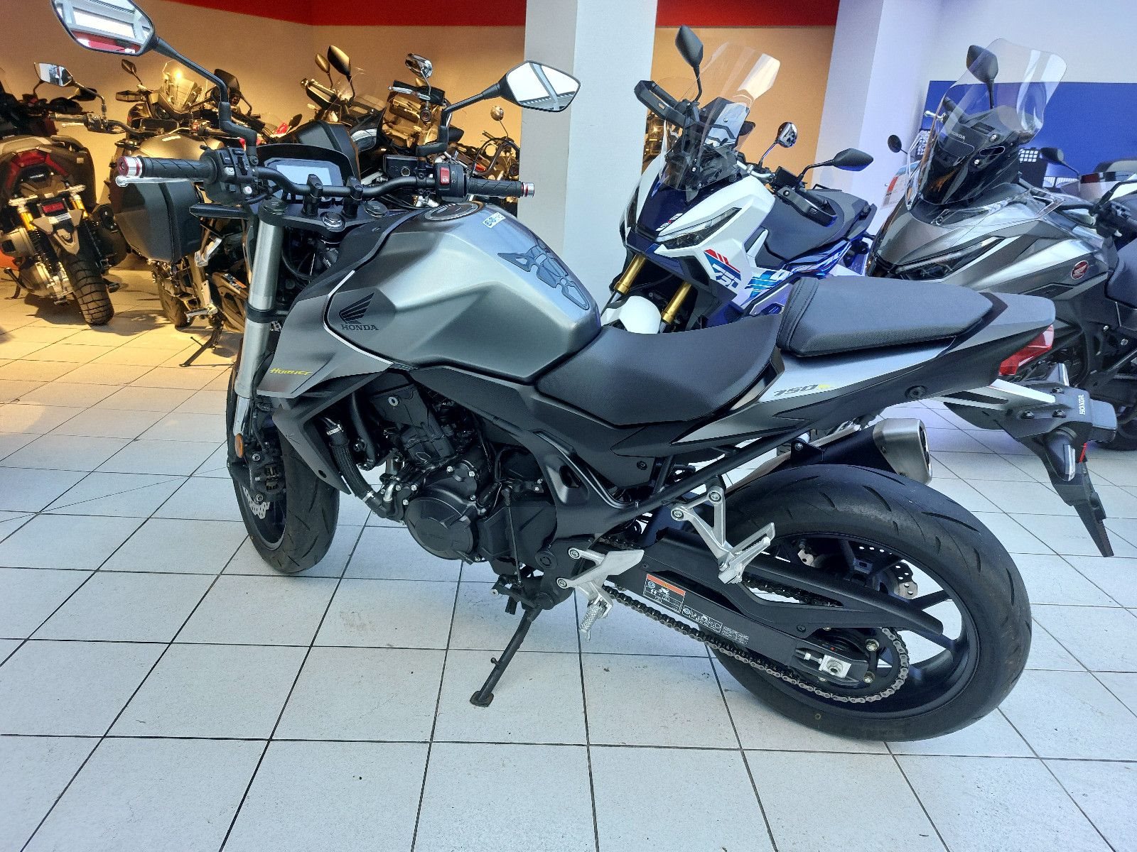 Honda CR750 Hornet, Gebrauchtfahrzeug, unfallfrei, Modell 2023, ABS, kleines Windschild (Honda Orginalzubehör), Alu Lenkerenden (Honda Orginalzubehör) LED Scheinwerfer, LED Rücklicht, LED Blinker, HSTC Traktionskontrolle, Anti Hopping Kupplung, Notbremssignal, TFT Display mit 4 Fahrmodi, Ganganzeige, 35KW Drossel gegen Aufpreis möglich, Verbrauch Honda Messwerte gem. WMTC 4,3 l/100km, CO2 Ausstoss 100 g/km, Euro 5. Unsere Neufahrzeugangebote finden Sie auf unserer Internetseite www.zweiradgebhardt.de