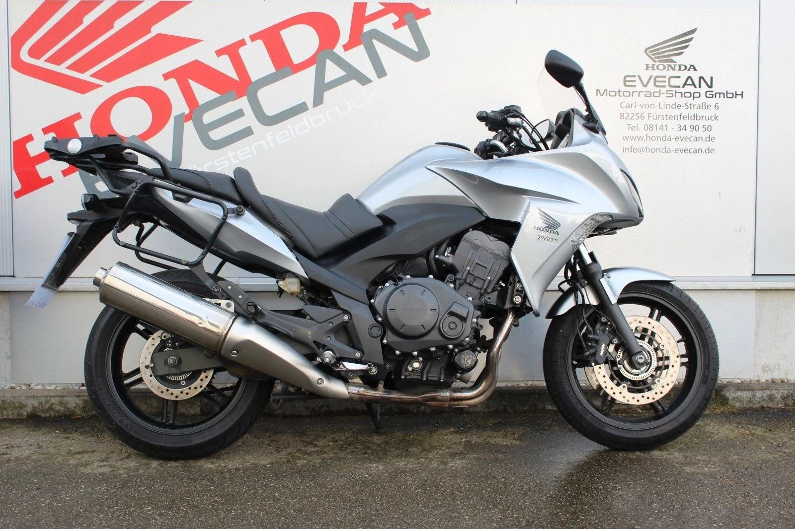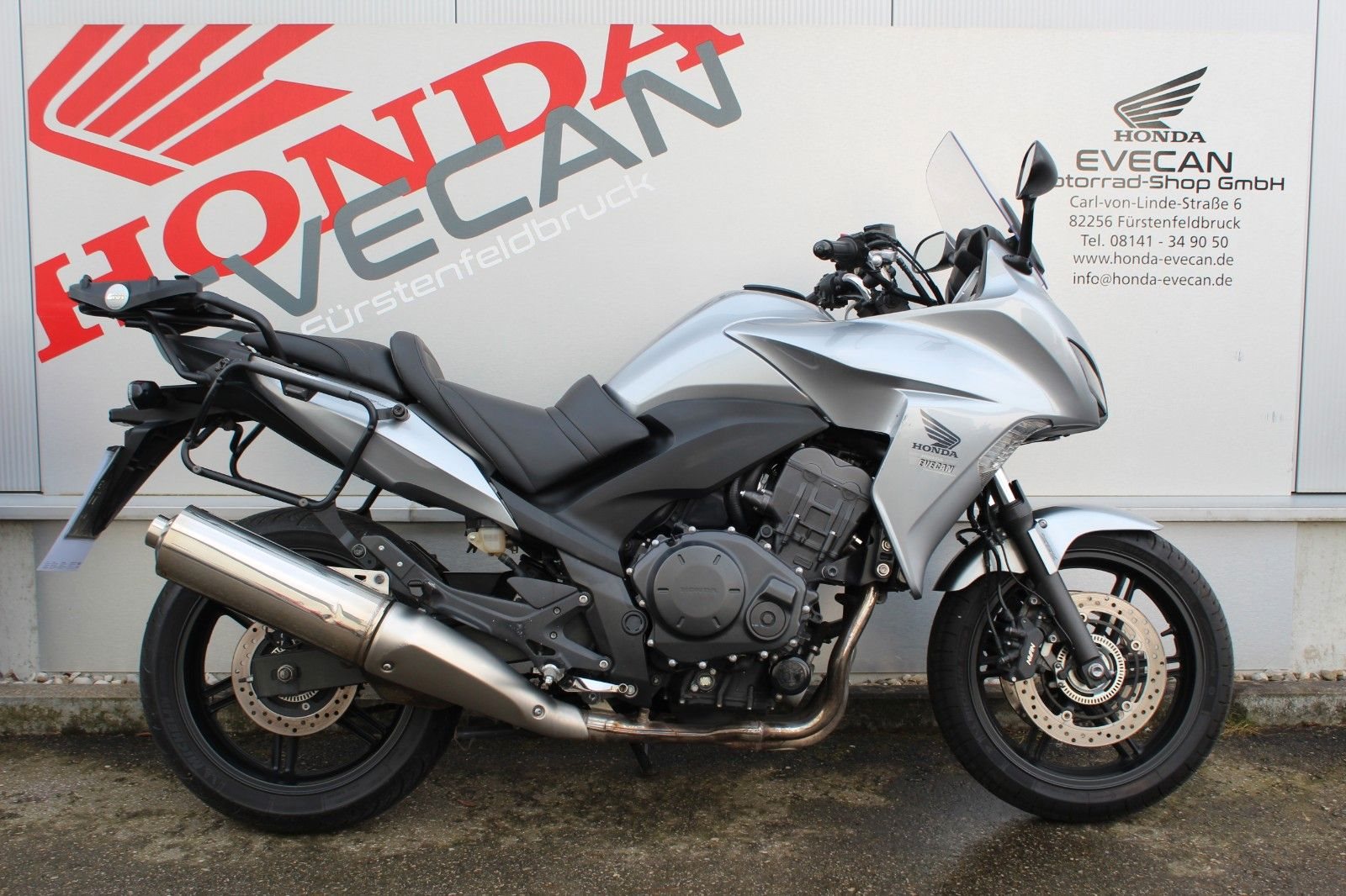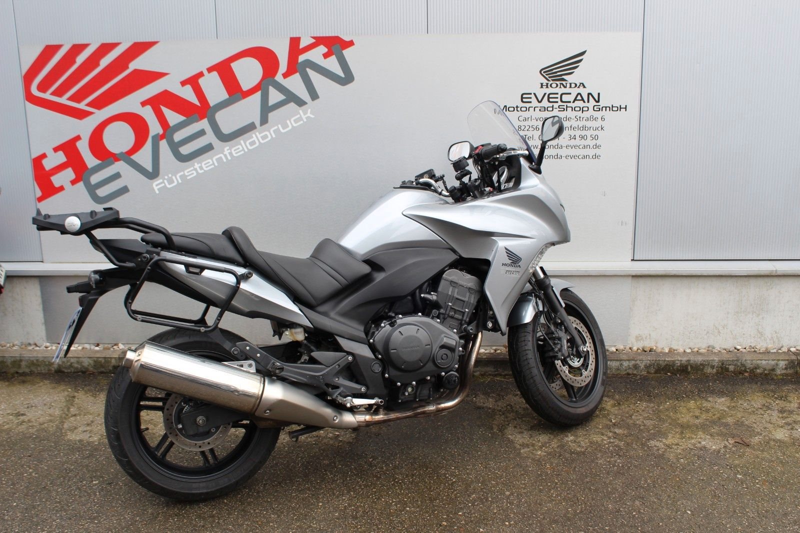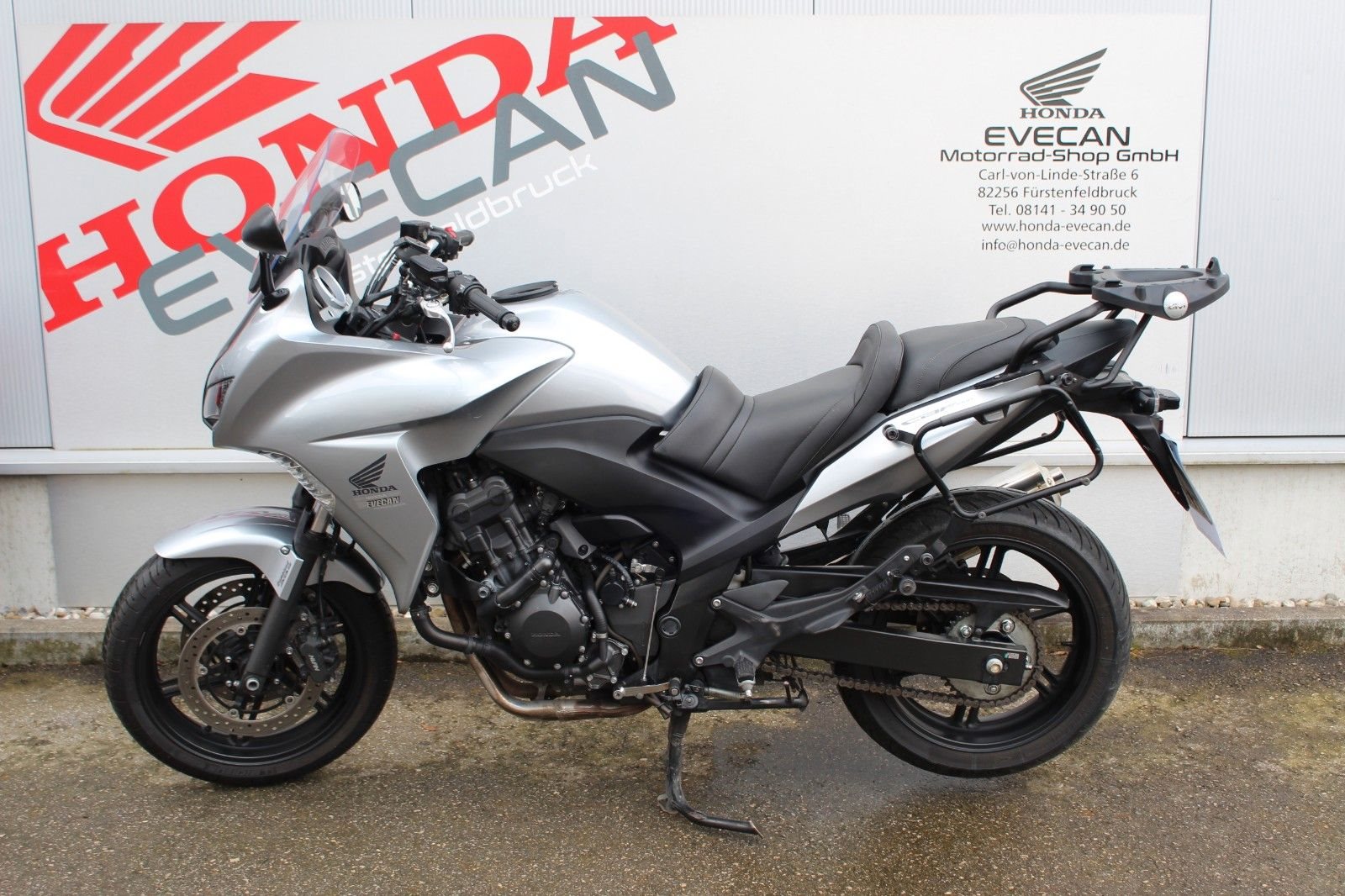 * Fahrzeug ist scheckheftgepflegt und war immer bei uns in der Werkstatt * Kettensatz sehr guter Zustand * GIVI Top Case * GIVI Seitenkoffer * TOM TOM Navi * Inspektion wird bei Kauf neu gemacht Das Fahrzeug befindet sich in einem guten Zustand. Wir haben leichte Gebrauchsspuren an der vorderen Verkleidung, am Auspuff und die Verkleidung rechts hat einen Riss. Das ist alles auf den Fotos zu sehen. Es handelt sich um ein ehrliches Fahrzeug! **Wir sind auch über WhatsApp erreichbar +498141-349050** **Honda Bank** : 3 verschiedene Ratenfinanzierungen ab 6,99 **Export** : Wir erledigen für Sie die Ausfuhr **Lieferung** : Bundesweite Lieferung schon ab 185.-€ (innerhalb 1-2 Wochen) **In Zahlung** : Gerne unterbreiten wir Ihnen ein Angebot **Ankauf** : Barankauf von Motorrädern aller Marken **Garantie** : Garantieverlängerungen möglich **Honda Evecan - Meisterbetrieb seit 1982 "Unser Service macht den Unterschied"** Bereits seit über 43 Jahren sind wir Vertragshändler der Marke Honda im Westen von München. Ganz getreu dem Motto **"Unser Service macht den Unterschied"** , beginnt der Kundenservice ab dem Verkauf. Auf rund 300m Verkaufsfläche bieten wir Ihnen eine Vielzahl von Honda-Neumotorräder sowie Gebrauchtfahrzeuge jeder Marke und Roller von 50 cm-1800 cm.---- **Gern nehmen wir auch Ihre "alte" Maschine in Zahlung oder kaufen sie auf Wunsch an, auch ohne Neukauf! **---- Ihr Ansprechpartner Dennis Evecan Tel. 08141-349050 e-Mail: dennis.evecan@honda-evecan.de www.honda-evecan.de----