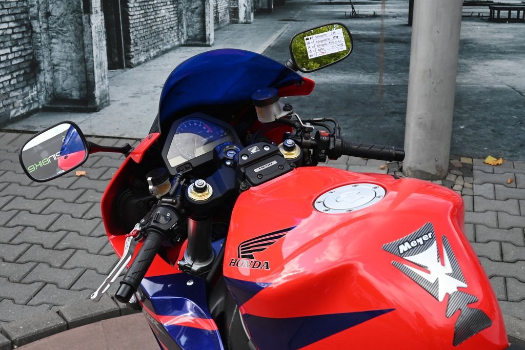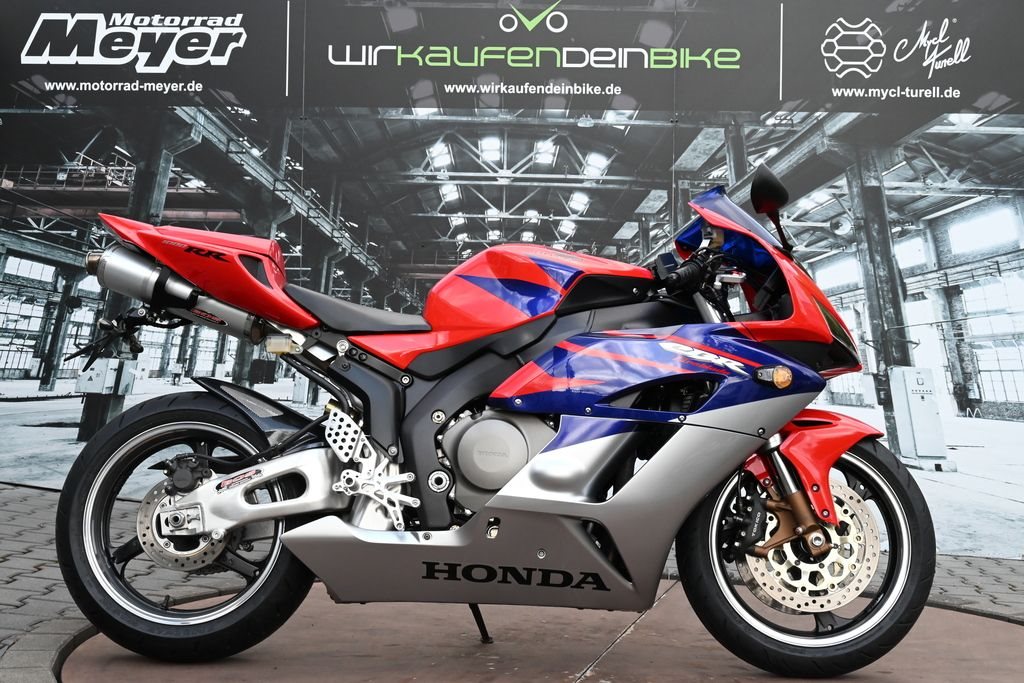 **Willkommen bei Motorrad Meyer. Euer Familienbetrieb seit über 60 Jahren!** **Allgemein:** Interne Nummer für Anfragen: **10389** Zum Verkauf steht eine **Honda CBR 1000 RR 1Hd.** , Erstzulassung: 11.07.05 , aus 1. Hand. **Zustand:** Das Motorrad befindet sich in einem sehr gepflegten und sehr guten Zustand. **Lieferumfang:** * Bedienungsanleitung * COC-Papier * 2 Schlüssel * Serviceheft **Zubehör/Umbauten:** * BOS-Auspuff * Kurzer Kennzeichenhalter * LED Blinker * Brems & Kupplungshebel * Fußrastenanlage * Blaues Windschild **Eintausch:* Unter www.wirkaufendeinbike.de bewerten wir dein Bike gerne kostenlos und unverbindlich. **Finanzen:** Finanzierungen ab 5,99% und einer Laufzeit von bis zu 120 Monaten auch ohne Anzahlung möglich. **Garantie:** Bei Neufahrzeugen, Tageszulassungen und Vorführfahrzeugen zwei Jahre Herstellergarantie ab Übergabe oder Erstzulassung (je nachdem was früher Eintritt) -- Garantieerweiterung bis zu 5 Jahre möglich. Bei Gebrauchtfahrzeugen 12 Monate Sachmängelhaftung ab Übergabe. Erweiterte Garantie auf Anfrage möglich. Export: We speak english. Wir sind Yamaha Vertragshändler und seit über 60 Jahren - mittlerweile in 3. Generation - in und um Aachen die Anlaufstelle für neue und gebrauchte Motorräder und Roller. Wir haben ständig über 300 Fahrzeuge auf Lager. **Unsere Öffnungszeiten:** **Verkauf Hauptfiliale** Mo.-Fr.: 09:00 Uhr bis 17:00 Uhr Sa.: 09:00 Uhr bis 14:00 Uhr **Vom 1.November bis zum 28. Februar ist montags saisonbedingt geschlossen.** **Werkstatt:** Mo.-Fr.: 07:00 Uhr bis 16:00 Uhr, **Vom 1.November bis zum 28. Februar ist montags saisonbedingt geschlossen.** **Websites:** * www.motorrad-meyer.de * www.wirkaufendeinbike.de * www.mycl-turell.de * www.dealer2dealer.de Diese Angaben sind unverbindlich. Der Verkäufer haftet nicht für Eingabe- oder Datenübermittlungsfehler. Irrtümer, Änderungen oder Zwischenverkauf vorbehalten.
