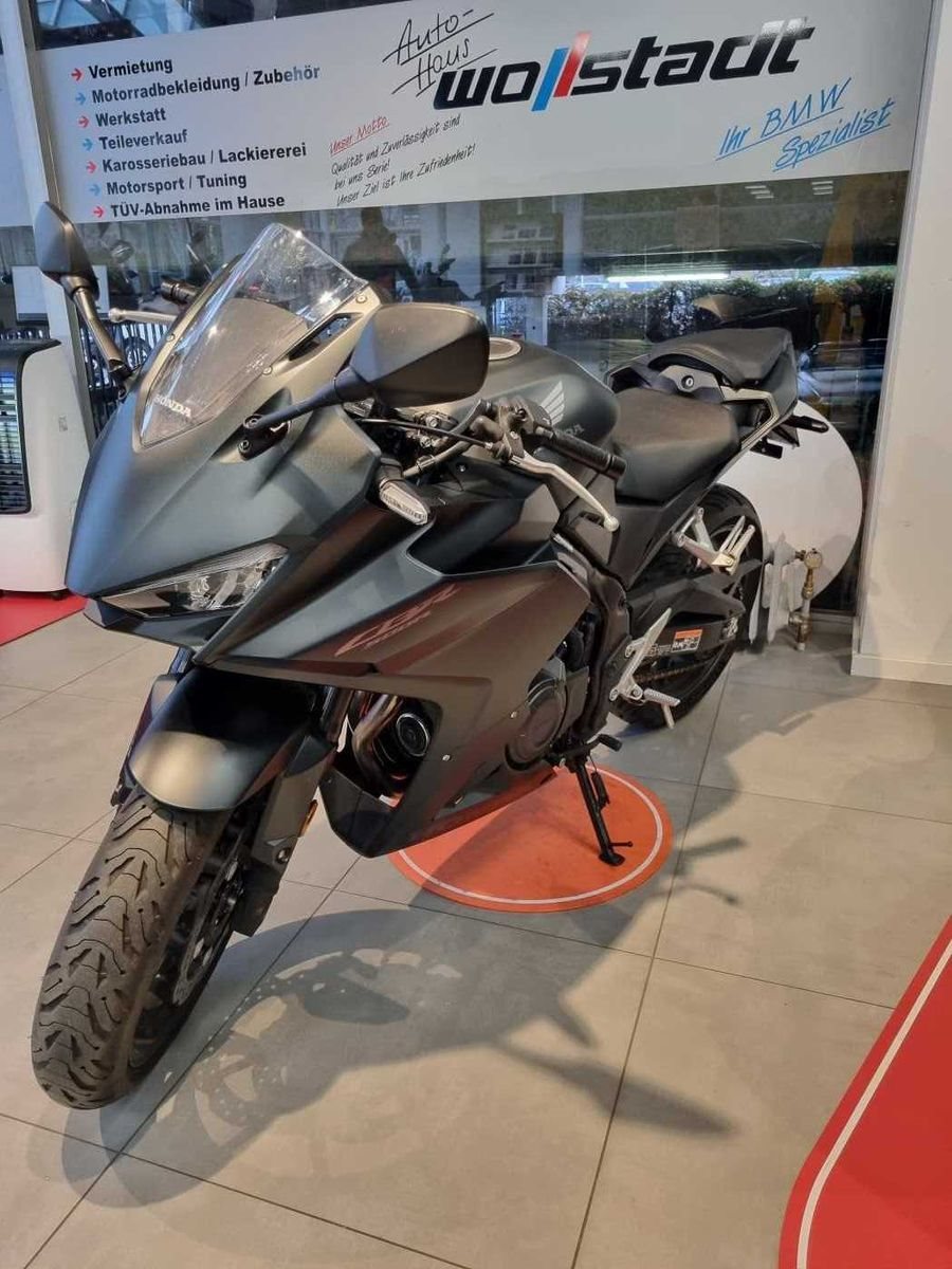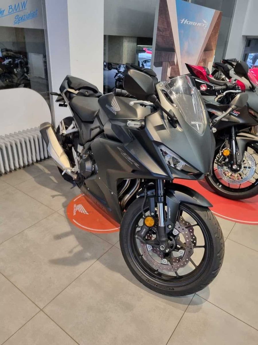 **FARBE: MATT GUNPOWDER BLACK METALLIC** * **Kurzer Kennzeichenhalter** * **Scheckheftgepflegt** Warum wir auf Rennsport setzen? Um Verbesserungen zu ermöglichen. Das war schon immer unser Ziel. Das ist auch der Grund, weshalb wir mit der CBR500R eine vollwertige CBR einführen, die mit einem A2-Führerschein gefahren werden darf. Das aggressive Styling und neue Lackierungen lassen Herzen höher schlagen. Der kräftige, drehfreudige Zweizylindermotor sowie Verbesserungen bei Aufhängung und Bremsen sorgen für Sicherheit und Selbstvertrauen. Freue dich auf echte Rennleistung und Adrenalin pur. Motor: Flüssigkeitsgekühlter Zweizylinder-Viertakt-Reihenmotor Hubraum: 471 cm3 Max. Leistung: 35 kW (47,6 PS) Max. Drehmoment: 43 Nm / 6.500 min-1 (95/1/EC) Bremsen: ABS Sitzhöhe: 785mm Tankinhalt: 17,1 Liter Gewicht vollgetankt: 192 kg Kraftstoffverbrauch in l/100km: 3,5 CO-Emission in g/km: 80 * EURO 5Norm, * LED-Beleuchtung, * LCD-Cockpit, Ganganzeige, * 41mm Teleskopgabel, * Finanzierung möglich, * Lieferung durch Spedition auf Anfrage, * Inzahlungnahme möglich. Irrtümer und Zwischenverkäufe vorbehalten.