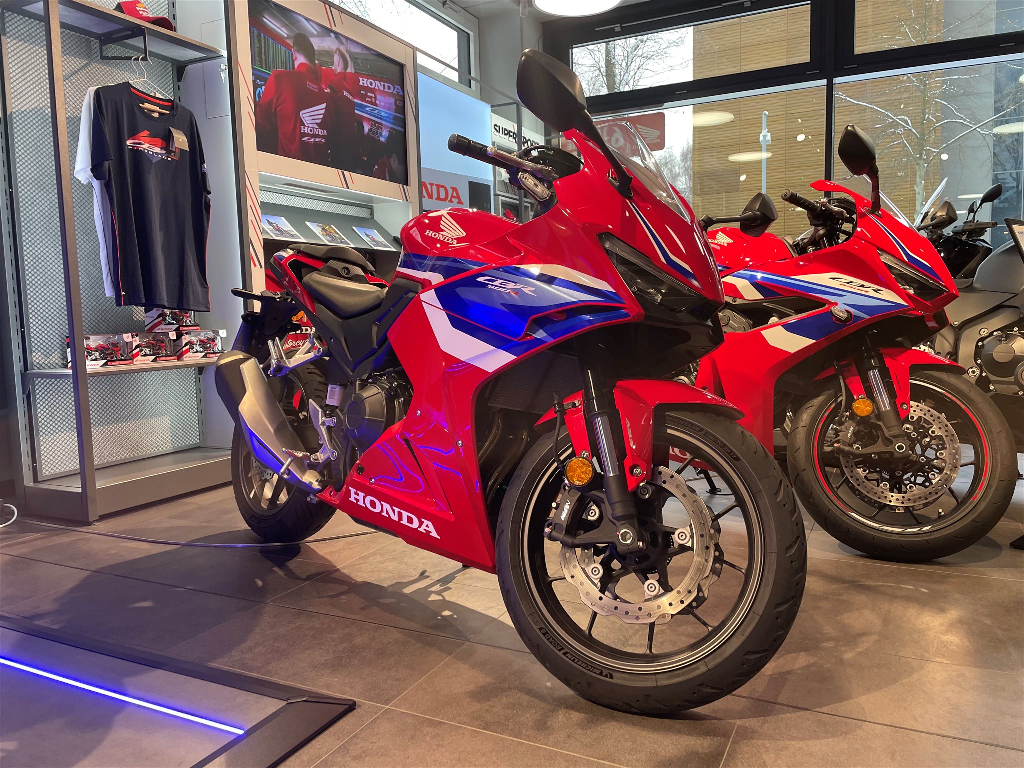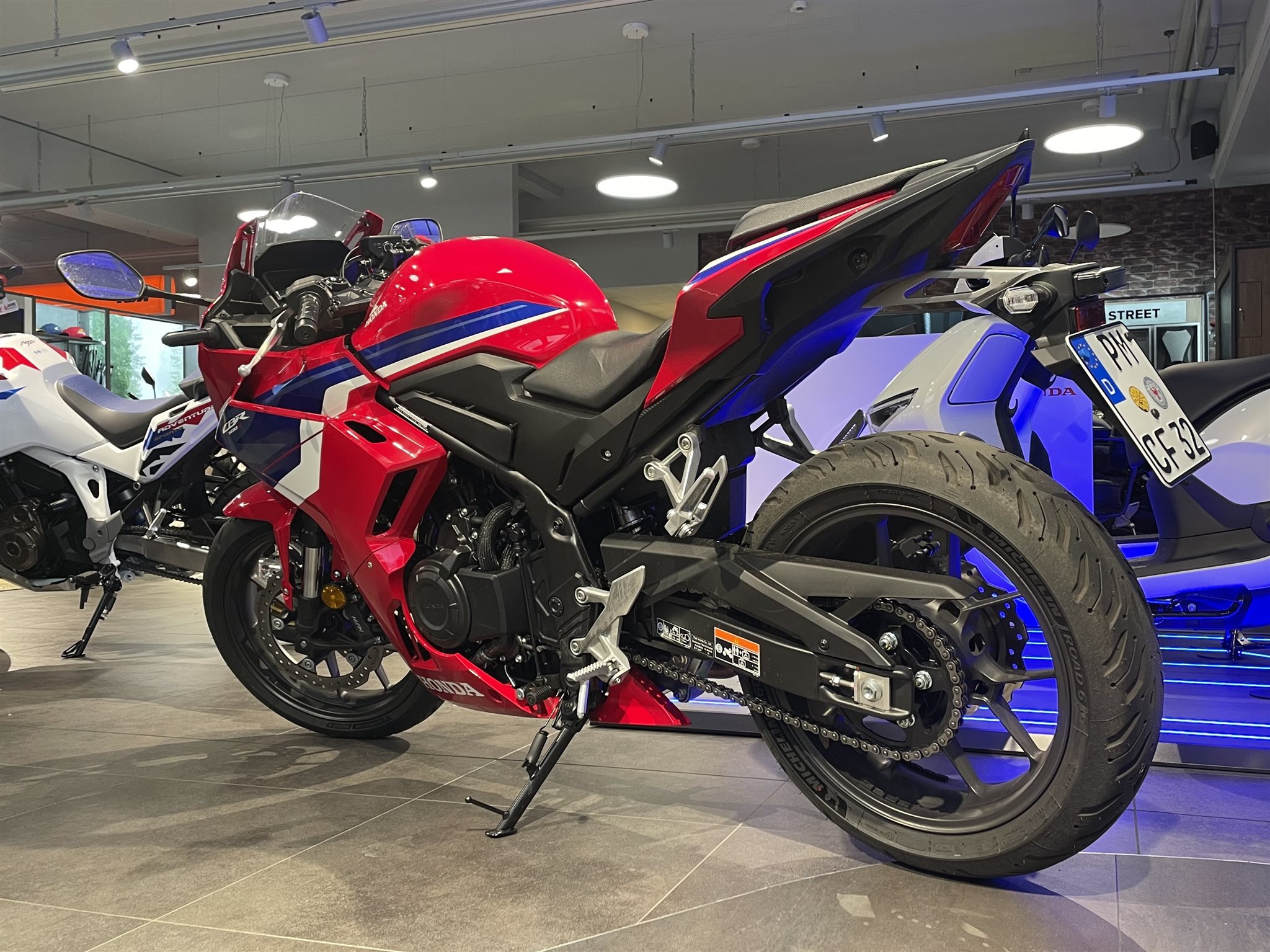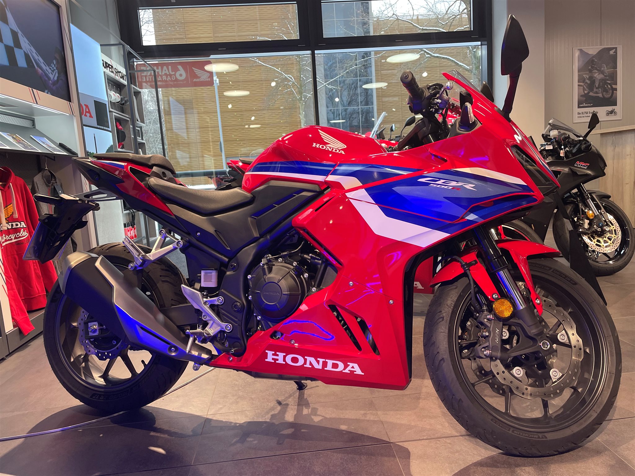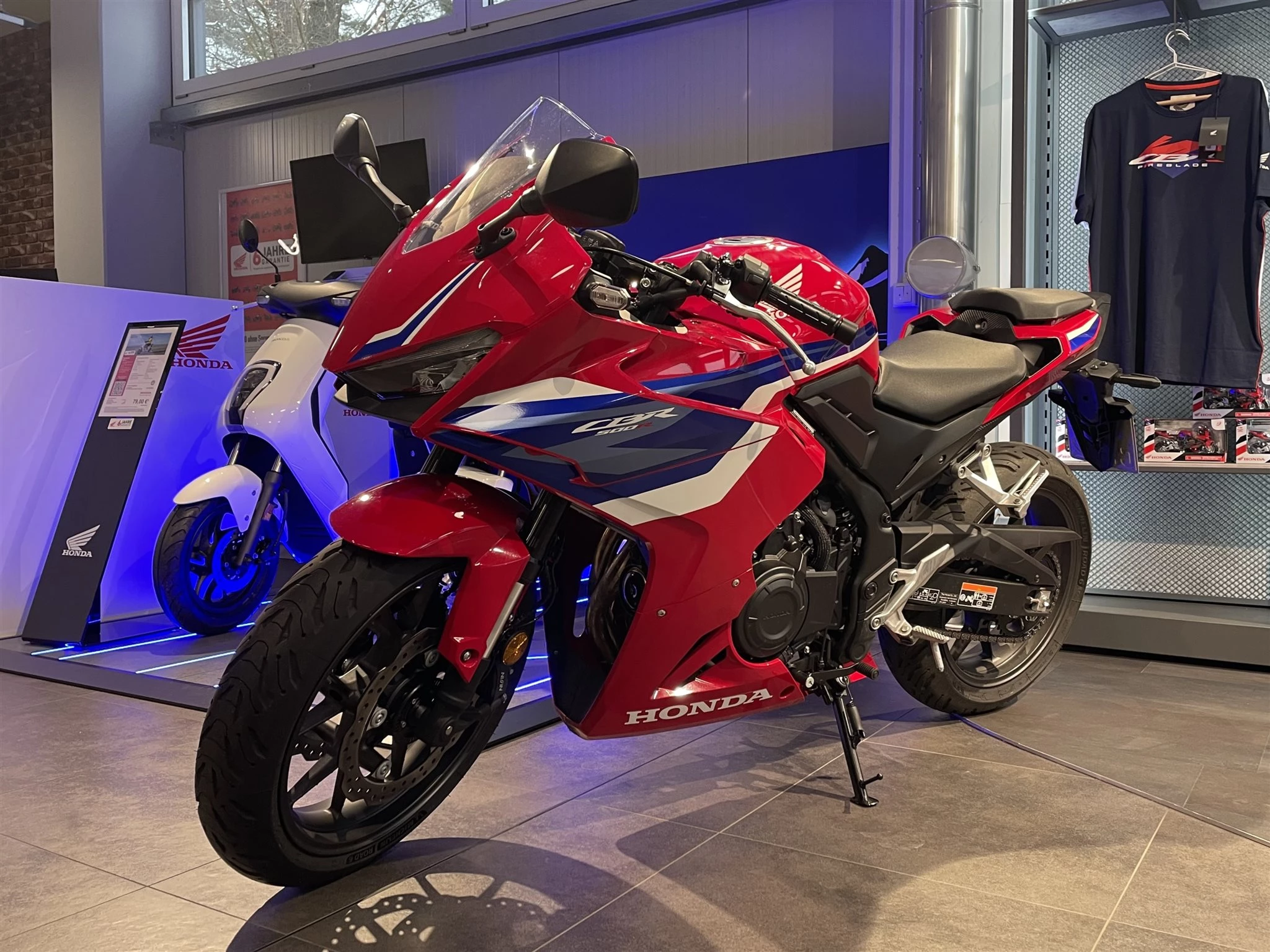 Honda CBR 500R Mod:2025 Farbe:Rot Demobike / Vorführer Erstzulassung: 18.06.2025 Laufleistung: 2295 km (Laufleistung kann noch abweichen) Neufahrzeuge auf Lager Was HRC an der Spitze erfährt, fließt direkt zurück. Und mit der CBR500R geht es los Fireblade-Stil, aerodynamische Winglets und ein starker Zweizylindermotor mit einer auf Beschleunigung getrimmten ECU. Die E-Clutch sorgt für sanftes, kupplungsfreies Schalten und mehr Leistung. Zum Chassis gehören eine Showa Upside-Down-Gabel und zwei radial montierte Bremssättel. Ein TFT-Display mit voller Konnektivität und HSTC-Griffsteuerung bringt Technik ins Spiel. Ob in der Stadt, auf der kleinen Landstraße oder auf der Rennstrecke dieses Motorrad macht einfach Spaß.