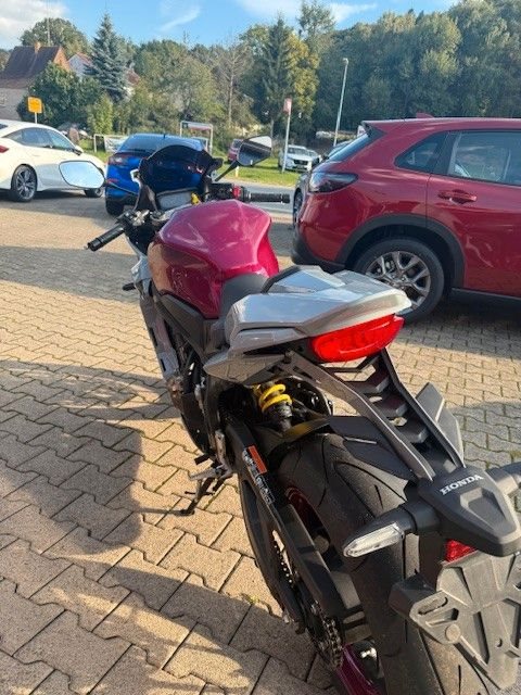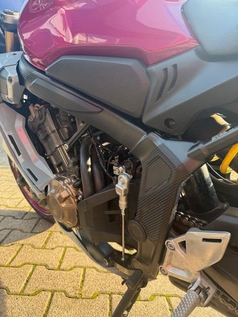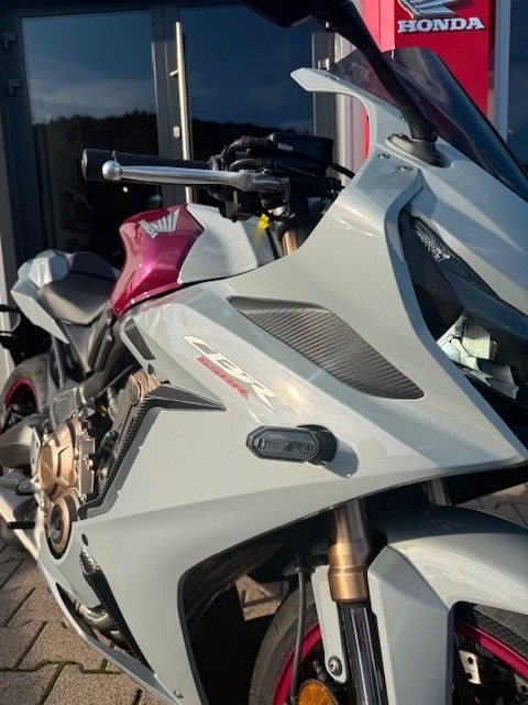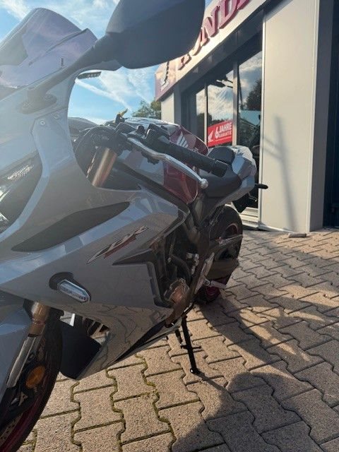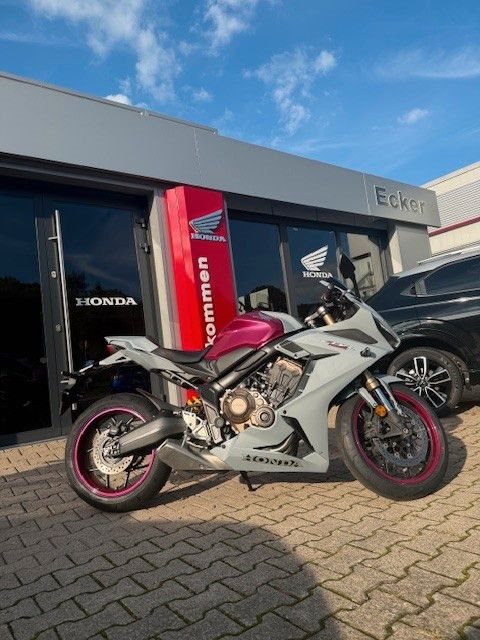 **Zum Verkauf steht. **Honda CBR650R Ecker Edition !!! -ABS -LED Scheinwerfer -Schaltautomat -TÜV/AU Neu !!! -Inspektion Neu !!! -Reifen vorne und hinten Neu !!! **Vier Gewinnt.** **Der DOHC-Reihenmotor mit vier Zylindern und 16 Ventilen leistet in der Spitze 70 kW/94 PS bei einer Drehzahl von bis zu 12.000 U/min. Das Drehmoment von 63 Nm sorgt für reichlich Beschleunigung bei der Kurvenausfahrt. Für Fahrer mit A2-Führerschein ist eine Drosselung auf 35 kW möglich, die sich nach dem Erwerb des A-Führerscheins aufheben lässt. Und da Leistung Kontrolle braucht, verhindert die Anti-Hopping-Kupplung das Blockieren des Hinterrads bei starkem Bremsen und Herunterschalten. **