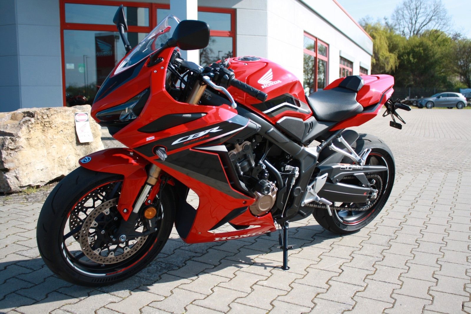 Sportlich und alltagstauglich - die Honda CBR 650R aus dem Modelljahr 2023 in der attraktiven Farbkombination Schwarz-Rot. Das Motorrad stammt aus erster Hand, wurde von uns als Neufahrzeug ausgeliefert und seither durchgehend in unserer Werkstatt scheckheftgepflegt. Es ist unfallfrei und befindet sich in einem absoluten Top-Zustand. Zur Ausstattung gehören ein kurzer Kennzeichenträger, ein Schaltautomat, eine originale Sozius-Sitzabdeckung sowie Sturzpads. Die originale Sitzbank für den Soziusbetrieb ist selbstverständlich vorhanden. Die Inspektion wurde frisch durchgeführt, und alle Verschleißteile befinden sich in gutem Zustand. Bei Bedarf kann die Motorleistung auf A2-taugliche 35 kW reduziert werden. Ein richtig schöner Sportler mit hoher Alltagstauglichkeit - ideal für Einsteiger und erfahrene Fahrer gleichermaßen. Willkommen bei Honda Perschall - Ihrem zuverlässigen Honda-Partner an der bezaubernden Mainschleife seit 1979! Entdecken Sie unsere ständig wechselnde Auswahl an gepflegten und werkstattgeprüften Gebrauchtmotorrädern. Bei uns ist eine Finanzierung möglich, und wir erstellen Ihnen gerne ein individuelles Angebot. Zudem nehmen wir gerne Ihr (japanisches) Gebrauchtmotorrad in Zahlung. Profitieren Sie auch von unserem Motorrad-Barankaufsservice sowie von einem bundesweiten Versand. Besuchen Sie uns online unter www.perschall.de oder folgen Sie uns auf Google, Facebook und Instagram (@motorradperschall), um mehr über uns zu erfahren. Unsere Öffnungszeiten im Sommer (März - September) sind von Montag bis Freitag von 9.00 bis 12.00 Uhr und von 13.00 bis 18.00 Uhr sowie Samstags von 9.00 bis 13.00 Uhr. Donnerstags bleibt unser Geschäft geschlossen. Im Winter (Oktober - Februar) begrüßen wir Sie von Montag bis Freitag von 9.00 bis 12.00 Uhr und von 13.00 bis 17.30 Uhr sowie Samstags von 10.00 bis 13.00 Uhr. Auch hier bleibt unser Geschäft donnerstags geschlossen. Wir freuen uns darauf, Sie persönlich zu beraten!