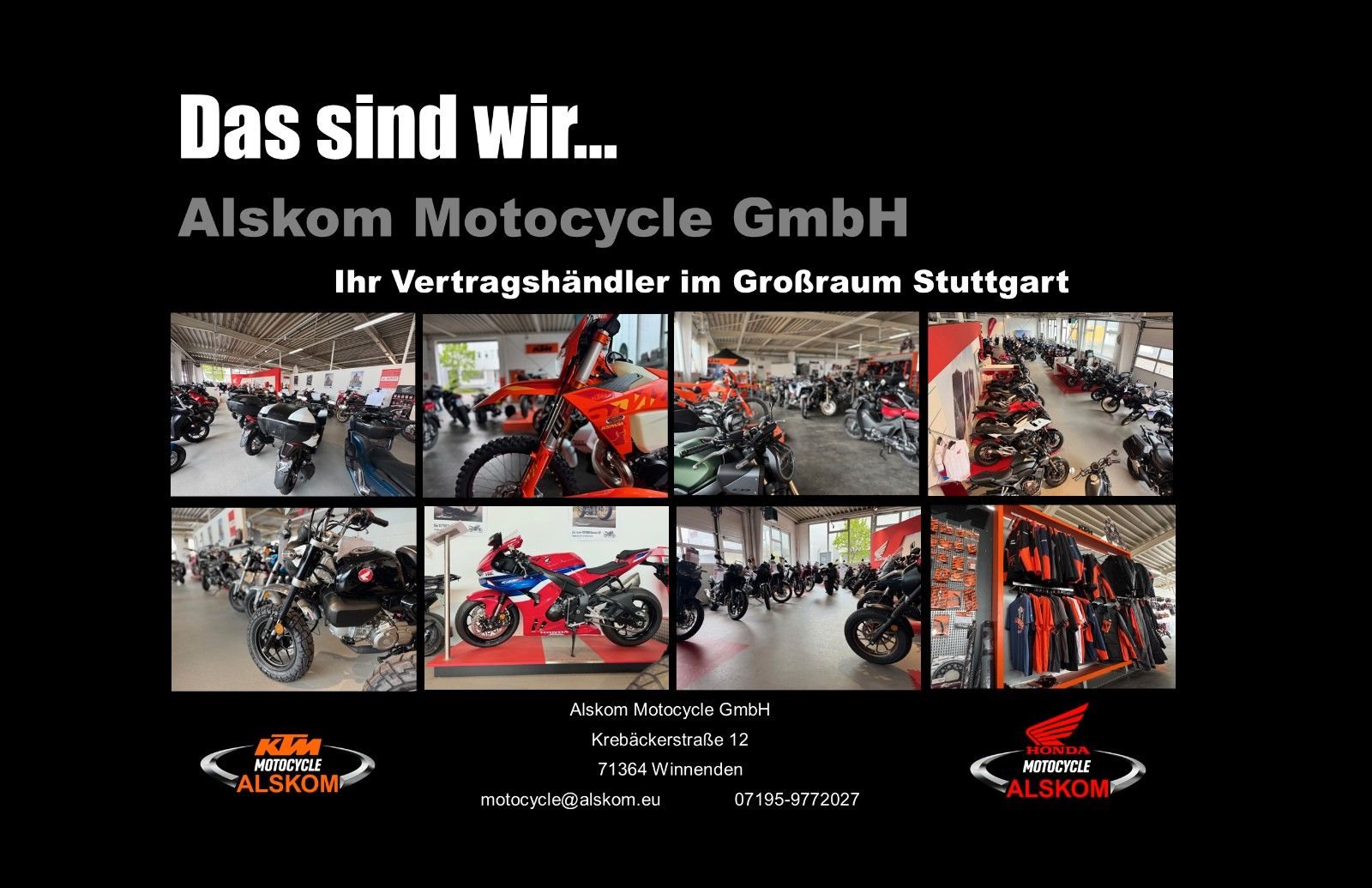 **Herzlich willkommen bei der Alskom Motocycle GmbH ihr KTM und HONDA Vertragshändler Dieser Aktionspreis ist befristet. Eine Abholung sollte vor unserem Betriebsurlaub erfolgen. **Sehr geplegter SUper Cup zu verkaufen. 1 Hand Sturz und Umfallfrei **Unsere Leistungen** **1. Leidenschaft**: Wir sind leidenschaftlich daran interessiert, hochwertige Motorräder herzustellen und unseren Kunden ein außergewöhnliches Fahrerlebnis zu bieten. **2. Qualität:** Wir streben nach höchster Qualität in Design, Produktion und Kundenservice, um unseren Kunden langlebige und zuverlässige Motorräder zu liefern. **3. Innovation:** Wir sind bestrebt, innovative Technologien und Designs in unsere Motorräder zu integrieren, um unseren Kunden stets fortschrittliche Produkte anzubieten. **4. Vertrauen:** Wir bauen auf Vertrauen und Integrität in unseren Geschäftsbeziehungen, sowohl intern als auch extern, um langfristige Partnerschaften aufzubauen. **5. Kundenzentrierung: **Wir stellen die Bedürfnisse und Wünsche unserer Kunden in den Mittelpunkt und bemühen uns, ihre Erwartungen zu übertreffen. **6. Teamarbeit:** Wir fördern eine Kultur der Zusammenarbeit und des Teamgeistes, um gemeinsam unsere Ziele zu erreichen und das Unternehmen voranzubringen. **7. Nachhaltigkeit:** Wir sind uns unserer Verantwortung für die Umwelt bewusst und bemühen uns, nachhaltige Praktiken in unserer Produktion und im Betrieb zu implementieren. **8. Exzellenz:** Wir streben nach Exzellenz in allem, was wir tun, sei es im Design, in der Produktion oder im Kundenservice, um unsere Position als führender Motorradhersteller zu festigen. **Diese Werte bilden das Fundament für eine starke Unternehmenskultur bei Alskom Motocycle GmbH und spiegeln die Leidenschaft für Motorräder und das Streben nach Qualität und Kundenzufriedenheit wider.** KTM "READY TO RACE" HONDA "THE POWER OF DREAMS" **Alskom Motocycle GmbH** Krebäckerstr. 12 71364 Winnenden Tel. Verkauf 07195-9772027 Tel. Werkstatt: 07195-9772281 Web: KTM-ALSKOM.de Web: HONDA-ALSKOM.de Ihr Ansprechpartner **Stefan Schreiber** Verkaufsleiter für KTM und HONDA **Exklusive Online Werkstatttermine für unsere Stammkunden.** **https://www.etermin.net/alskommotocycle**