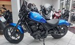 Honda CMX1100 Rebel, Gebrauchtfahrzeug, Modell 2024, Blau Metallic, unfallfrei, Top Zustand, Puig Windschild, Gepäckträger statt Soziussitz (Soziussitz ist dabei), Schaltgetriebe, Euro 5, Verbrauch Honda Messwerte gem. WMTC 4,9 l/100km, CO2 Ausstoss 114 g/km, Euro 5