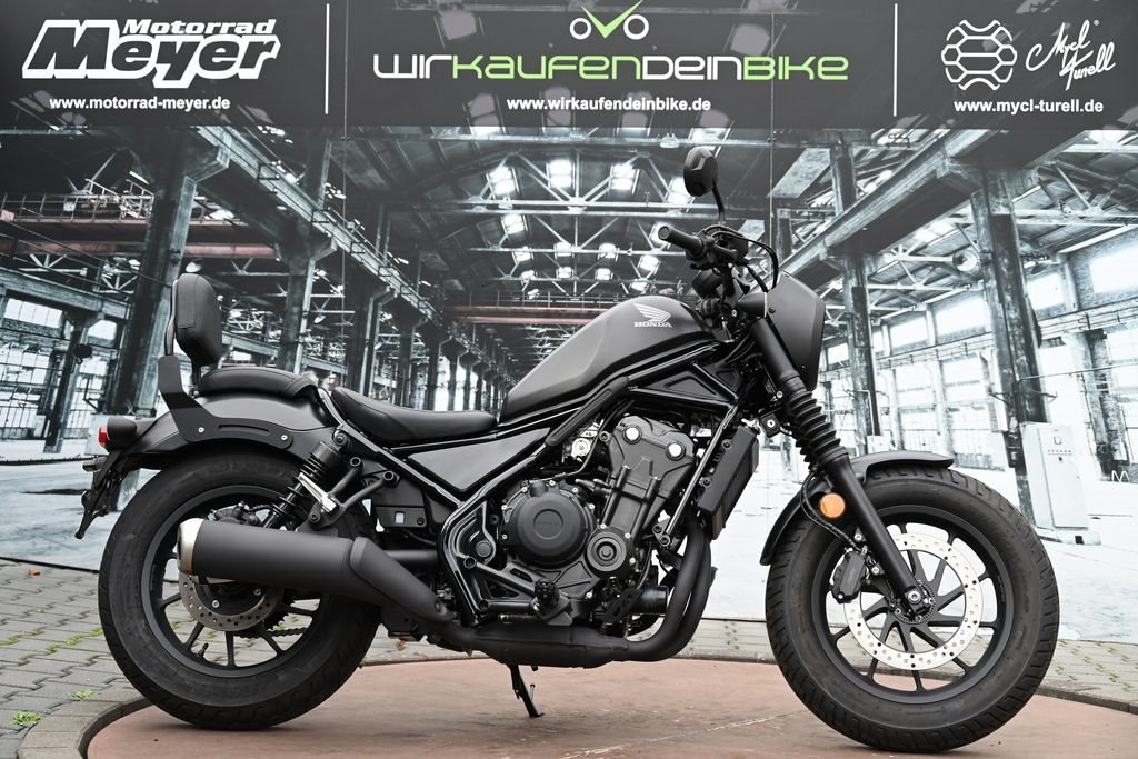 **Willkommen bei Motorrad Meyer. Euer Familienbetrieb seit über 60 Jahren!** **Allgemein:** Interne Nummer für Anfragen: **30350** Zum Verkauf steht eine **Honda CMX 500 Rebel Special Edition** , Erstzulassung: 07.04.22 , aus 1. Hand. **Zustand:** Das Motorrad befindet sich in einem sehr gepflegten und sehr guten Zustand. **Lieferumfang:** * Bedienungsanleitung * Serviceheft **Zubehör/Umbauten:** * Sissybar **Eintausch:** Unter www.wirkaufendeinbike.de bewerten wir dein Bike gerne kostenlos und unverbindlich. **Finanzen:** Finanzierungen ab 5,99% und einer Laufzeit von bis zu 120 Monaten auch ohne Anzahlung möglich. **Garantie:** Bei Neufahrzeugen, Tageszulassungen und Vorführfahrzeugen zwei Jahre Herstellergarantie ab Übergabe oder Erstzulassung (je nachdem was früher Eintritt) -- Garantieerweiterung bis zu 5 Jahre möglich. Bei Gebrauchtfahrzeugen 12 Monate Sachmängelhaftung ab Übergabe. Erweiterte Garantie auf Anfrage möglich. Export: We speak english. Wir sind Yamaha Vertragshändler und seit über 60 Jahren - mittlerweile in 3. Generation - in und um Aachen die Anlaufstelle für neue und gebrauchte Motorräder und Roller. Wir haben ständig über 300 Fahrzeuge auf Lager. **Unsere Öffnungszeiten:** **Verkauf Hauptfiliale** Mo.-Fr.: 09:00 Uhr bis 17:00 Uhr Sa.: 09:00 Uhr bis 14:00 Uhr **Vom 1.November bis zum 28. Februar ist montags saisonbedingt geschlossen.** **Werkstatt:** Mo.-Fr.: 07:00 Uhr bis 16:00 Uhr, **Vom 1.November bis zum 28. Februar ist montags saisonbedingt geschlossen.** **Websites:** * www.motorrad-meyer.de * www.wirkaufendeinbike.de * www.mycl-turell.de * www.dealer2dealer.de Diese Angaben sind unverbindlich. Der Verkäufer haftet nicht für Eingabe- oder Datenübermittlungsfehler. Irrtümer, Änderungen oder Zwischenverkauf vorbehalten.