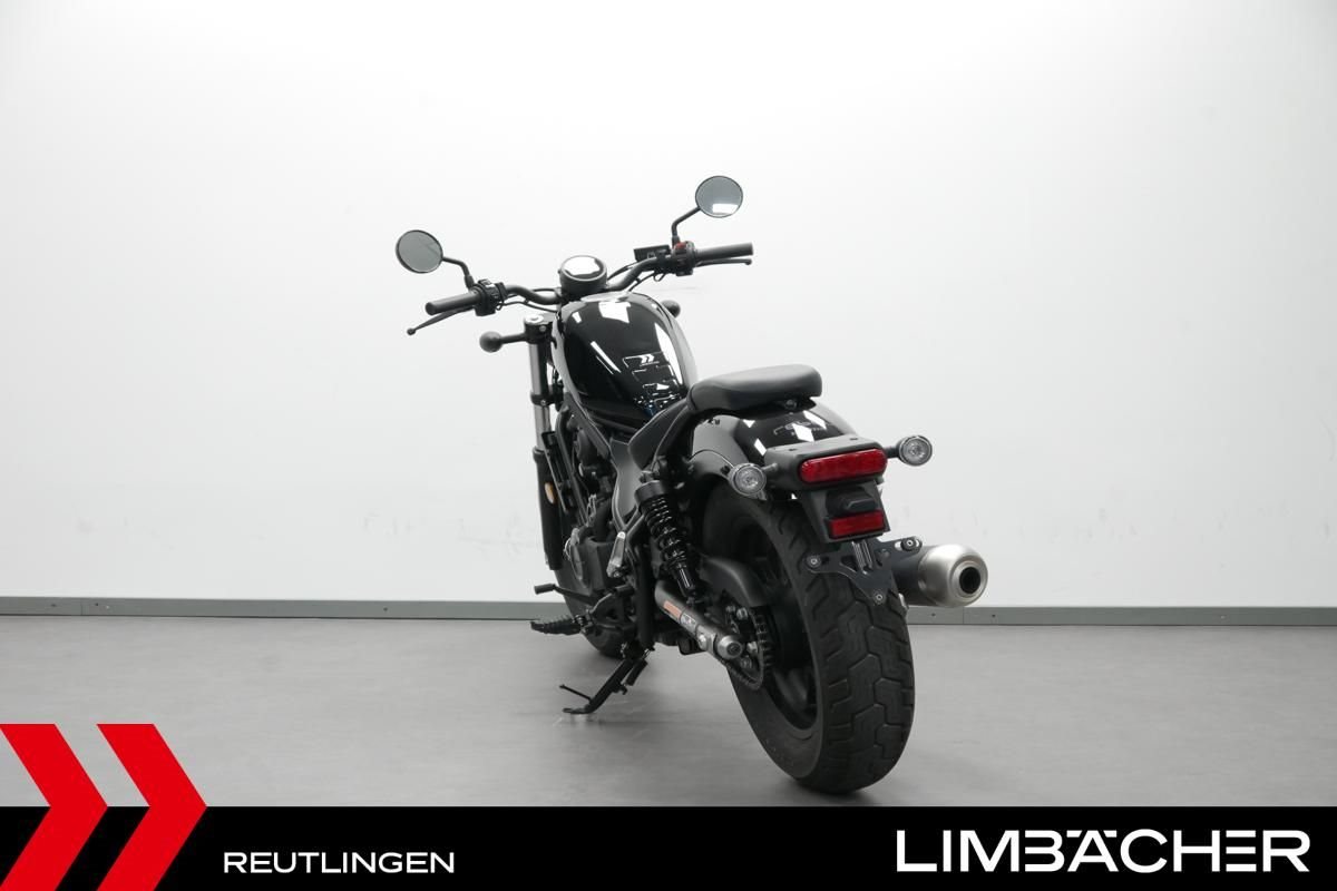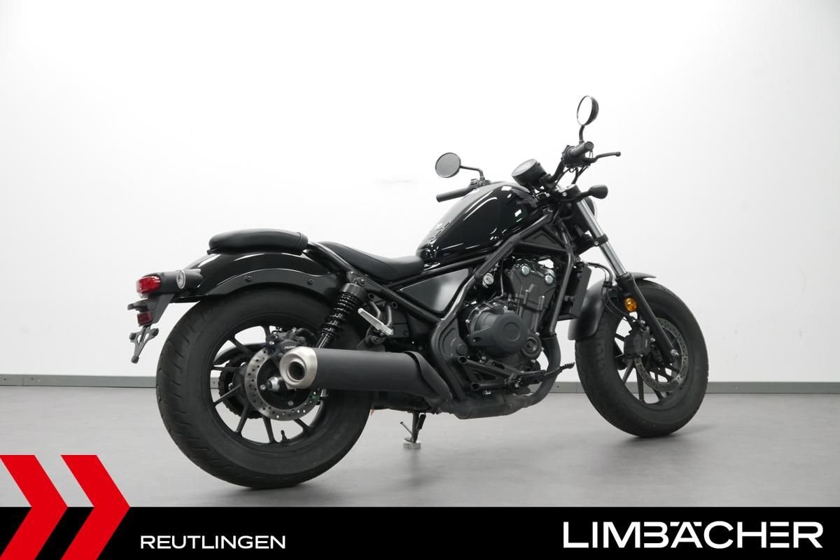 ** Das Fahrzeug:** Honda Reutlingen bietet hier eine **Honda Rebel 500 ** mit einer neuen 40-Punkte-Durchsicht und HU/AUK gültig bis Juli 2027. ---- **Fahrzeugzustand & Beschreibung:** Das Fahrzeug ist sehr gepflegt. Die Honda ist ein leichtes und zugängliches Bobber-Style-Motorrad mit einem 471-ccm-Zweizylinder-Motor, der für seine sanfte Leistungsentfaltung bekannt ist. Zu den technischen Merkmalen gehören eine niedrige Sitzhöhe von 690 mm, ein Stahlrahmen, eine Telegabel, LED-Beleuchtung rundum und ein negatives LCD-Display mit Ganganzeige.. ---- **Verschleißteile: ** **Bremsbeläge:** Vorne: 80% Hinten: 70% **Reifen:** Vorne: 80% Hinten: 80% ---- ** Ausstattung & Extras:** * ABS ---- **Ansprechpartner:** Julian Adolphi 07121 95 93 22 julian.adolphi@limbaecher.de **WERKSTATT-WINTERAKTION:** Vom 3.11.2025 bis 28.2.2026 bieten wir einen bequemen und kostenlosen Hol- und Bringservice* im Umkreis von 50 km an (Größere Entfernungen auf Anfrage) * der Rechnungsbetrag muss einen Werkstattlohn von mindestens 250,- € beinhalten. **GARANTIERT SORGLOS CRUISEN:** **Jetzt neu:** unsere Lebenslange Garantie kann jetzt für Fahrzeuge **schon ab Baujahr 2012 und bis 25.000 km** abgeschlossen werden! Sprecht für eine umfassende Beratung einfach unser Verkaufsteam an. **DANKE!** LIMBÄCHER holt den Titel als **Motorradhändler des Jahrzehnts** - Danke an all unsere Kunden für das Vertrauen! **Ihr kompetenter Partner für den Großraum Reutlingen seit 40 Jahren** Vertragshändler für KTM, Honda, Kawasaki, Suzuki, MV Agusta, Aprilia und Vespa. Ständig über 300 Motorräder in der Ausstellung. **Weitere Standorte:** **- Filderstadt:** Vertragshändler für Ducati, Honda, Kawasaki, Yamaha, Suzuki, Aprilia, Moto Guzzi, Husqvarna, GasGas und MV Agusta **- Rottweil:** Vertragshändler für Triumph, Kawasaki, Aprilia, Piaggio und Vespa **- Schongau:** Vertragshändler für Triumph, Kawasaki, Yamaha und Honda * Barankauf und Inzahlungnahme von Motorrädern aller Marken! * bei Gebrauchtfahrzeugen 14 Tage kostenloses Umtauschrecht ab Anmeldung auf den Käufer * mit 40 Punkte Technik-Check in unserer modernen Meisterwerkstatt * Lieferung frei Haus bundesweit ab 99.- Euro * Finanzierung mit und ohne Anzahlung möglich. * Barankauf aller Marken auch Exoten - sofortige und unkomplizierte Abwicklung * Rückkaufgarantie für alle bei uns gekauften Motorräder * Irrtümer und Zwischenverkauf vorbehalten