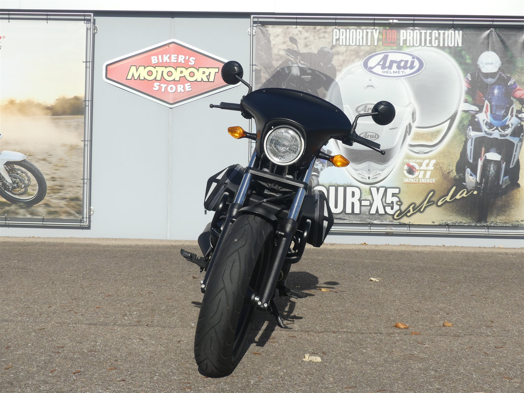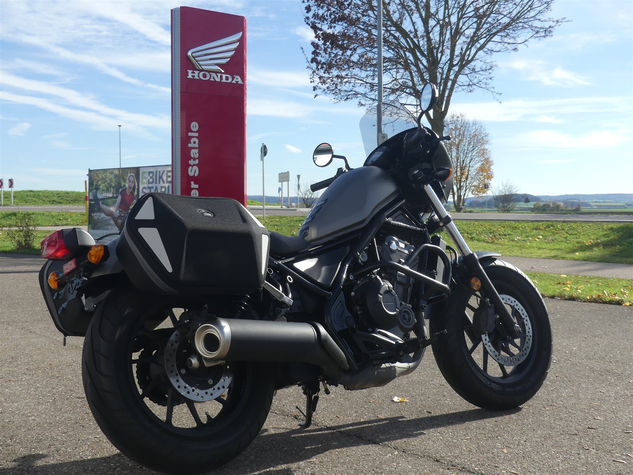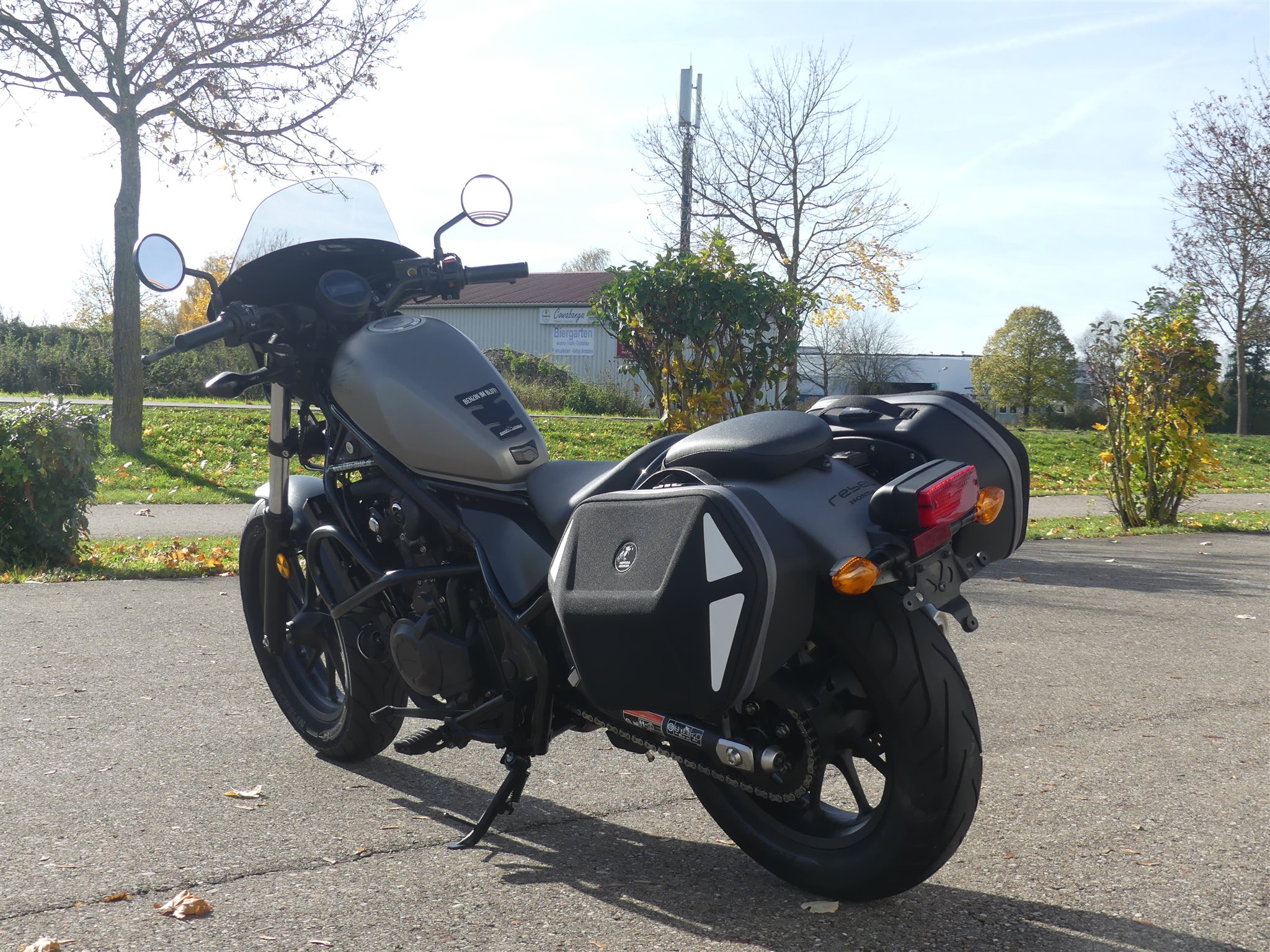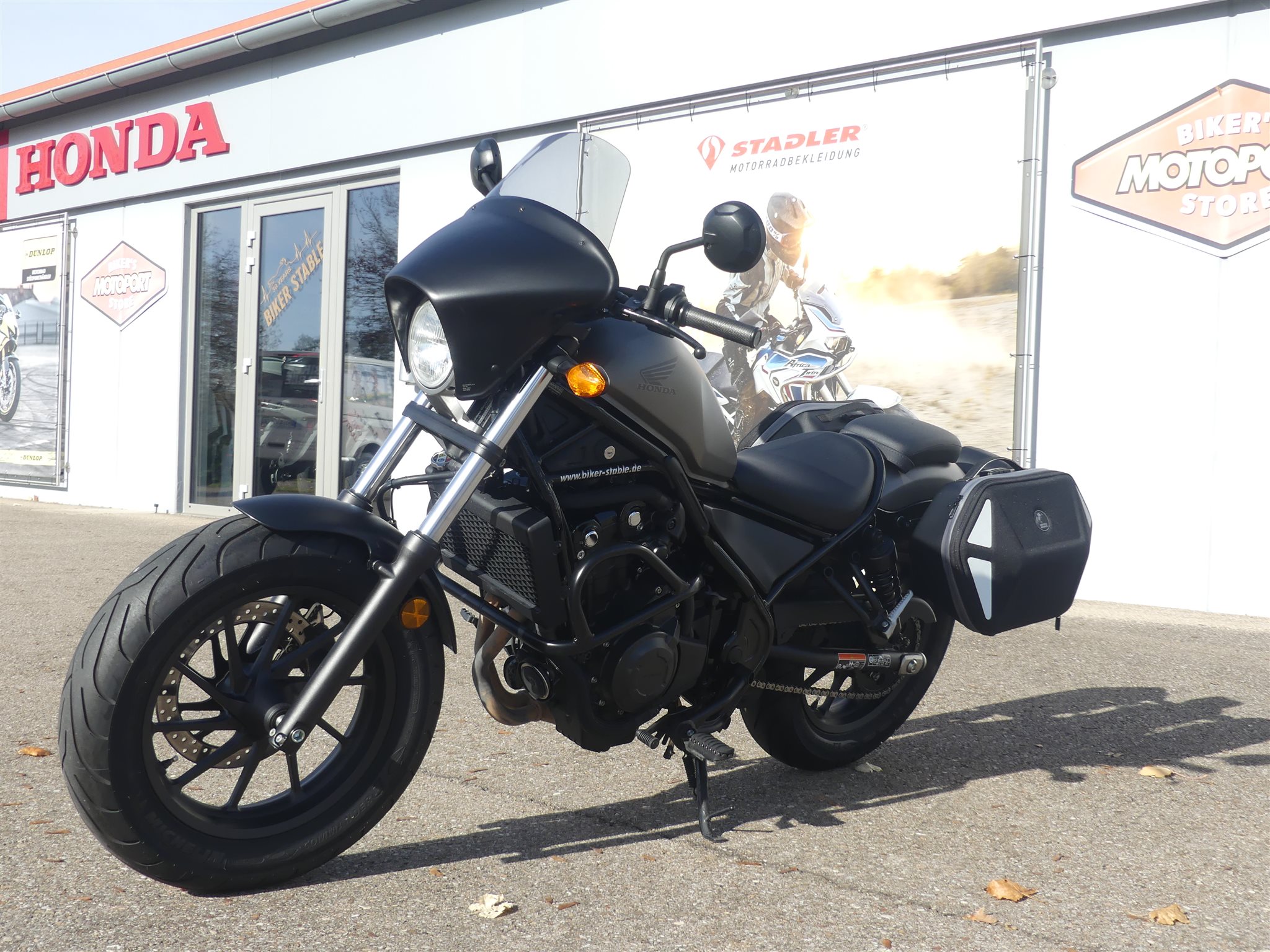 **Sehr schöne Honda Rebel 500 aus 2. Hand, vom Honda & Suzuki Vertragshändler** \\ * 2.Hand \\ * Unfallfrei \\ * Umfallfrei \\ * Top-Zustand \\ * Kundendienst neu \\ * Reifen neuwertig \\ * Scheckheft gepflegt \\ * Hepco Royster Seitentaschen \\ * Lampenverkleidung \\ * USB-Anschluss \\ * Motorschutzbügel **Haben wir Dein Interesse geweckt, hast Du Fragen zu diesem schönen Motorrad, dann ruf uns an unter Tel.: +49 (0)9081 278930 an oder sende eine Mail, gerne würden wir Dich bei uns im Biker-Stable zu einer unverbindlichen Probefahrt begrüßen.** \\ **Wenn Du Dich danach für das Motorrad begeistert hast und auch DAS BENZIN IM BLUT spürst bieten wir Dir gerne über unsere langjährigen Finanzierungspartner eine für Dich passende Finanzierung mit oder ohne Anzahlung an, verschiedene Laufzeiten möglich.** \\ **Wir sind HONDA und SUZUKI Vertragshändler und bieten Dir über 30 Jahre Erfahrung sowie unseren rundum sorglos Service:** \\ * Die Inzahlungnahme deines alten Bikes (auch die Ablöse einer vorhandenen Finanzierung). \\ * Du willst Dein Bike direkt vor die Haustür geliefert bekommen, kein Problem. Wir bieten Dir den bundesweiten Motorradtransport (ohne Inseln) ab 250 EUR an. \\ * Anschlussgarantie / Gebrauchtgarantie \\ * Anbau von Zubehör sämtlicher Hersteller, Du erhältst vorab ein Preisangebot von uns \\ * Alle anfallenden Servicearbeiten in unserer Meisterwerkstatt \\ * Große Auswahl an Helmen und Markenbekleidung von: HONDA, SUZUKI, Arai, Schuberth, HJC, Stadler, Dane, Difi, Held, Büse, Daytona uvm. \\ * Anbau- Ersatzteile und Zubehör von HONDA, SUZUKI, Givi, SW Motech, Akrapovic, SC-Project, CLS Chain Lube Kettenschmiersysteme uvm. \\ **Hast du Benzin im Blut?** **Dann besuche doch unsere Homepage, oder werde Fan auf FACEBOOK!** \\ Die Angaben sind unverbindliche Beschreibungen der Fahrzeuge. Sie stellen keine zugesicherten Eigenschaften dar. Der Verkäufer haftet nicht für Tipp- u. Datenübermittlungsfehler / Änderungen / Eingabefehler. Irrtümer u. Zwischenverkauf vorbehalten Bitte kontaktiere uns telefonisch, um sicher zu stellen, dass gewünschte Fahrzeug noch zur Verfügung steht.