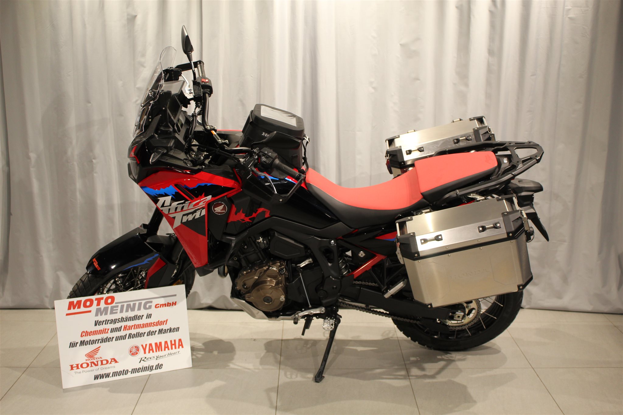**Honda CRF1100A3 Electronic Suspension:** inkl. Zubehör im Wert von 2234,00€: - Alukoffer-Set mit Innenpacktaschen - Kofferträgersystem - Windabweiser - Deflektor - Tankrucksack - Handprotektoren - Rally-Fußrasten - Komfort-Soziusfußrasten - Felgenaufkleber - Vorführfahrzeug - Modell 2025 - 3.224 km - umfall- und unfallfei - HU bis 03/2027 - Garantie bis 26.02.2027 - Probefahrt nach Vereinbarung - Finanzierung möglich Die Africa Twin ist ab sofort in einer neuen Variante erhältlich. Die Leistung des gewohnt agilen Adventure-Bikes setzt neue Maßstäbe und zeichnet sich besonders durch das zusätzliche Drehmoment im unteren Drehzahlbereich aus. Die neue verstellbare Verkleidungsscheibe macht die Tage auf der Straße wesentlich komfortabler. Die schlauchlosen Reifen lassen sich leicht reparieren. Zusätzlich eröffnet die als Sonderausstattung erhältliche elektronisch einstellbare Showa-EERA-Aufhängung der Africa Twin ES eine ganz neue Dimension des Abenteuers. Viele weitere Modelle findet ihr unter: www.moto-meinig.de Euer Honda- und Yamaha-Vertragshändler in Chemnitz Leipziger Straße 136 09114 Chemnitz Tel.: +49 371 3311142 WhatsApp: 01520 7914627 Öffnungszeiten: Montag bis Freitag 9.30 - 18.00 Uhr Samstag 9.30 - 13.00 Uhr (von Oktober-März bis 12.00 Uhr) Wir freuen uns auf euren Besuch! Irrtum und Zwischenverkauf sind vorbehalten. 0786