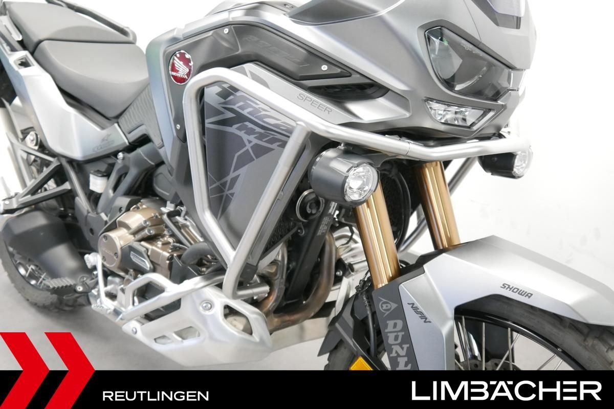 ** Das Fahrzeug:** Honda Reutlingen bietet hier eine **Honda CRF 1100 L Africa Twin - Adventure Sports ES DCT**. ---- **Fahrzeugzustand & Beschreibung:** Das Fahrzeug ist sehr gepflegt. Der Drang nach Freiheit definiert unsere neue CRF1100L Africa Twin Adventure Sports ES DCT. Die Basis ist die Africa Twin, jedoch ist diese Variante speziell auf weitere Strecken und hohen Komfort ausgelegt. Das EERA-Fahrwerk stimmt die Dämpfungskraft anhand des gewählten Fahrmodus und den von den Wegsensoren und der IMU gelieferten Daten ab. ---- **Verschleißteile: ** **Bremsbeläge:** Vorne: 60% Hinten: 60% **Reifen:** Vorne: 50% Hinten: 50% ---- ** Ausstattung & Extras:** * Orig. Sturzbügel oben und unten *Zusatzscehinwerfer *Tankpads * Heizgriffe ---- **Ansprechpartner:** Julian Adolphi 07121 95 93 22 julian.adolphi@limbaecher.de **GARANTIERT SORGLOS CRUISEN:** **Jetzt neu:** unsere Lebenslange Garantie kann jetzt für Fahrzeuge **schon ab Baujahr 2012 und bis 25.000 km** abgeschlossen werden! Sprecht für eine umfassende Beratung einfach unser Verkaufsteam an. **DANKE!** LIMBÄCHER holt den Titel als **Motorradhändler des Jahrzehnts** - Danke an all unsere Kunden für das Vertrauen! **Ihr kompetenter Partner für den Großraum Reutlingen seit 40 Jahren** Vertragshändler für KTM, Honda, Kawasaki, Suzuki, MV Agusta, Aprilia und Vespa. Ständig über 300 Motorräder in der Ausstellung. **Weitere Standorte:** **- Filderstadt:** Vertragshändler für Ducati, Honda, Kawasaki, Yamaha, Suzuki, Aprilia, Moto Guzzi, Husqvarna, GasGas und MV Agusta **- Rottweil:** Vertragshändler für Triumph, Kawasaki, Aprilia, Piaggio und Vespa **- Schongau:** Vertragshändler für Triumph, Kawasaki, Yamaha und Honda * Barankauf und Inzahlungnahme von Motorrädern aller Marken! * bei Gebrauchtfahrzeugen 14 Tage kostenloses Umtauschrecht ab Anmeldung auf den Käufer * mit 40 Punkte Technik-Check in unserer modernen Meisterwerkstatt * Lieferung frei Haus bundesweit ab 99.- Euro * Finanzierung mit und ohne Anzahlung möglich. * Barankauf aller Marken auch Exoten - sofortige und unkomplizierte Abwicklung * Rückkaufgarantie für alle bei uns gekauften Motorräder * Irrtümer und Zwischenverkauf vorbehalten