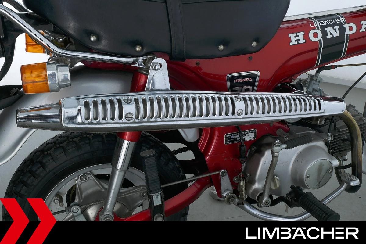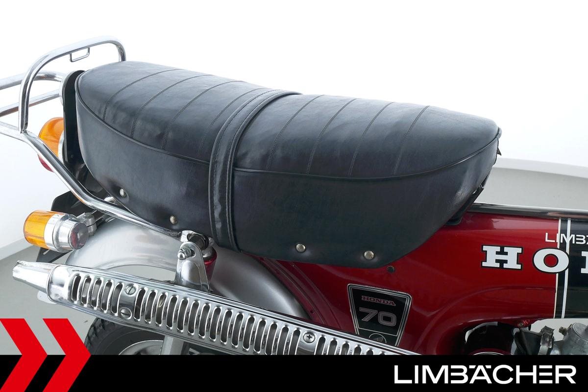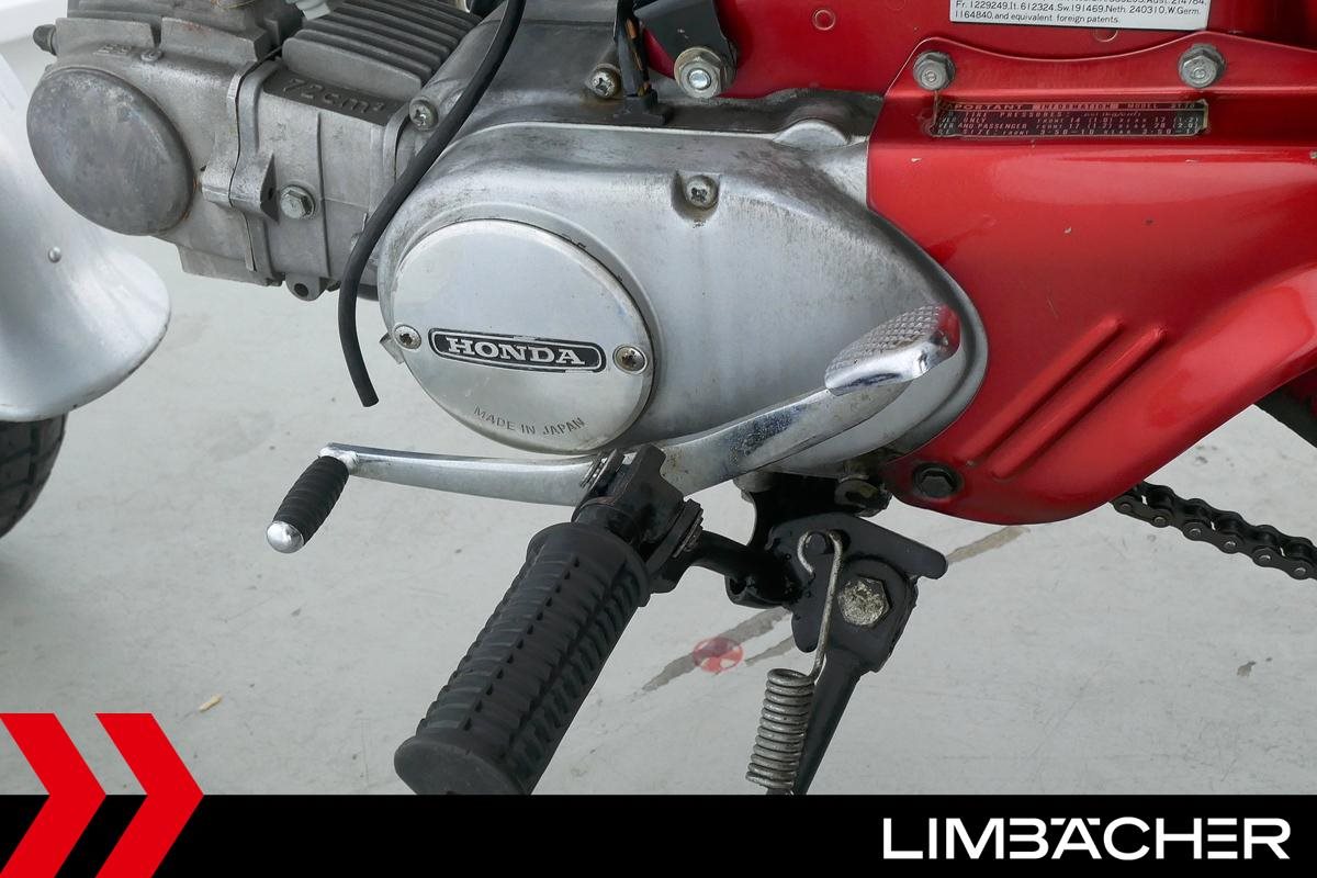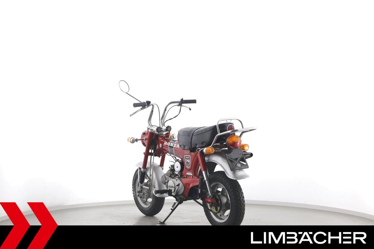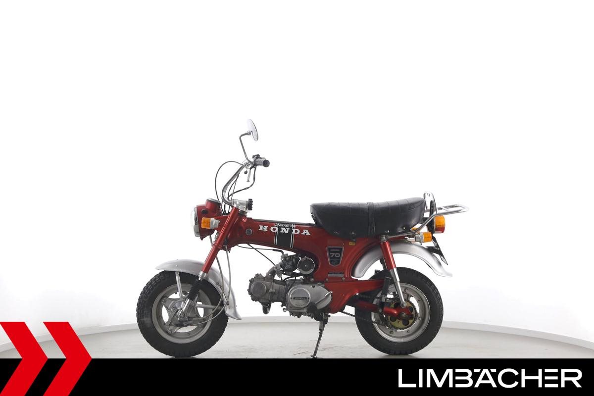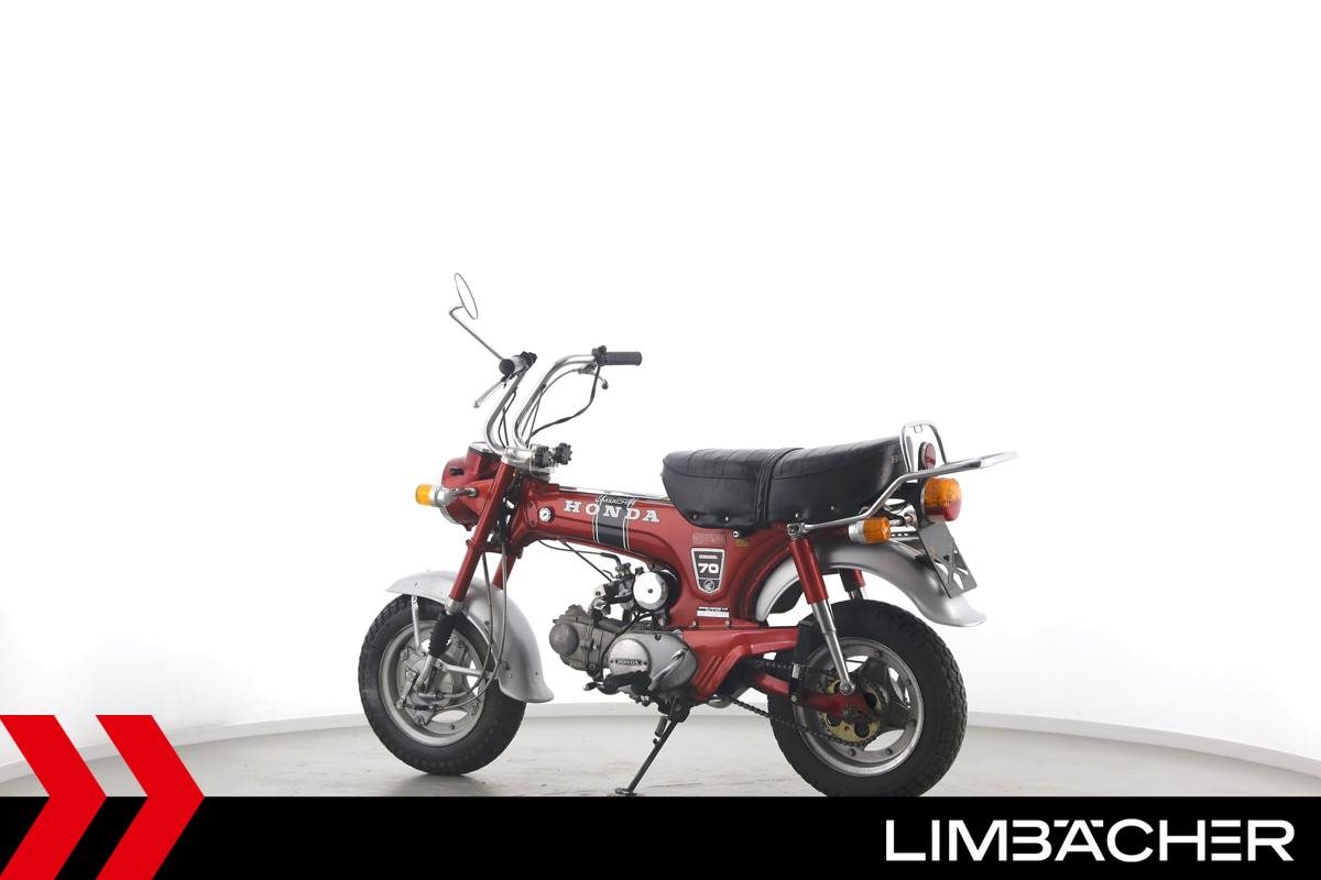 ** Das Fahrzeug:** Honda Stuttgart bietet hier eine **Honda DAX ST70**. ---- **Fahrzeugzustand & Beschreibung:** Eine Honda DAX ST70 in gepflegtem Zustand mit Originalausstattung. Dieses Oldtimerfahrzeug wird als Sammlerobjekt im derzeitigen Zustand ohne Werkstattdurchsicht bzw. Gewährleistung verkauft. Eine technische Betreuung nach dem Kauf ist ausgeschlossen. Altersbedingt ist mit Einschränkungen bei Zuverlässigkeit, Fahreigenschaften und Ersatzteilversorgung zu rechnen. ---- **Verschleißteile: ** **Bremsbeläge:** Vorne: 75% Hinten: 75% **Reifen:** Vorne: 60% Hinten: 60% ---- ** Ausstattung & Extras:** * Originalausstattung ---- **Ansprechpartner:** Manuel Forschner 0711 93964378 homepage-limbaecher-honda@limbaecher.dealerdesk.de **GARANTIERT SORGLOS CRUISEN:** **Jetzt neu:** unsere Lebenslange Garantie kann jetzt für Fahrzeuge **schon ab Baujahr 2012 und bis 25.000 km** abgeschlossen werden! Sprich für eine umfassende Beratung einfach unser Verkaufsteam an. **DANKE!** LIMBÄCHER holt den Titel als **Motorradhändler des Jahrzehnts** - Danke an all unsere Kunden für das Vertrauen! **Limbächer und Limbächer - Deutschlands größte Motorradwelt!** Ihr kompetenter Partner am Stuttgarter Flughafen seit 1992. Vertragshändler für Aprilia, Ducati, GasGas, Honda, Husqvarna, Kawasaki, Moto Guzzi, MV Agusta, Piaggio, Stark, Suzuki, Vespa, Yamaha über **2000 Motorräder in der Ausstellung auf über 20 000 m** **Weitere Standorte:** **- Reutlingen:** Vertragshändler für Aprilia, Honda, Kawasaki, KTM, Moto Guzzi, MV Agusta, Piaggio, Suzuki, Vespa, Yamaha **- Rottweil:** Vertragshändler für Aprilia, Honda, Kawasaki, Moto Guzzi, Piaggio, Triumph, Vespa **- Schongau:** Vertragshändler für Honda, Kawasaki, Stark, Triumph, Yamaha * Ihr kompetenter Partner für Oldtimer- und Youngtimer-Motorräder - integriert in eine der größten Motorradausstellung Europas bieten wir Ihnen eine hervorragende Plattform zur Vermarktung Ihres Klassikers - entweder auf Kommissionsbasis oder wir kaufen auch Fahrzeuge im reinen Barankauf an - sprechen Sie uns an! * Ankauf von kompletten Sammlungen! * Lieferung frei Haus bundesweit ab 99.? Euro * Ausstellung und Bistro täglich (auch Sonntags) bis 18.00 Uhr geöffnet * Finanzierung mit und ohne Anzahlung möglich. * Barankauf aller Marken auch Exoten ? sofortige und unkomplizierte Abwicklung * Rückkaufgarantie für alle bei uns gekauften Motorräder * Meisterwerkstatt: 8 KFZ-Meister und 12 Mechaniker stehen Ihnen mit Rat und Tat mit modernsten Diagnosegeräten zur Seite * Große Auswahl an Motorradbekleidung auf über 400 m * Irrtümer und Zwischenverkauf vorbehalten