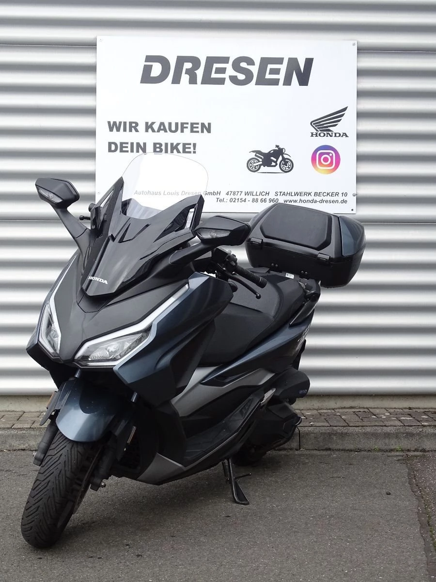 **Willkommen bei Honda Dresen in Willich **Als erfahrener Honda Motorrad Vertragspartner bieten wir Ihnen in Willich auf** über 800 m Ausstellungsfläche **eine große Auswahl aktueller Honda Modelle**. **Mit** über 900 verkauften Motorrädern pro Jahr **stehen wir für Kompetenz, Erfahrung und Leidenschaft rund um das Thema Zweirad. ** Ihre Ansprechpartner: **Adrian Dünnweller - 02154 / 8866910 Jannis Weidemann - 02154 / 8866913 Sven Roßkamp - 02154 / 8866960----**NEUFAHRZEUGE**: Auf Wunsch beraten wir Sie zu weiteren sofort bzw. kurzfristig verfügbaren Neufahrzeugen (Farben/Ausstattungen) bei uns im Haus. ** KONTAKT: **Gerne erstellen wir Ihnen Ihr persönliches Angebot - Tel. 02154 88 669 -0** WEBSITE: **Alle Angebote finden Sie unter www.honda-dresen.de----**Honda NSS 350 Forza ABS Ausstattung & Zubehör:*** Topcase ** Zustand:*** Technisch einwandfrei und gepflegt * Optisch in gutem Zustand ** Service & Lieferung:*** Übergabeinspektion vor der Auslieferung * Bundesweiter Versand per Motorradspedition - gerne informieren wir Sie über die aktuellen Konditionen ** Finanzierung & Inzahlungnahme:*** Flexible Finanzierung bis zu 84 Monate, auch ohne Anzahlung * Gerne erstellen wir Ihnen ein individuelles Angebot ** Alle Angaben ohne Gewähr. Änderungen, Irrtum und Zwischenverkauf vorbehalten.**