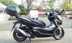 Forza 350 Der Forza 350 ist ein echter Sport-GT-Roller mit kraftvoller Motorleistung, HSTC für sicheres Fahren und exzellenter Kraftstoffeffizienz und das alles in einem schlanken Design mit großzügigem Stauraum unter dem Sitz. Mit dem 5-Zoll TFT-Display und der Honda RoadSync-Integration bleibst du den ganzen Tag über in Verbindung und hast während der Fahrt nahtlosen Zugang zu Anrufen, Musik und Navigation. Verkleidung und Scheinwerfer weisen den Weg Der Forza 350 setzt hohe Designmaßstäbe und ist ein flinkes Gesamtkunstwerk, das mit ausgezeichneter Aerodynamik und atemberaubendem Aussehen überzeugt. Die neu gestaltete Frontverkleidung, die LED-Scheinwerfer und das Rücklicht nach dem Vorbild des Topmodells Forza 750 ergeben ein elegantes Gesamtbild und leiten den Fahrtwind so über die Maschine, dass der Fahrer auch bei schneller Fahrweise kaum Winddruck spürt, was den Fahrkomfort deutlich verbessert. Und dank des elektrischen Schirms kannst du auf Knopfdruck zwischen Windschutz und einer kühlenden Brise wählen