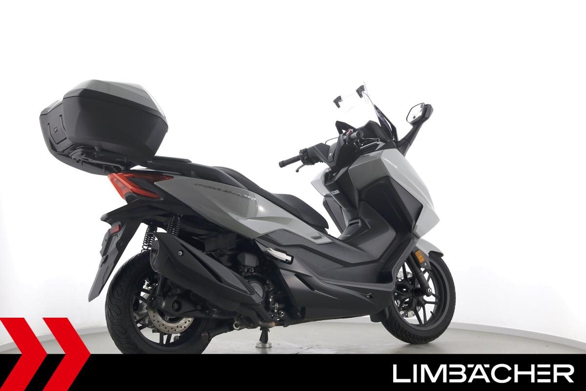 ** Das Fahrzeug:** Honda Stuttgart bietet hier einen **Honda Forza 350** mit einer neuen 40-Punkte-Durchsicht. Alle unsere Fahrzeuge werden mit mindestens einem Jahr TÜV übergeben. ---- **Fahrzeugzustand & Beschreibung:** Ein scheckheftgepflegter Honda Forza 350 aus erster Hand in sehr gepflegtem Zustand u.a. mit Honda-Topcase sowie Traktionskontrolle. ---- **Verschleißteile: ** **Bremsbeläge:** Vorne: 90% Hinten: 90% **Reifen:** Vorne: 70% Hinten: 50% ---- ** Ausstattung & Extras:** * Honda-Topcase * Traktionskontrolle * Keyless-Ride * Staufach unter der Sitzbank * Puig-Scheibenaufsatz * Hauptständer * ABS ---- **Ansprechpartner:** Manuel Forschner 0711 93964378 homepage-limbaecher-honda@limbaecher.dealerdesk.de **GARANTIERT SORGLOS CRUISEN:** **Jetzt neu:** unsere Lebenslange Garantie kann jetzt für Fahrzeuge **schon ab Baujahr 2012 und bis 25.000 km** abgeschlossen werden! Sprich für eine umfassende Beratung einfach unser Verkaufsteam an. **DANKE!** LIMBÄCHER holt den Titel als **Motorradhändler des Jahrzehnts** - Danke an all unsere Kunden für das Vertrauen! **Limbächer und Limbächer - Deutschlands größte Motorradwelt!** Ihr kompetenter Partner am Stuttgarter Flughafen seit 1992. Vertragshändler für Aprilia, Ducati, GasGas, Honda, Husqvarna, Kawasaki, Moto Guzzi, MV Agusta, Piaggio, Stark, Suzuki, Vespa, Yamaha über **2000 Motorräder in der Ausstellung auf über 20 000 m** **Weitere Standorte:** **- Reutlingen:** Vertragshändler für Aprilia, Honda, Kawasaki, KTM, Moto Guzzi, MV Agusta, Piaggio, Suzuki, Vespa, Yamaha **- Rottweil:** Vertragshändler für Aprilia, Honda, Kawasaki, Moto Guzzi, Piaggio, Triumph, Vespa **- Schongau:** Vertragshändler für Honda, Kawasaki, Stark, Triumph, Yamaha * Barankauf und Inzahlungnahme von Motorrädern aller Marken! * bei Gebrauchtfahrzeugen 14 Tage kostenloses Umtauschrecht ab Anmeldung auf den Käufer * mit 40 Punkte Technik-Check in unserer modernen Meisterwerkstatt * Lieferung frei Haus bundesweit ab 99.? Euro * Ausstellung und Bistro täglich (auch Sonntags) bis 18.00 Uhr geöffnet * Finanzierung mit und ohne Anzahlung möglich. * Barankauf aller Marken auch Exoten ? sofortige und unkomplizierte Abwicklung * Rückkaufgarantie für alle bei uns gekauften Motorräder * Meisterwerkstatt: 8 KFZ-Meister und 12 Mechaniker stehen Ihnen mit Rat und Tat mit modernsten Diagnosegeräten zur Seite * Große Auswahl an Motorradbekleidung auf über 400 m * Irrtümer und Zwischenverkauf vorbehalten