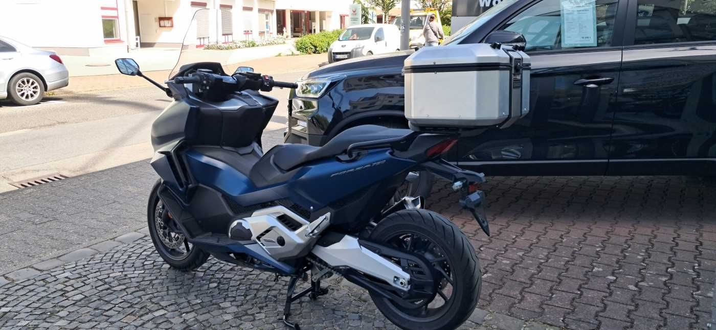 **-Honda Forza 750- 2024 **Zum Verkauf steht eine wunderschöne und flotte Honda Forza 750. Das Fahrzeug hat ca. 3700 km und zwei Vorbesitzer. Ebenso ist ein Tieferlegungskit von 40mm verbaut, was vorallem für kleinere Fahrer/in sehr gut geeignet ist. Das ganze kann aber jederzeit wieder hochgelegt werden. Der Roller hat ein sehr robustes Aluminium-Top-Case von Shad und eine hohe Windschutzscheibe. Rechte Frontverkleidund ist etwas zerkratzt, es handelt sich hier nicth um ein Un- oder Umfallfahrzeug. HU+AU werden beim Kauf selbstverstädlich erneuert. **Probefahrt nach Absprache jederzeit möglich.** **Irrtümer und Zwischenverkäufe vorbehalten. **