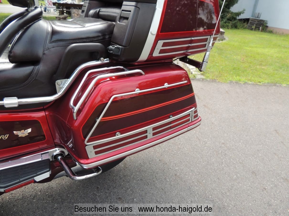 Top Zustand! Unfallfrei! Sehr gepflegtes Garagenfahrzeug. Mit Rückwärtsgsang, Radio / Casette, Tempomat, Niveouregulierung. Zubehör: * Blinkerchromblenden vorn * Bremssscheibenabdeckung mit Ring of Fire * Kurvenscheinwerfer * Griffheizung * Lenkerstrebe * Lautsprecherchromblenden vorn / hinten * Highway Board`s * Fahrerrückenlehne * Topcasegepäckträger * Chromblenden auf Topcase Leuchten * Chromblenden auf Kofferleuchten * Kofferdeckel Railing * Topcasegriff * Topcasespoiler 1 Jahr Händlergewährleistung! **Finanzierung** - Honda Bank oder Santander Consumer Bank - Bankablöse von Ihrem Fahrzeug - Rückkaufgarantie für alle bei uns gekauften Fahrzeuge **Fahrzeugankauf** - Barankauf und Inzahlungnahme - Sofortbewertung Ihres Gebrauchtfahrzeuges - große Auswahl an Neu- und Gebrauchtfahrzeugen **Werkstattservice** - Wartung und Instandsetzung durch geschultes Fachpersonal - Unfallinstandsetzung mit Köster Laserrahmenmesslehre - Leifahrzeug bei Kundendienst und Reparatur - unser Servicepersonal ist für Sie ständig erreichbar - unsere Öffnungszeiten Montag bis Freitag von 09.00-18.00 Uhr Samstag von 09.00-12.00 Uhr Tel:03561/52764 Besuchen Sie uns www.honda-haigold.de