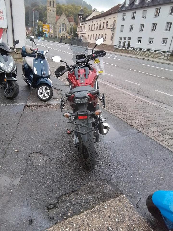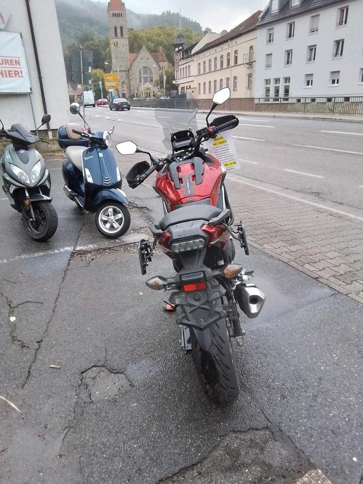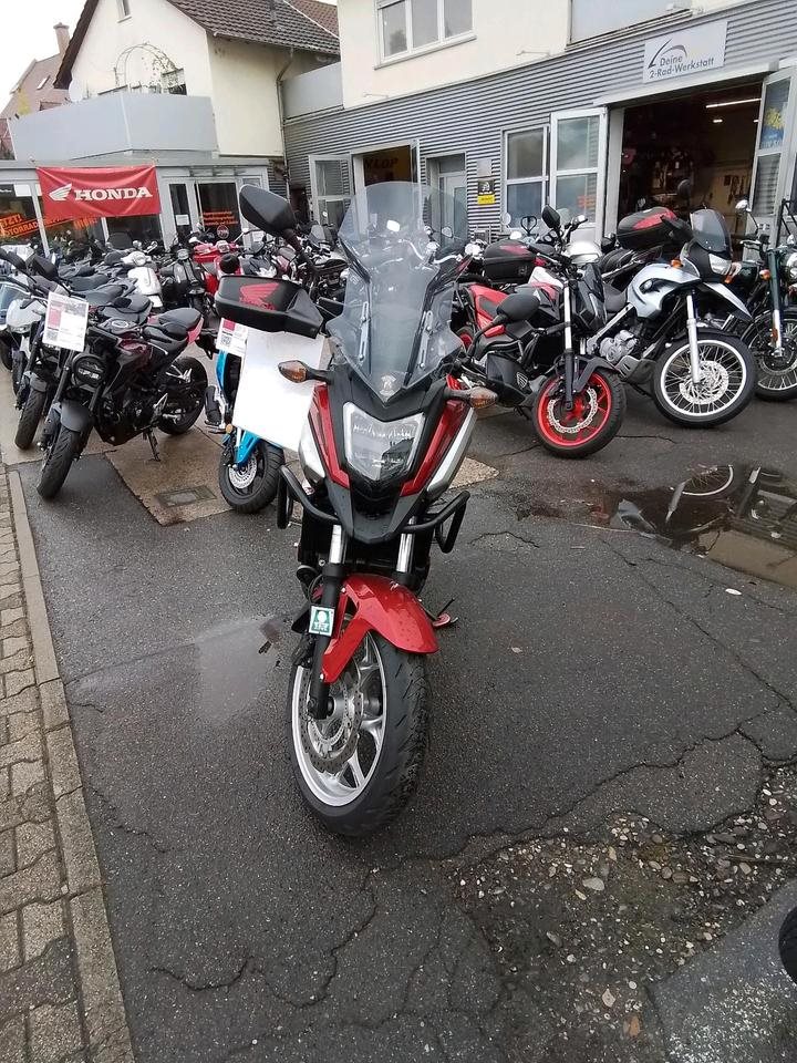 Honda NC 750 XA in Rot aus 1. Hand in sehr guten Allgemeinzustand, mit Handprotektoren, Sturzbügel, Höhenvestellbares Windschild + 1 Original Windschild als Ersatz, Seitenstofftaschen, Ständerverbreiterung und neuen TÜV.