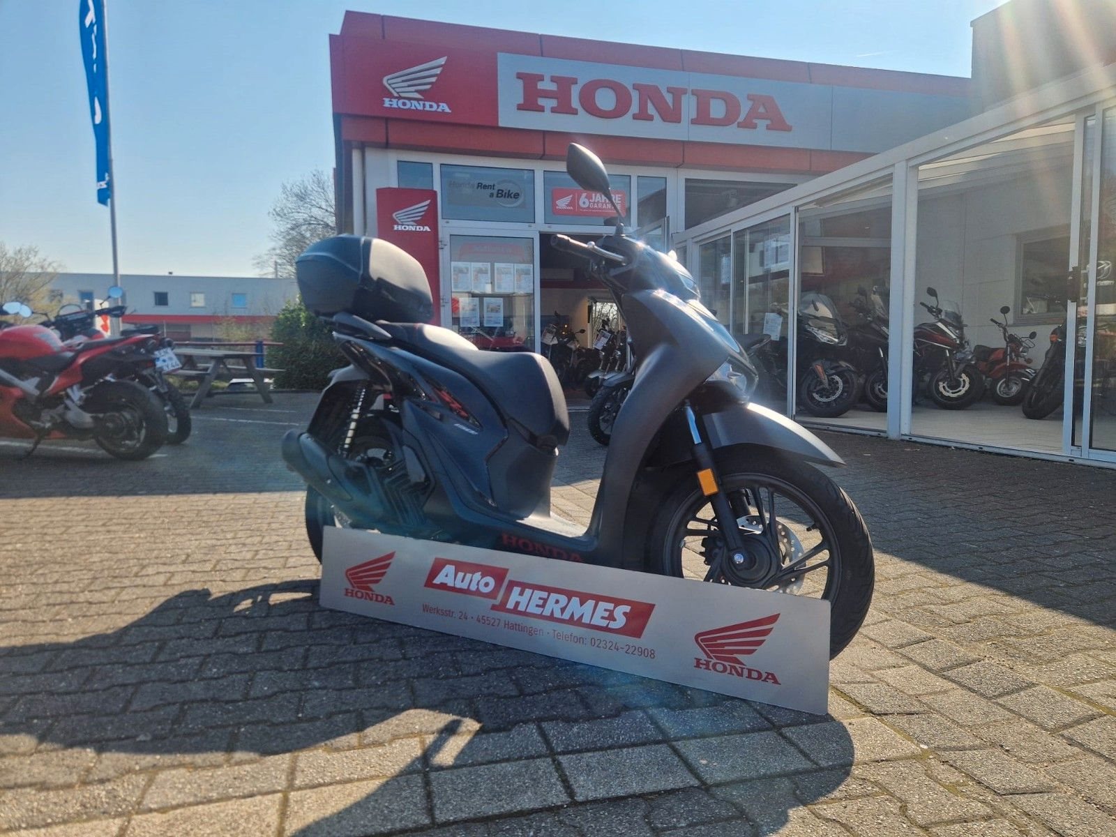 **Top Gebrauchtfahrzeug vom Vertragshändler** Der SH stammt aus 1. Hand und befindet sich sowohl optisch als auch technisch in einem sehr gepflegten und einwandfreien Zustand. Der Roller ist sturz- und unfallfrei. Vor Auslieferung erhält die Honda eine frische Inspektion nach Herstellervorgaben . - Gebrauchtfahrzeug Garantie bis zu 24 Monate möglich (gegen Aufpreis) - Durchgecheckt durch unsere Meisterwerkstatt - Flexible Finanzierungsangebot - Individuelle Ausstattungsmöglichkeiten und Umbauten - Sprecht uns gerne an 02324 - 202873---- Wir sind ausgezeichnet! Beste Kundenzufriedenheit in 2022 & 2023! Ausgezeichnet von Honda Deutschland ---- - Wir sind seit über 20 Jahren Vertragshändler für Suzuki-Automobile und Honda-Motorräder. - Alle Gebrauchtfahrzeuge sind durch unsere Meister-Werkstatt geprüft. - Für alle Gebrauchtfahrzeuge 12 Monate Gewährleistung. - Für Neufahrzeuge Garantie gem. Herstellerangaben. - Finanzierung und Inzahlungnahme für alle Fahrzeuge. - Zwischenverkauf / Schreibfehler sowie Irrtum vorbehalten. - Fahrzeuganlieferung innerhalb Deutschland schon ab 129 €