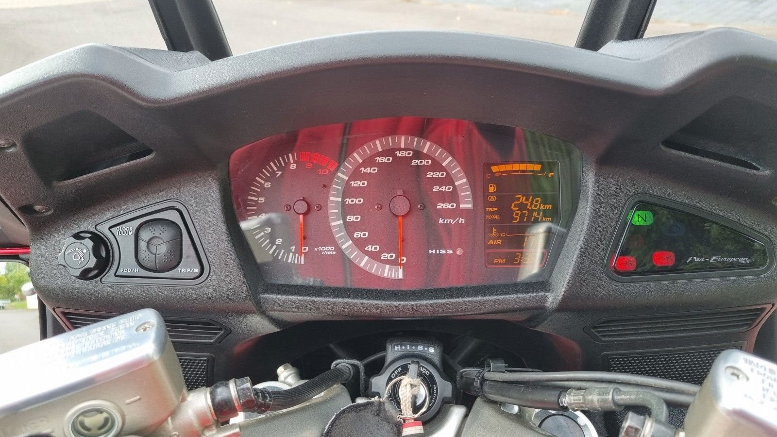 Gebrauchtfahrzeug im sehr sehr guten Zustand.Wie neu. * 2x Koffer abnehmbar * hohe Scheibe elektrisch bedienbar * V-Viermotor mit 126 PS * Kardanantrieb * Tankschutz * Windspoiler Verkleidung * Windspoiler Spiegel * Griffheizung * alle Papiere und Inspektionsheft vorhanden * Jahresinspektion gemacht **Finanzierung und Inzahlungnahme möglich!** - Honda Bank oder Santander Consumer Bank - Barpreisfinanzierung - Bankablöse von Ihrem Motorrad - Rückkaufgarantie für alle bei uns gekauften Fahrzeuge **Fahrzeugankauf** - Barankauf und Inzahlungnahme - Sofortbewertung Ihres Gebrauchtfahrzeuges - große Auswahl an Neu- und Gebrauchtfahrzeugen **Werkstattservice** - Wartung und Instandsetzung durch geschultes Fachpersonal - Unfallinstandsetzung mit Köster Laserrahmenmesslehre - Leihfahrzeug bei Kundendienst und Reparatur - unser Servicepersonal ist für Sie ständig erreichbar - unsere Öffnungszeiten Montag bis Freitag von 09.00-18.00 Uhr Samstag von 09.00-12.00 Uhr Tel:03561/52764 **Deutschlandweiter Versand ab 99,- €** Wir sind Honda-Vertragshändler und stehen natürlich mit unserem Namen für die Qualität Motorräder ein (egal ob Honda oder Fremdfabrikate). Sie können sich gern live beeindrucken lassen. Bei Anmeldung wird eine Probefahrt natürlich auch möglich sein. Besuchen Sie uns www.honda-haigold.de