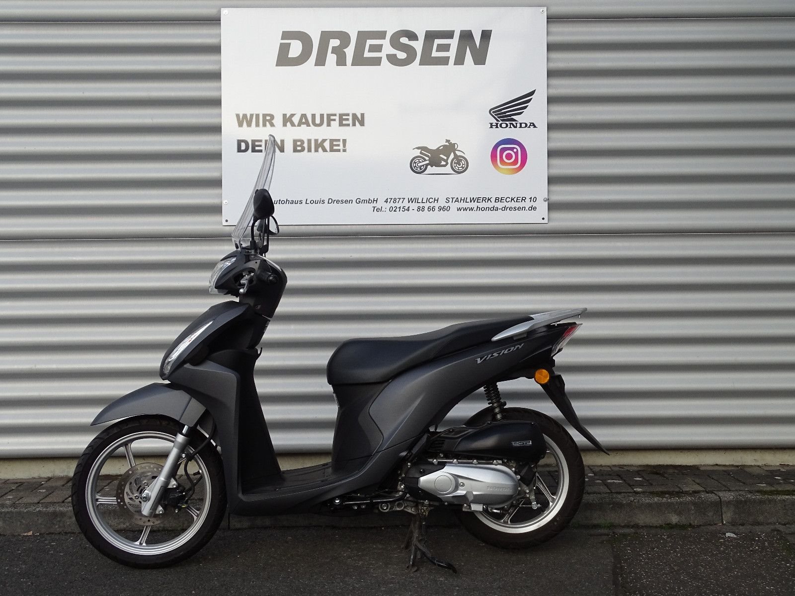 **Willkommen bei Honda Dresen in Willich!** Als einer der größten Honda Motorrad Vertragspartner Deutschlands bieten wir Ihnen auf über 800m Ausstellungsfläche eine große Auswahl an Zweirädern - hier finden auch Sie Ihr perfektes Bike. Besuchen Sie uns und lassen Sie sich beraten! **Ihre Ansprechpartner:** Adrian Dünnweller - 02154 / 8866910 Jannis Weidemann - 02154 / 8866913 Sven Roßkamp - 02154 / 8866960----**Honda Vision 110 - Gepflegtes Fahrzeug in gutem Zustand** **Ausstattung & Zubehör:*** Hohes Windschild **Zustand:*** Technisch einwandfrei und gepflegt * Optisch in gutem Zustand **Service & Lieferung:*** Übergabeinspektion vor der Auslieferung * Bundesweiter Versand per Motorradspedition - gerne informieren wir Sie über die aktuellen Konditionen **Finanzierung & Inzahlungnahme:*** Flexible Finanzierung bis zu 84 Monate, auch ohne Anzahlung * Gerne erstellen wir Ihnen ein individuelles Angebot Alle Angaben ohne Gewähr. Änderungen, Irrtum und Zwischenverkauf vorbehalten.
